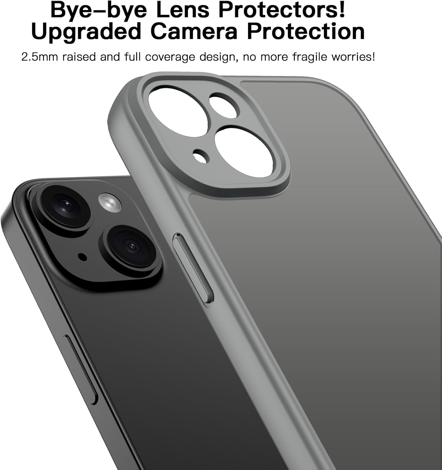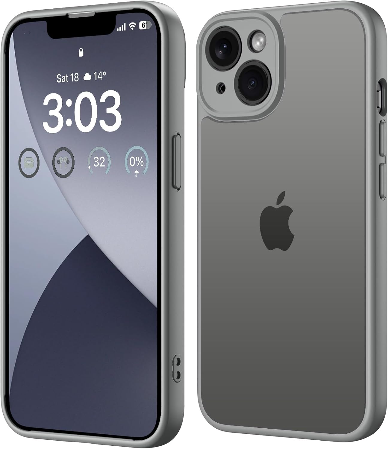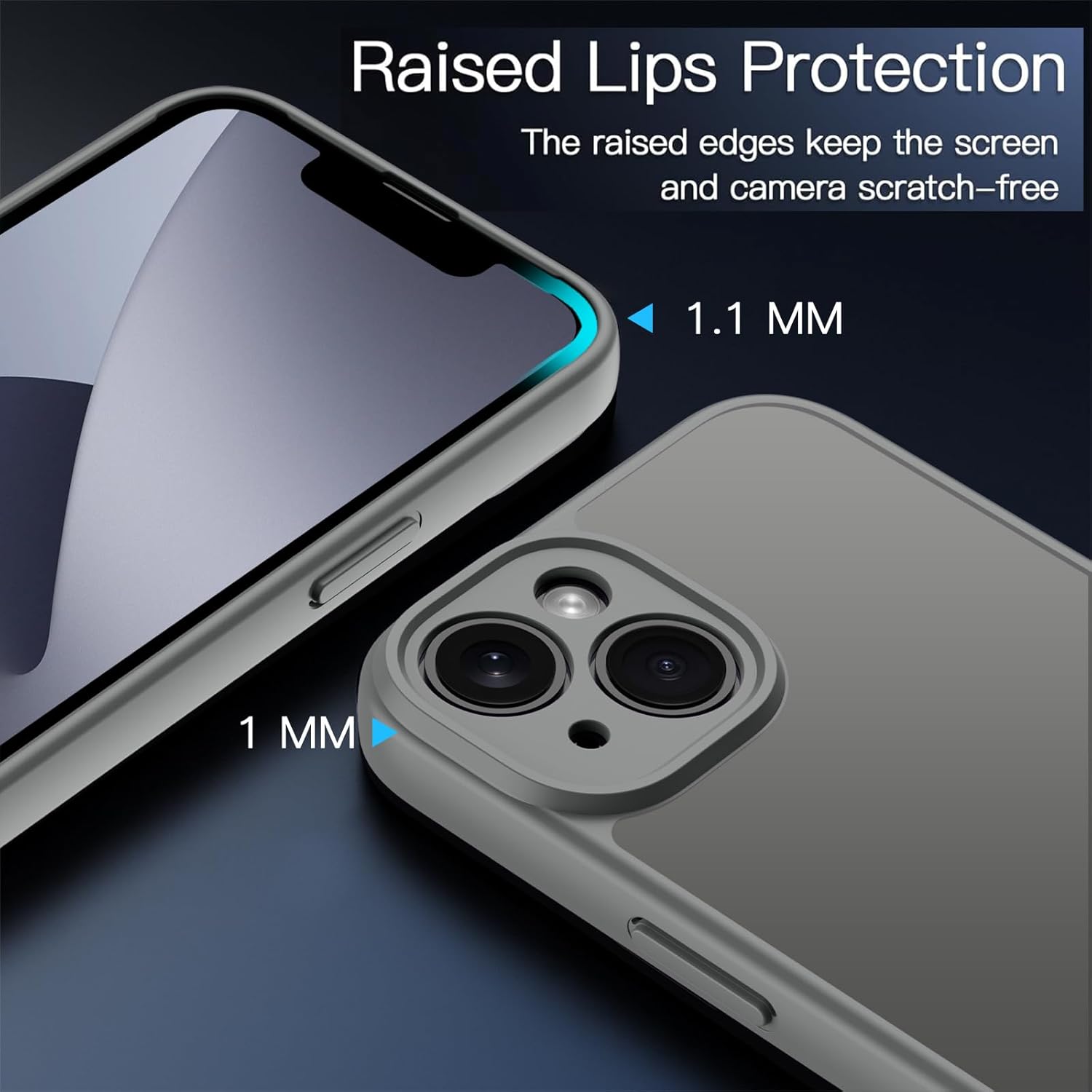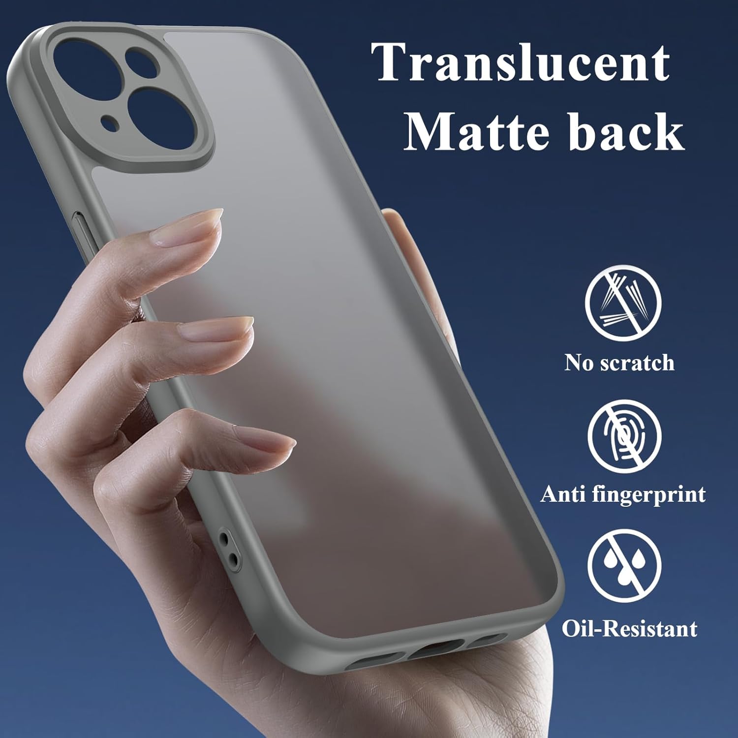 ORDA калъф за iPhone 13 6.1 инча, пълна защита на камерата, удароустойчив, устойчив на надраскване, прозрачен защитен калъф за гръб, матов калъф за мобилен телефон против пръстови отпечатъци за iPhone 13 (сив)