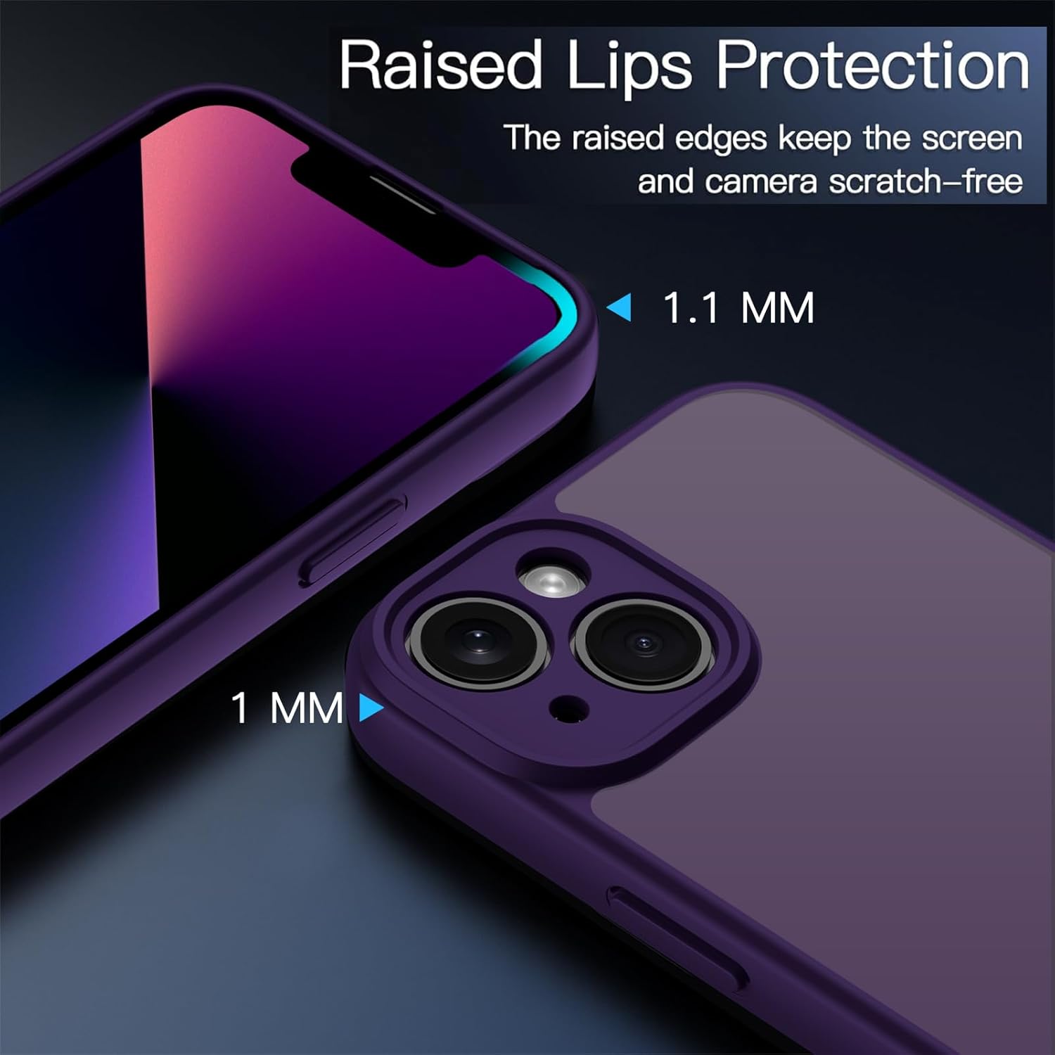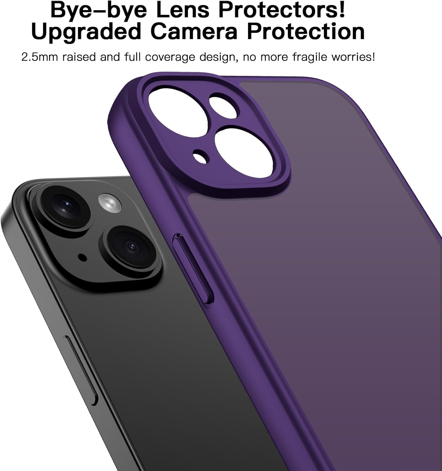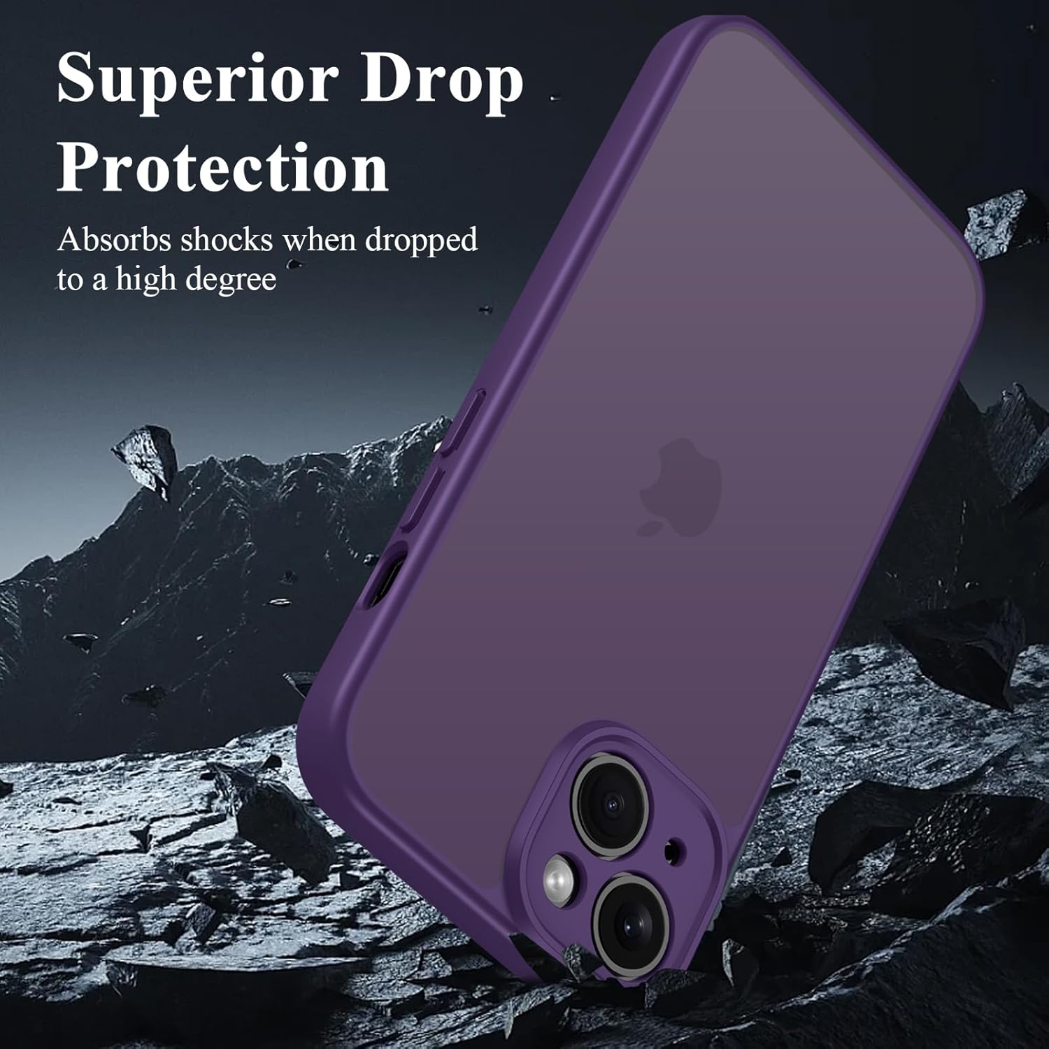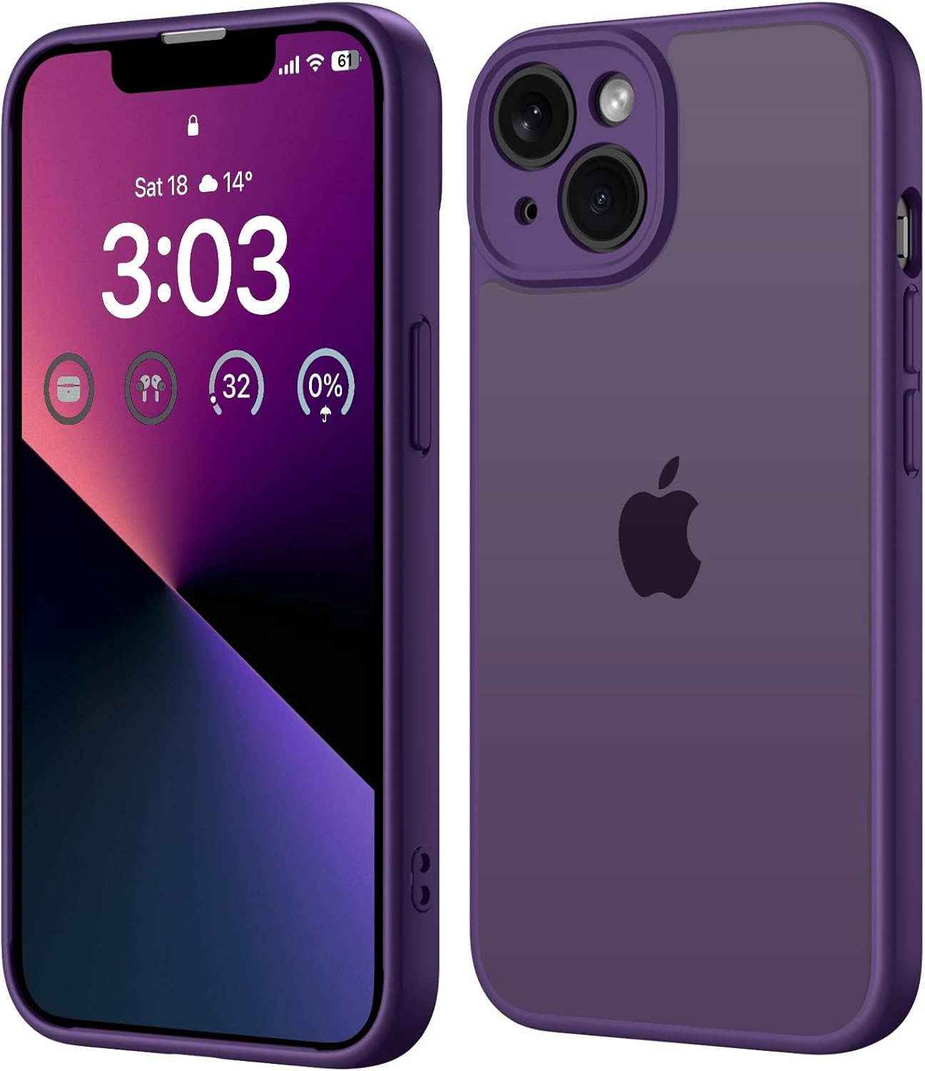 ORDA калъф за iPhone 13 6.1 инча, пълна защита на камерата, удароустойчив, устойчив на надраскване, прозрачен защитен калъф за гръб, матов калъф за мобилен телефон против пръстови отпечатъци за iPhone 13 (тъмно лилав)