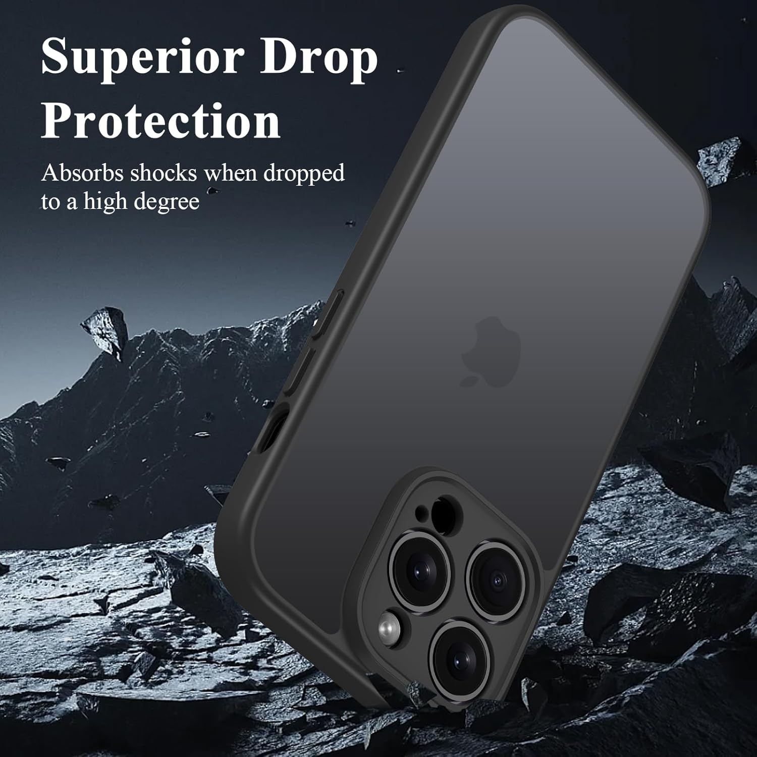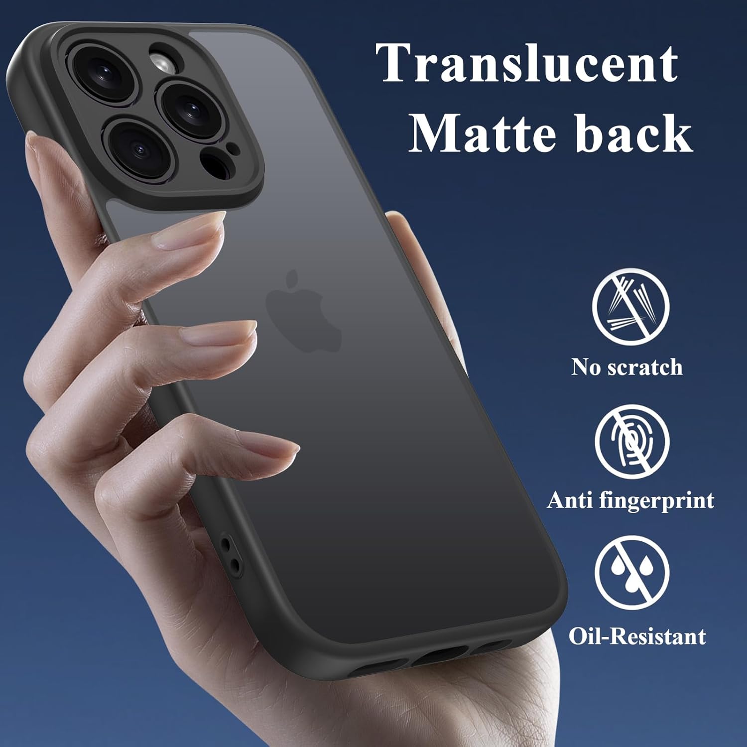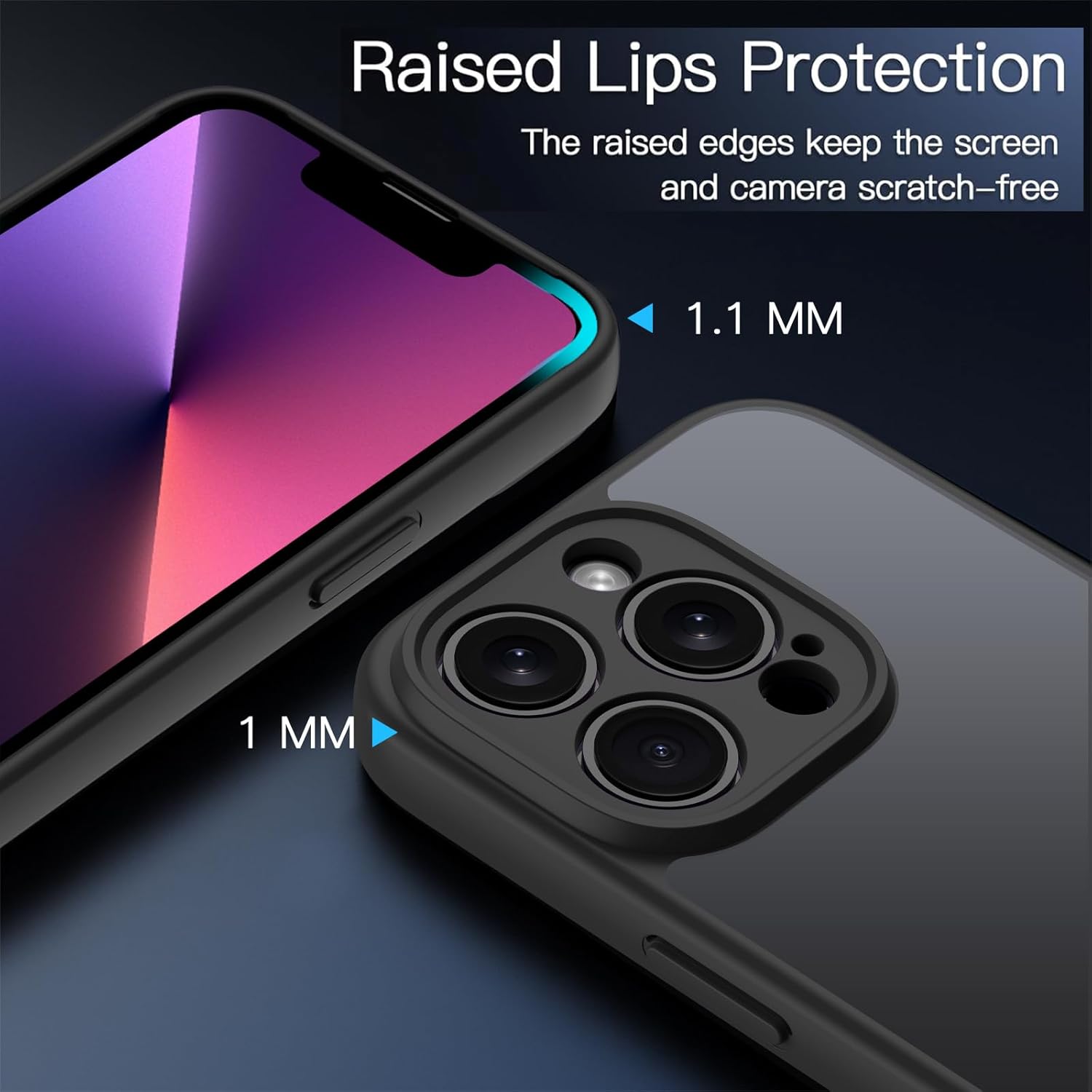 ORDA калъф за iPhone 13 Pro, 6.1 инча, пълна защита на камерата, удароустойчив, устойчив на надраскване, прозрачен защитен калъф за гръб, матов калъф за мобилен телефон против пръстови отпечатъци за iPhone 13 Pro (черен)