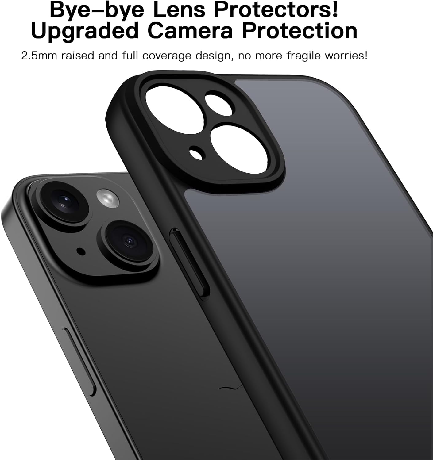 ORDA калъф за iPhone 14 6.1 инча, пълна защита на камерата, удароустойчив, устойчив на надраскване, прозрачен защитен калъф за гръб, матов калъф за мобилен телефон против пръстови отпечатъци за iPhone 14 (черен)