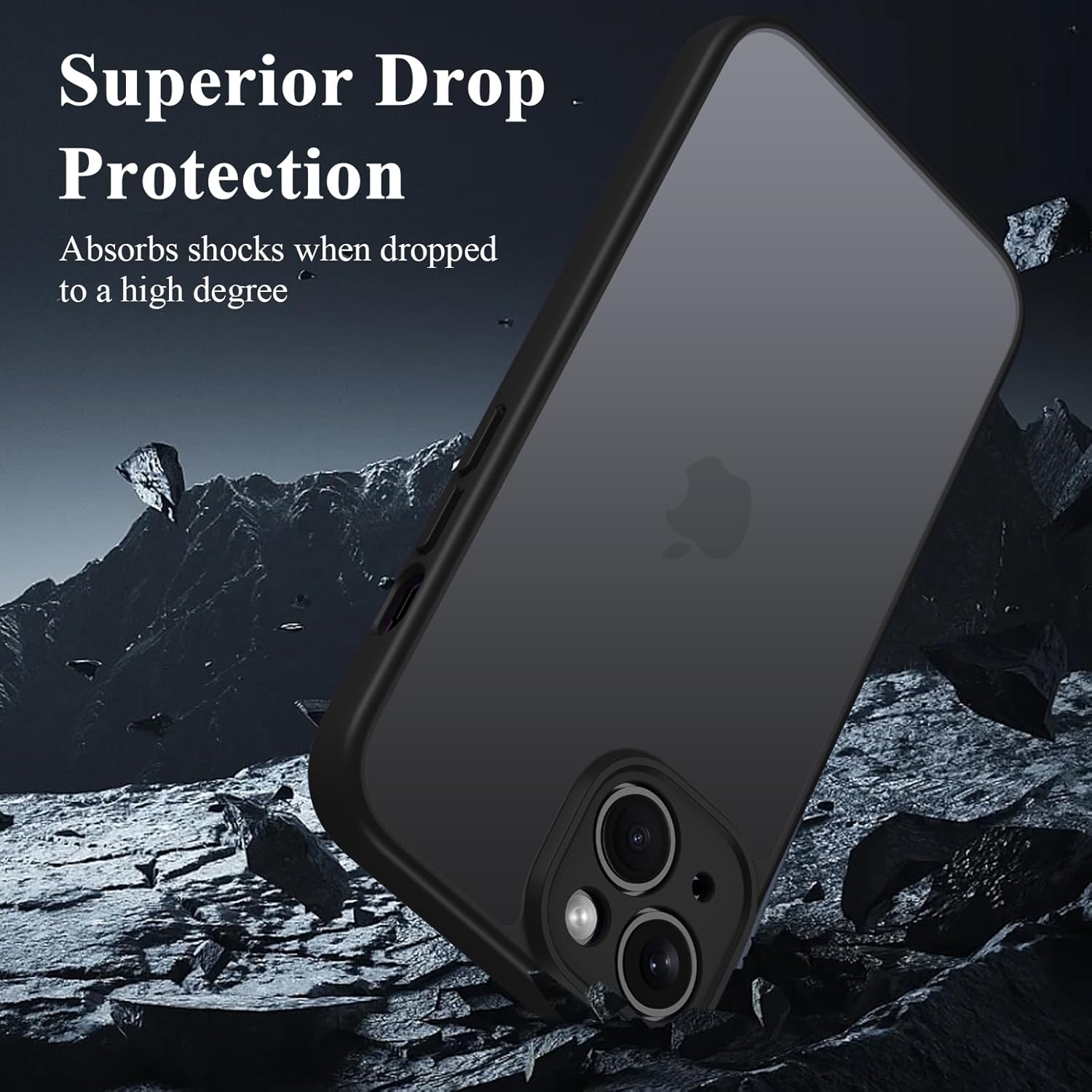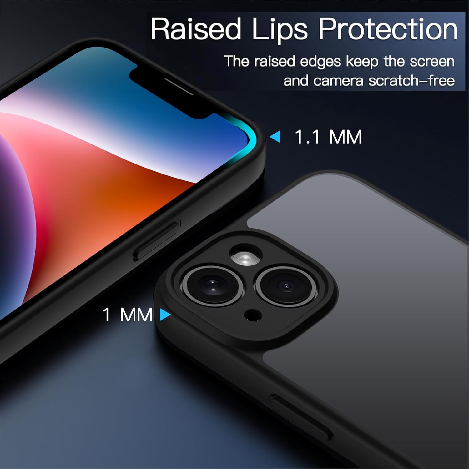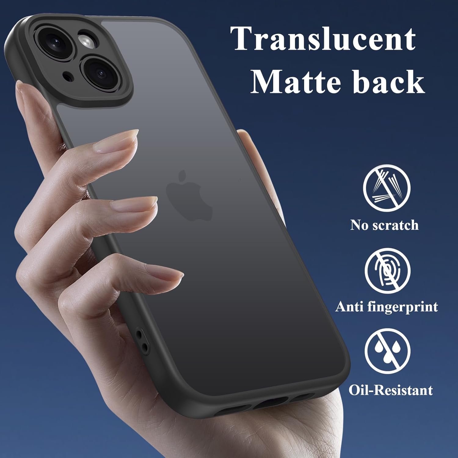 • Прозрачен матов гръб: Матовият, прозрачен калъф за мобилен телефон за iPhone 13 съчетава безпроблемно издръжливост и стил. Той разполага с гъвкава TPU рамка и твърд PC гръб с матово покритие, което придава копринено усещане на допир и е неплъзгащо, без пръстови отпечатъци и лесно за почистване. Междувременно, благодарение на полупрозрачния гръб, все още можете да се насладите на деликатното лого на телефона си.
