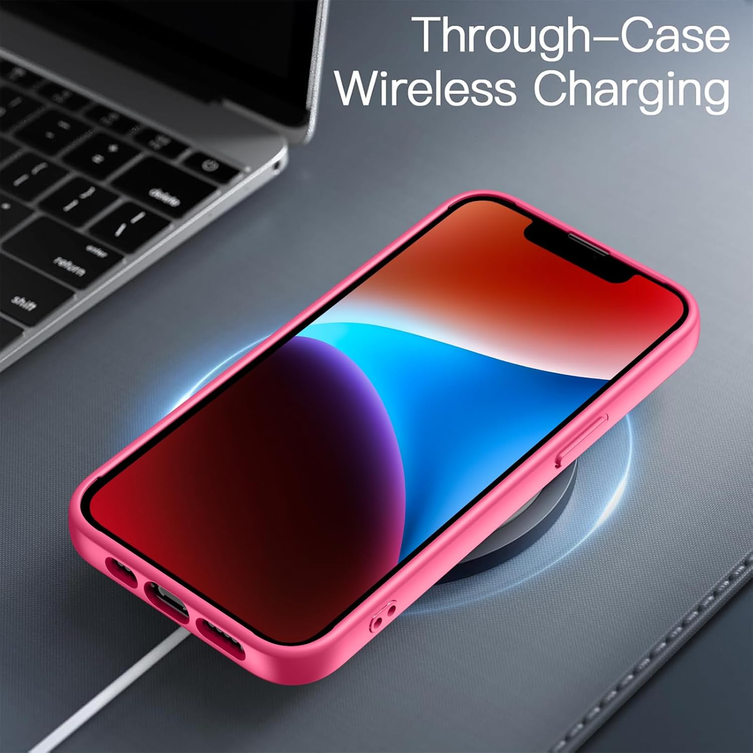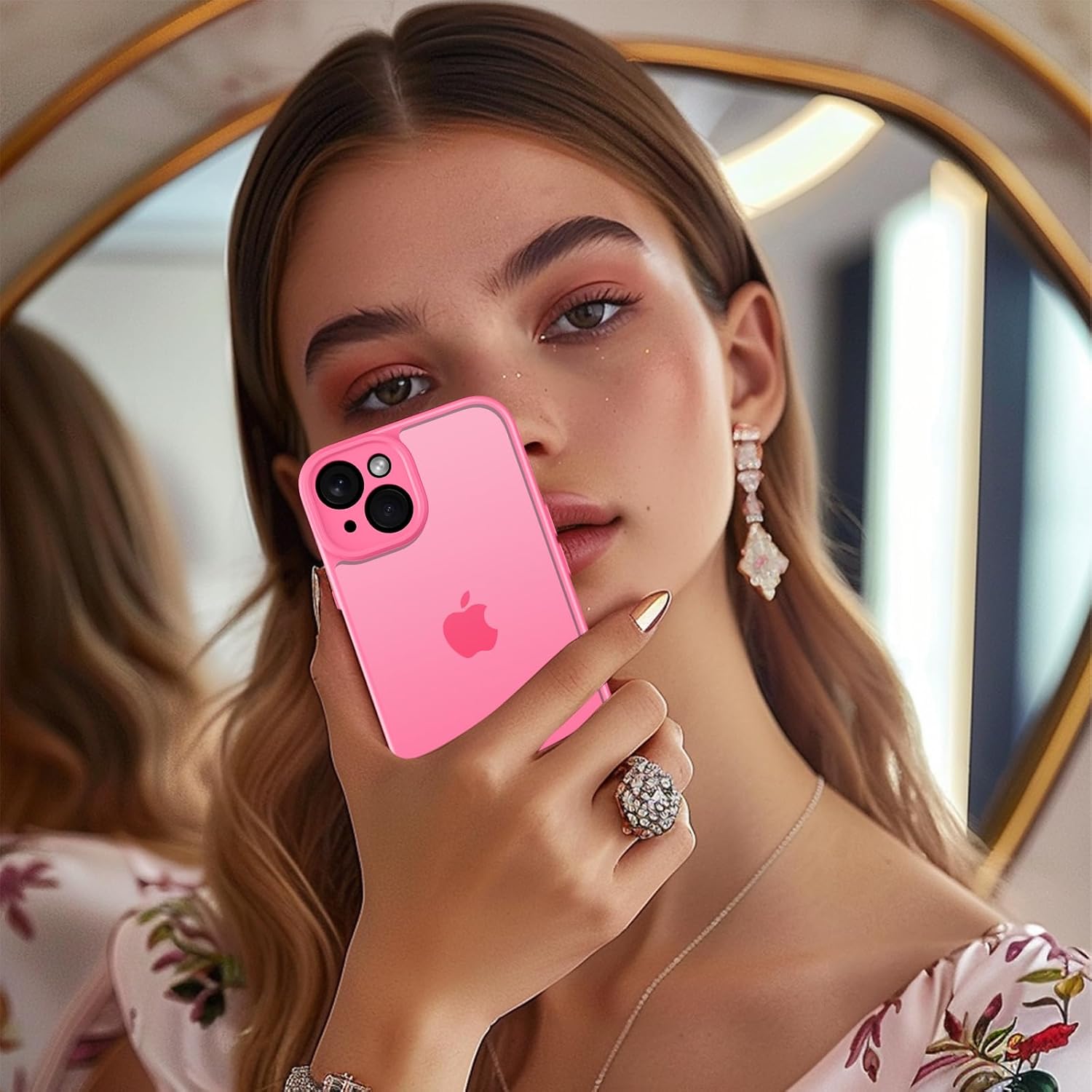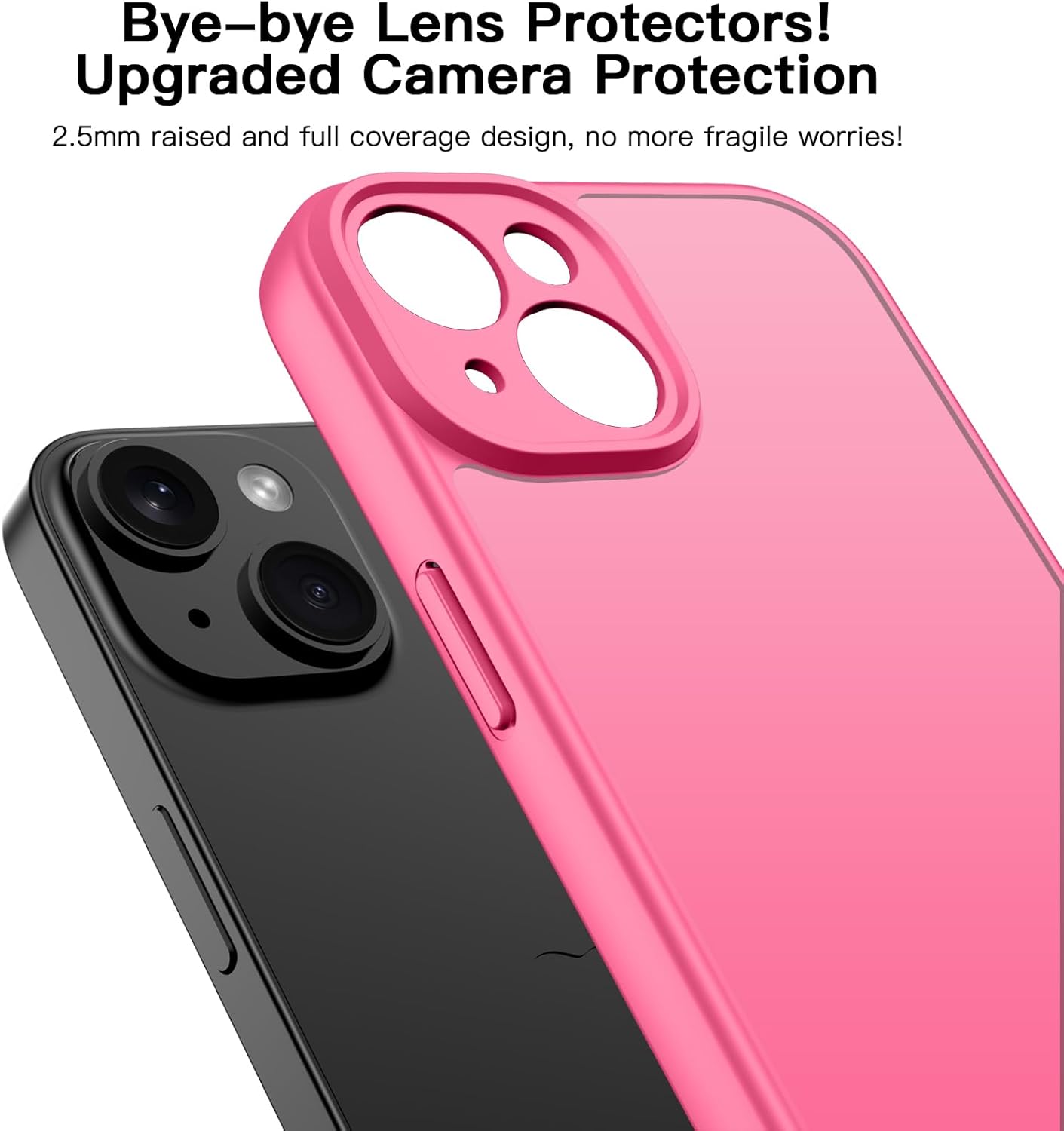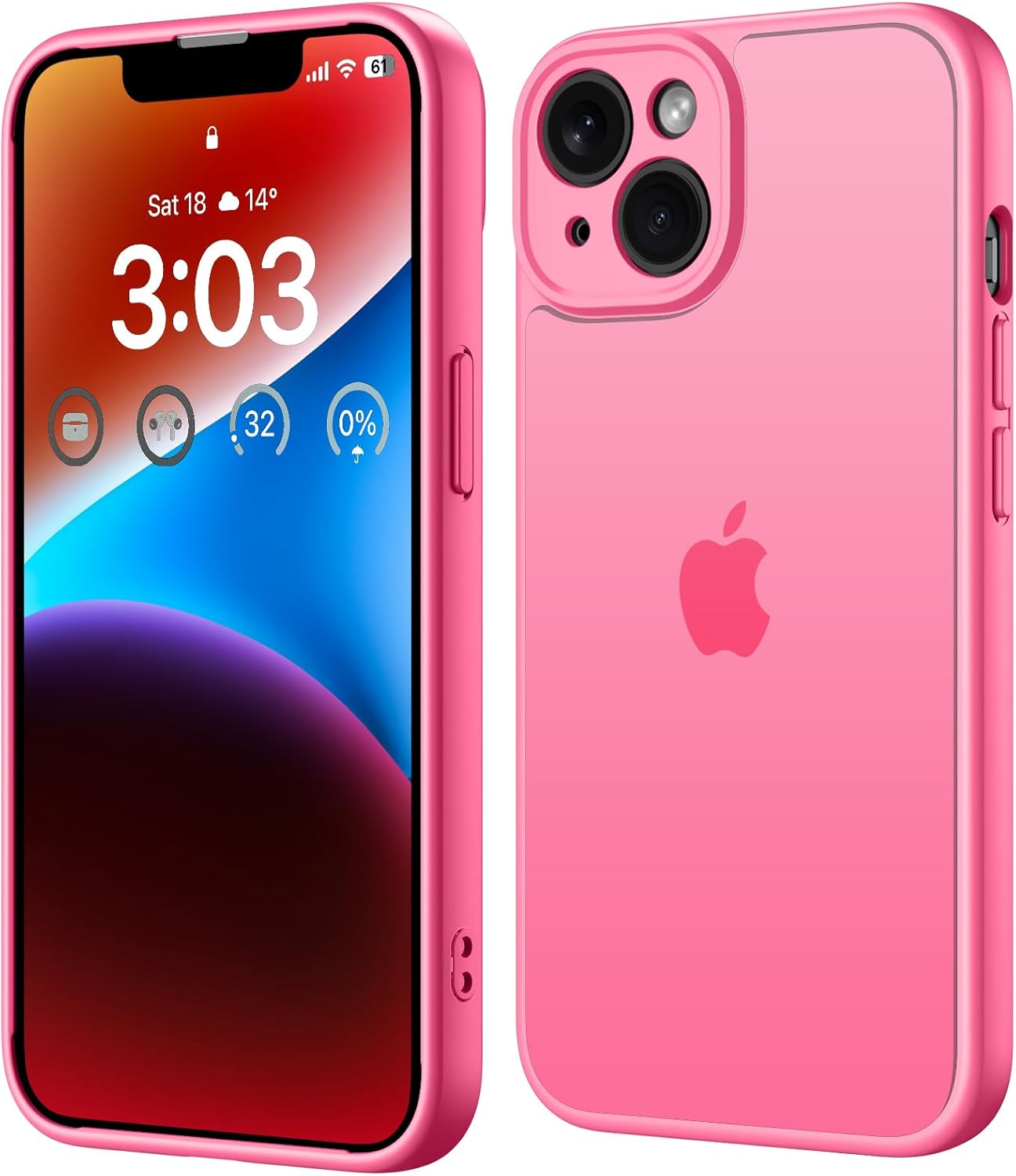 ORDA калъф за iPhone 14 6.1 инча, пълна защита на камерата, удароустойчив, устойчив на надраскване, прозрачен защитен калъф за гръб, матов калъф за мобилен телефон против пръстови отпечатъци за iPhone 14 (ярко розов)
