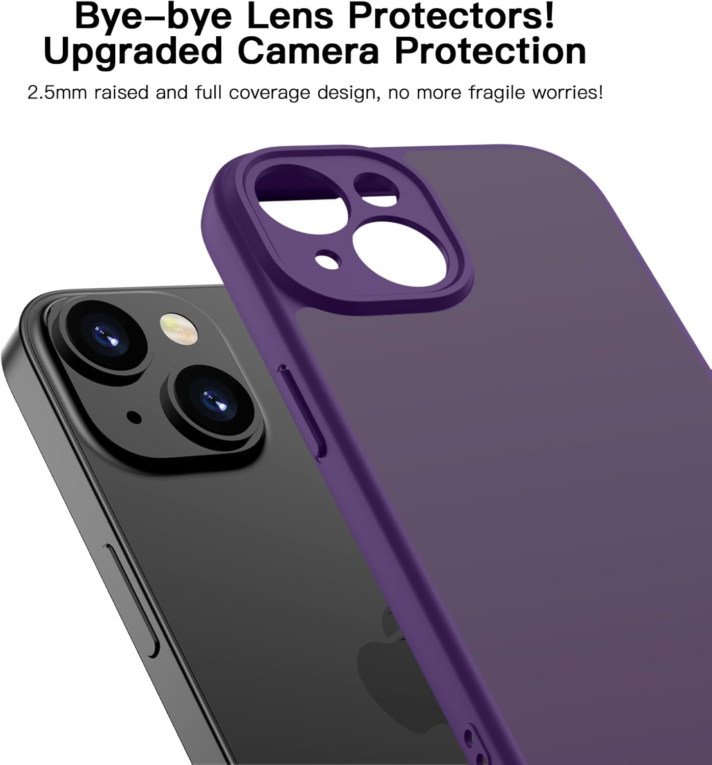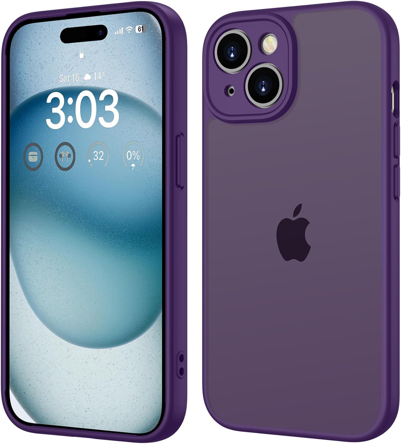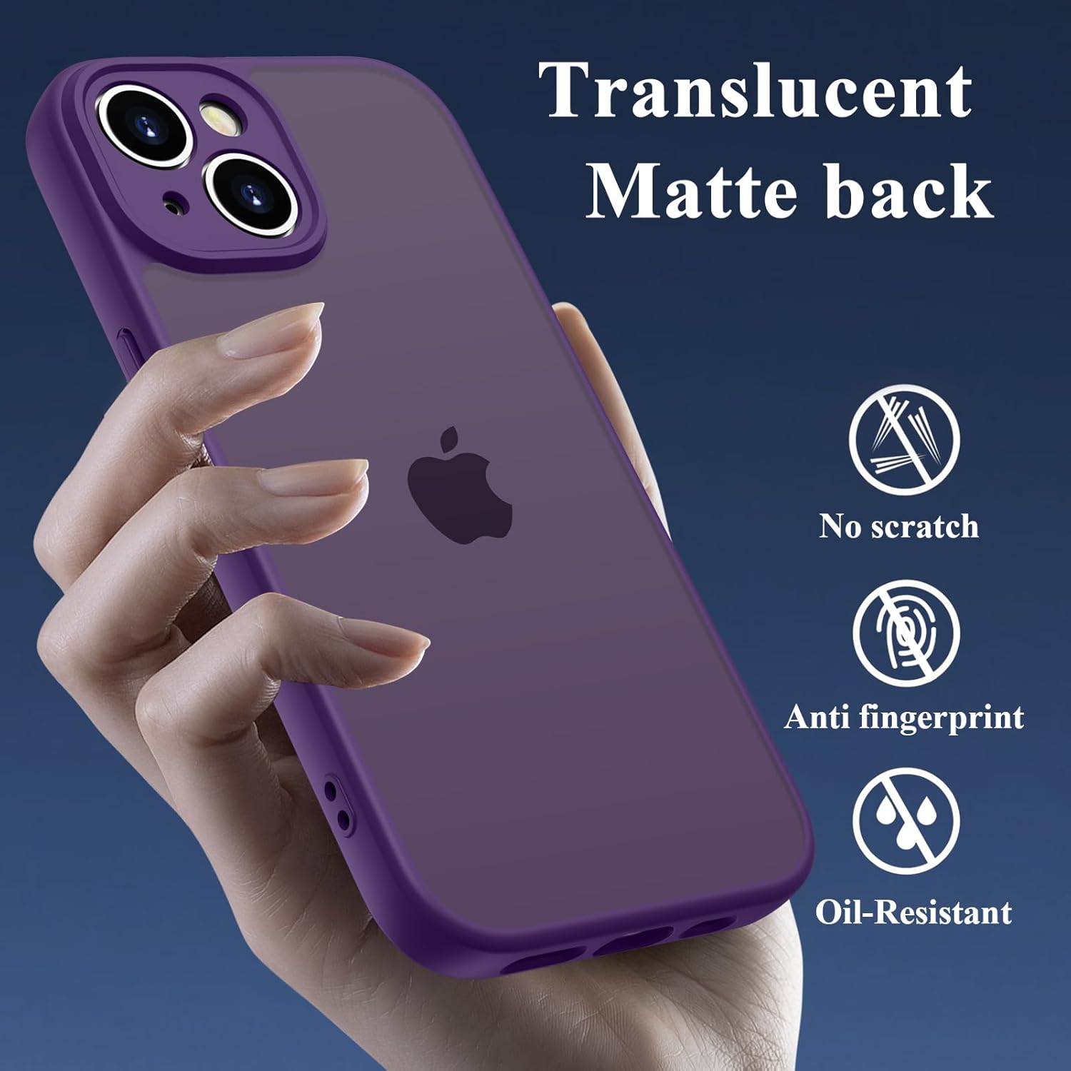 ORDA калъф за iPhone 15 6.1 инча, пълна защита на камерата, удароустойчив, устойчив на надраскване, прозрачен защитен калъф за гръб, калъф за мобилен телефон против пръстови отпечатъци за iPhone 15 (тъмно лилав)