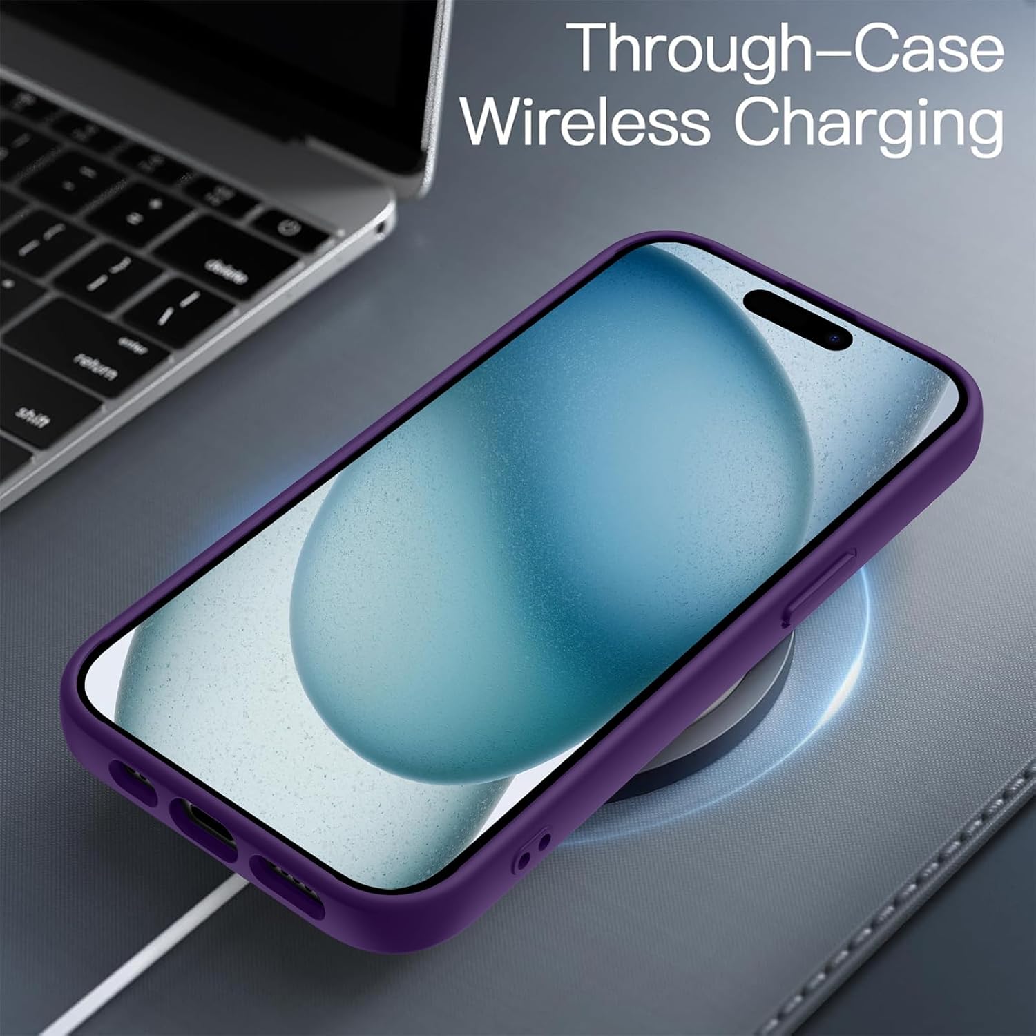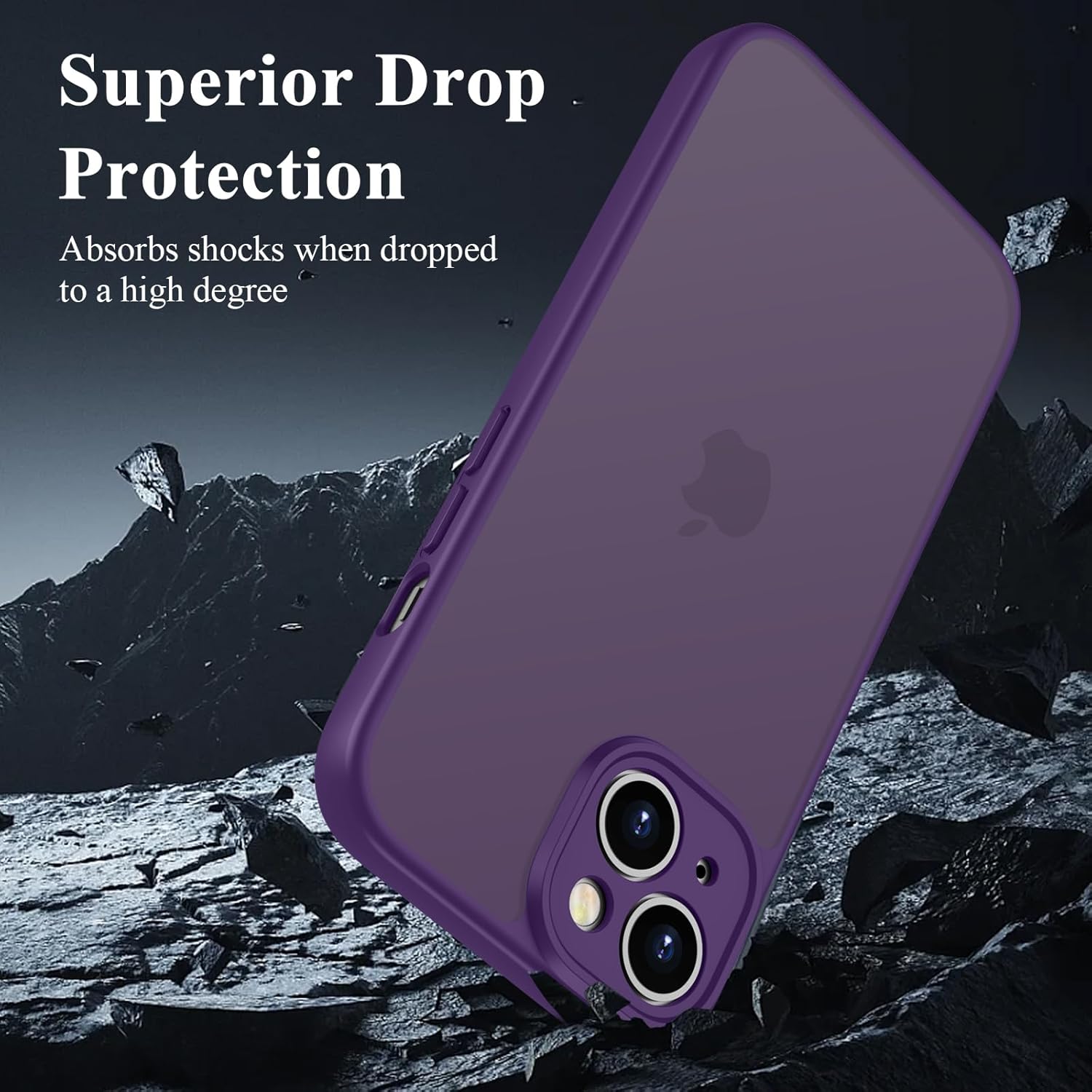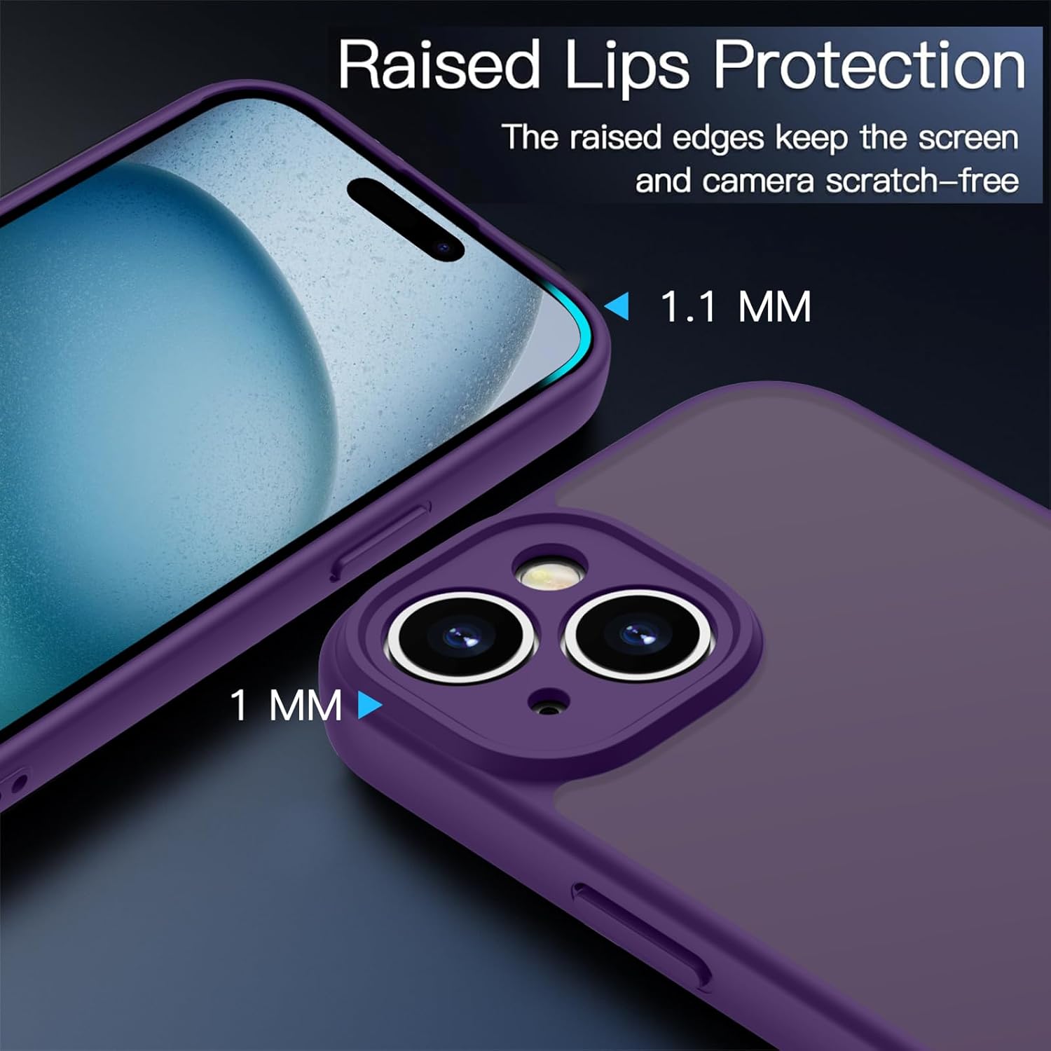 ORDA калъф за iPhone 15 6.1 инча, пълна защита на камерата, удароустойчив, устойчив на надраскване, прозрачен защитен калъф за гръб, калъф за мобилен телефон против пръстови отпечатъци за iPhone 15 (тъмно лилав)