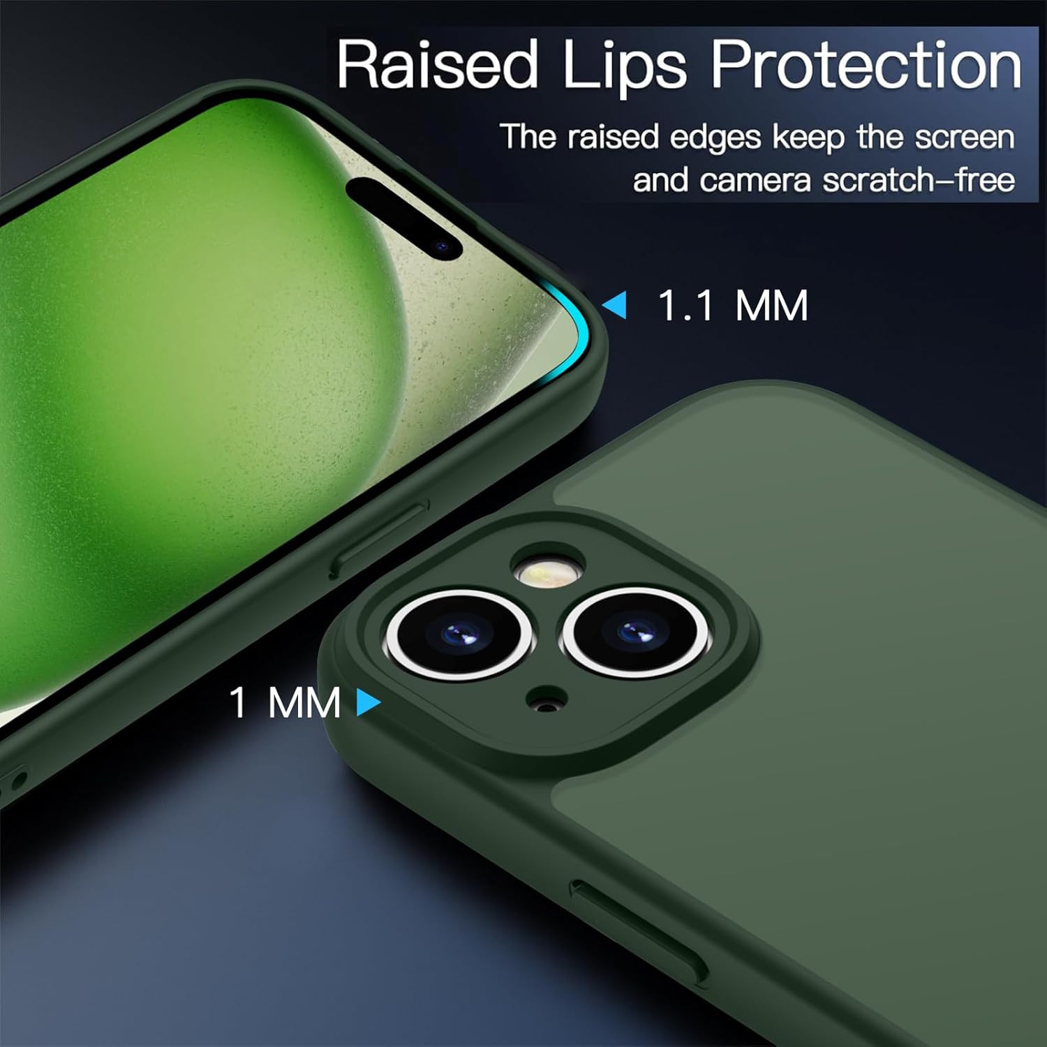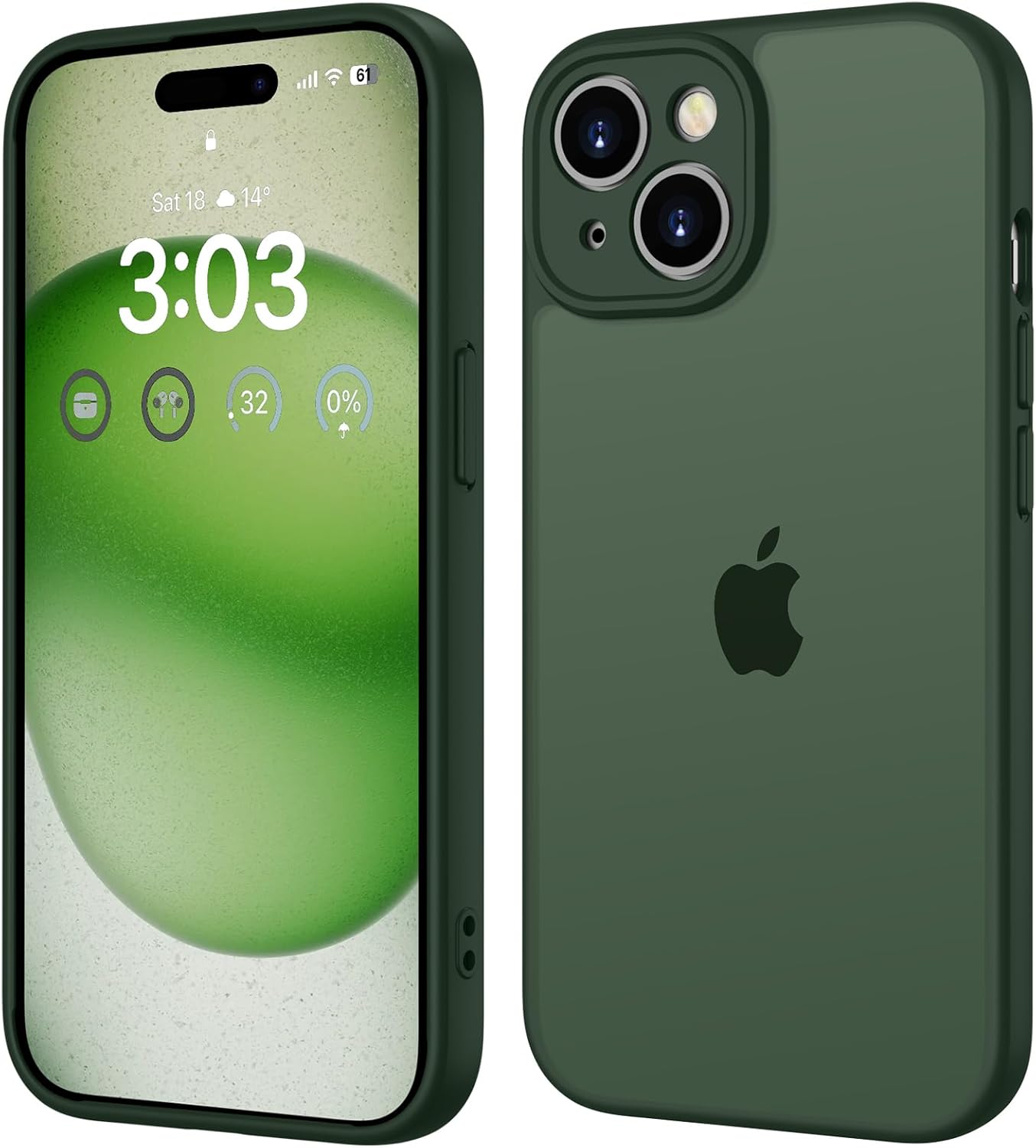 ORDA калъф за iPhone 15 6.1 инча, пълна защита на камерата, удароустойчив, устойчив на надраскване, прозрачен защитен калъф за гръб, калъф за мобилен телефон против пръстови отпечатъци за iPhone 15 (зелен)