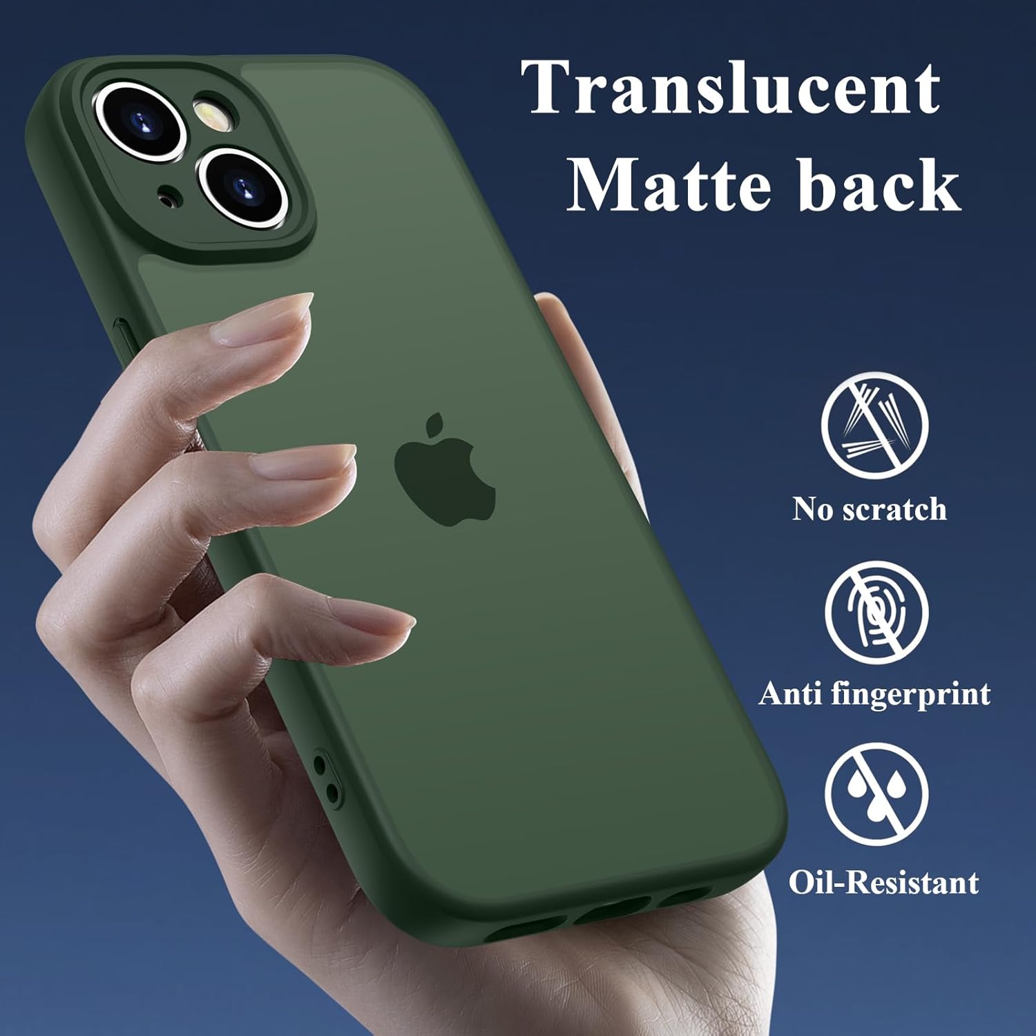 • Прозрачен матов гръб: Матовият, прозрачен калъф за мобилен телефон за iPhone 13 съчетава безпроблемно издръжливост и стил. Той разполага с гъвкава TPU рамка и твърд PC гръб с матово покритие, което придава копринено усещане на допир и е неплъзгащо, без пръстови отпечатъци и лесно за почистване. Междувременно, благодарение на полупрозрачния гръб, все още можете да се насладите на деликатното лого на телефона си.