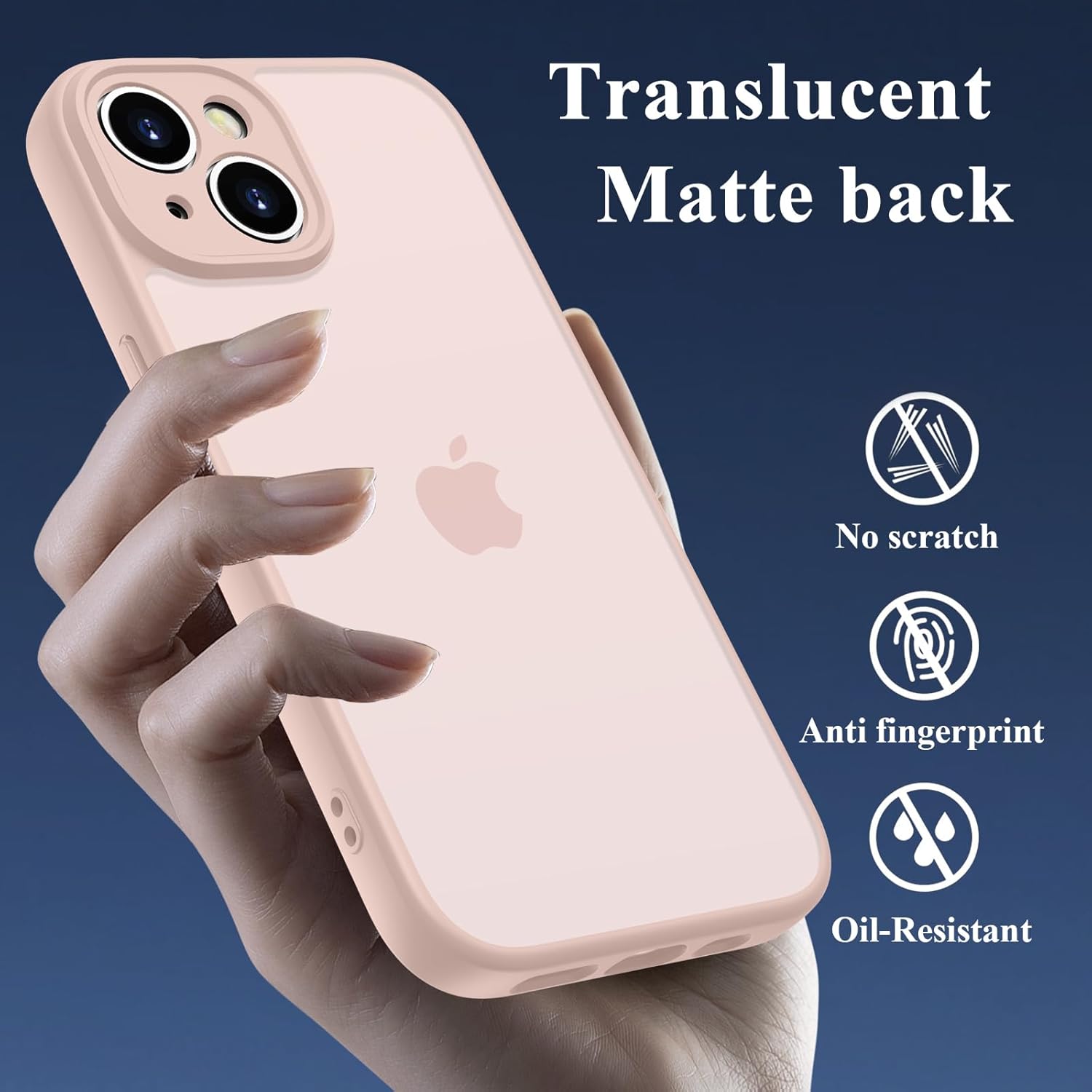 • Прозрачен матов гръб: Матовият, прозрачен калъф за мобилен телефон за iPhone 13 съчетава безпроблемно издръжливост и стил. Той разполага с гъвкава TPU рамка и твърд PC гръб с матово покритие, което придава копринено усещане на допир и е неплъзгащо, без пръстови отпечатъци и лесно за почистване. Междувременно, благодарение на полупрозрачния гръб, все още можете да се насладите на деликатното лого на телефона си.