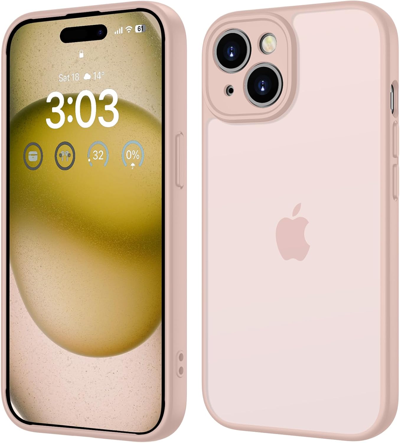 ORDA калъф за iPhone 15 6.1 инча, пълна защита на камерата, удароустойчив, устойчив на надраскване, прозрачен защитен калъф за гръб, матов калъф за мобилен телефон против пръстови отпечатъци за iPhone 15 (розов)