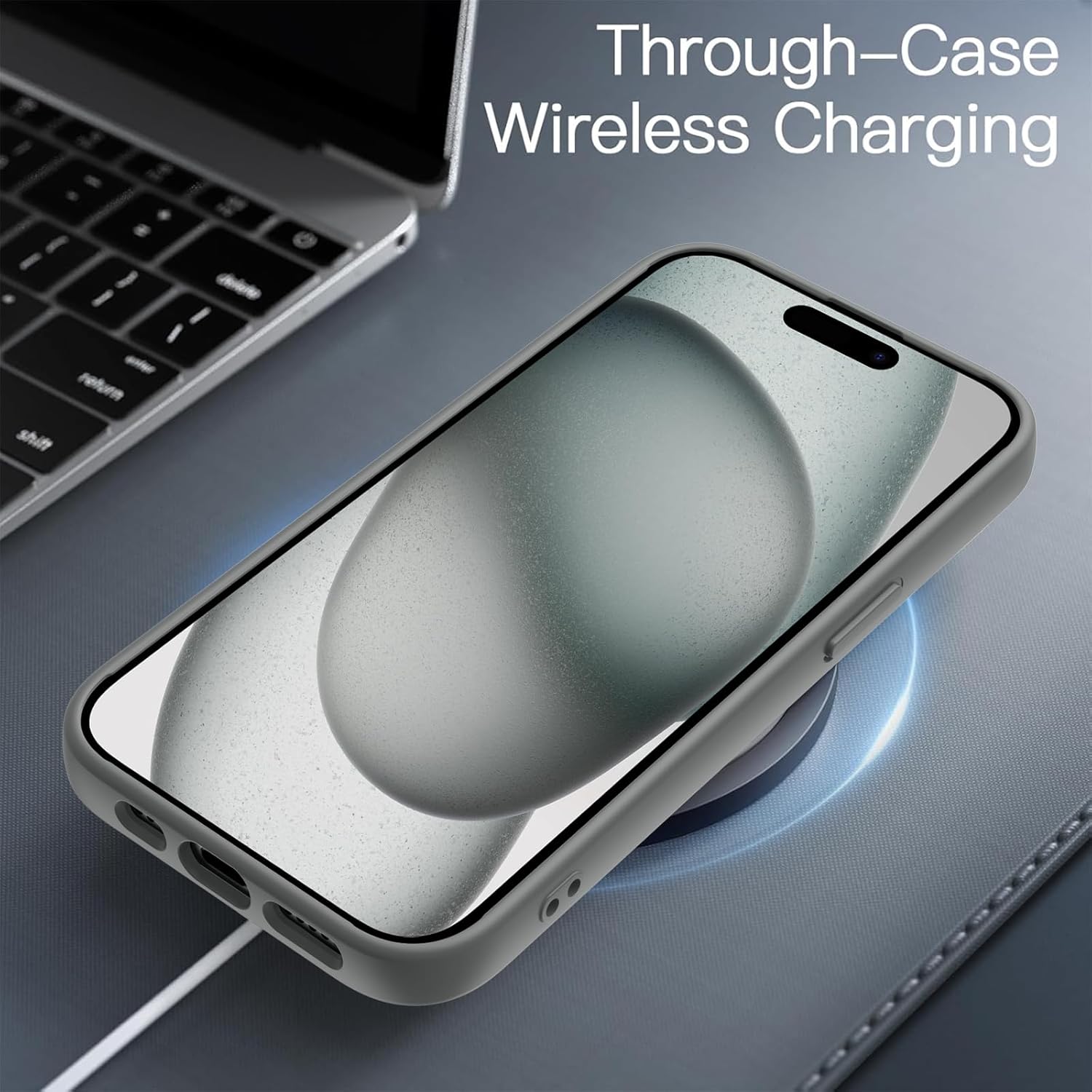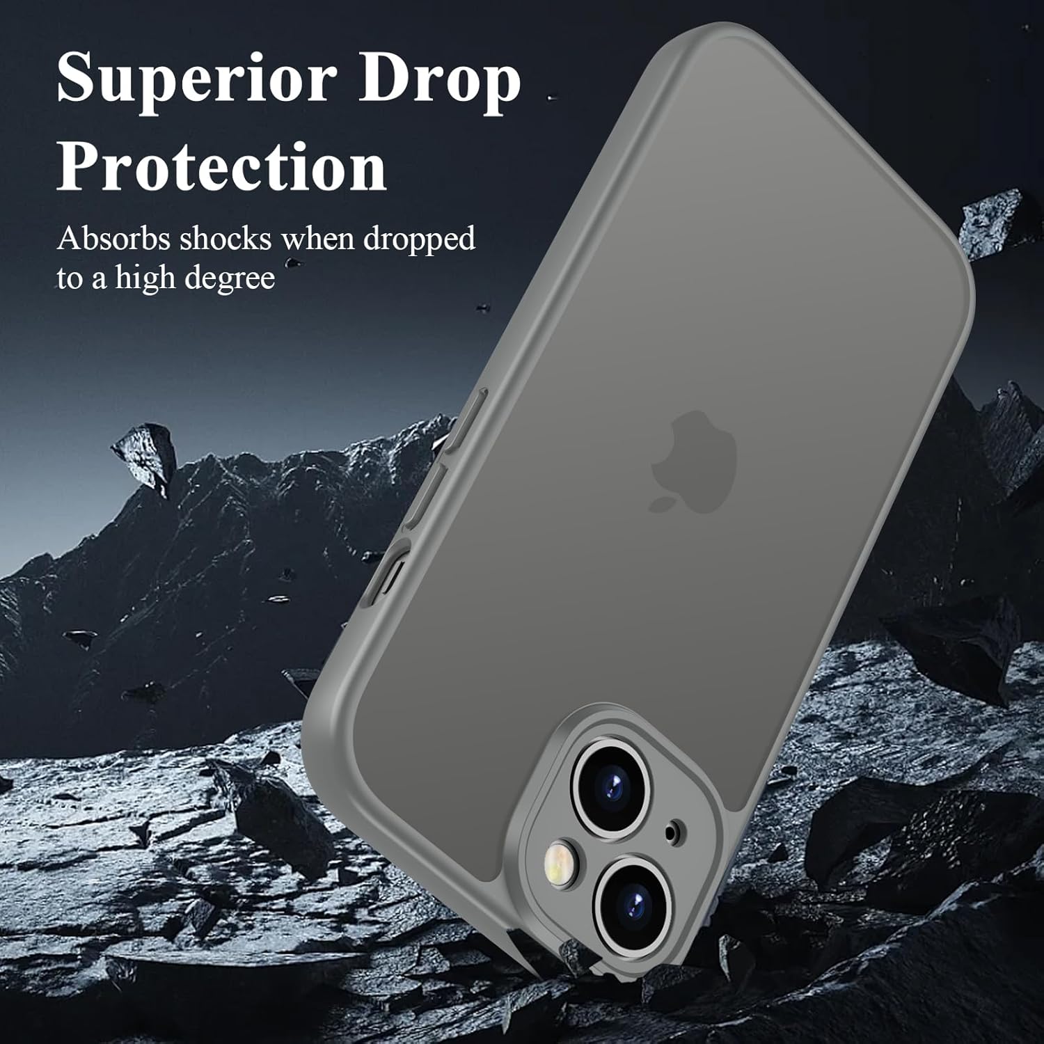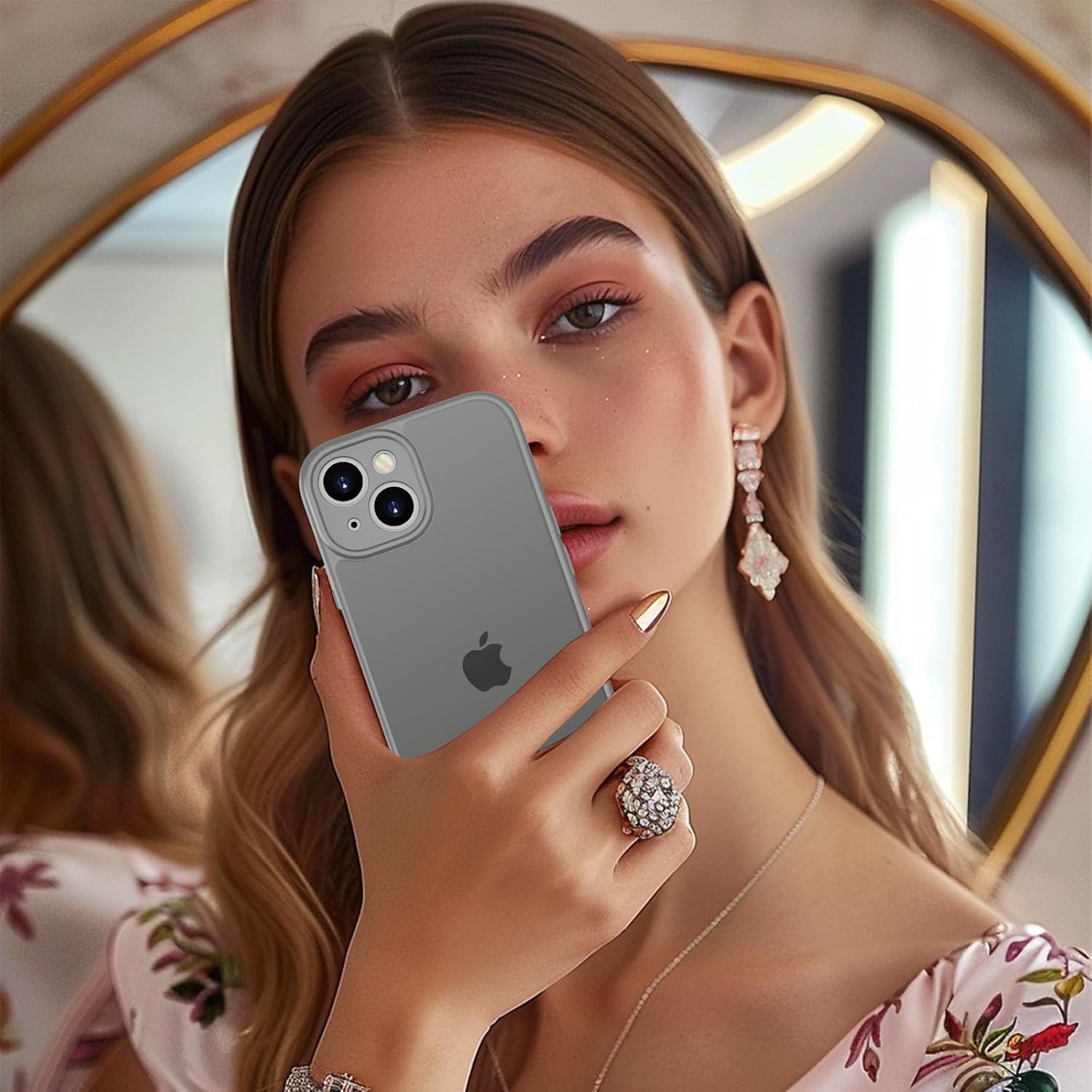 ORDA калъф за iPhone 15 6.1 инча, пълна защита на камерата, удароустойчив, устойчив на надраскване, прозрачен защитен калъф за гръб, матов калъф за мобилен телефон против пръстови отпечатъци за iPhone 15 (сив)