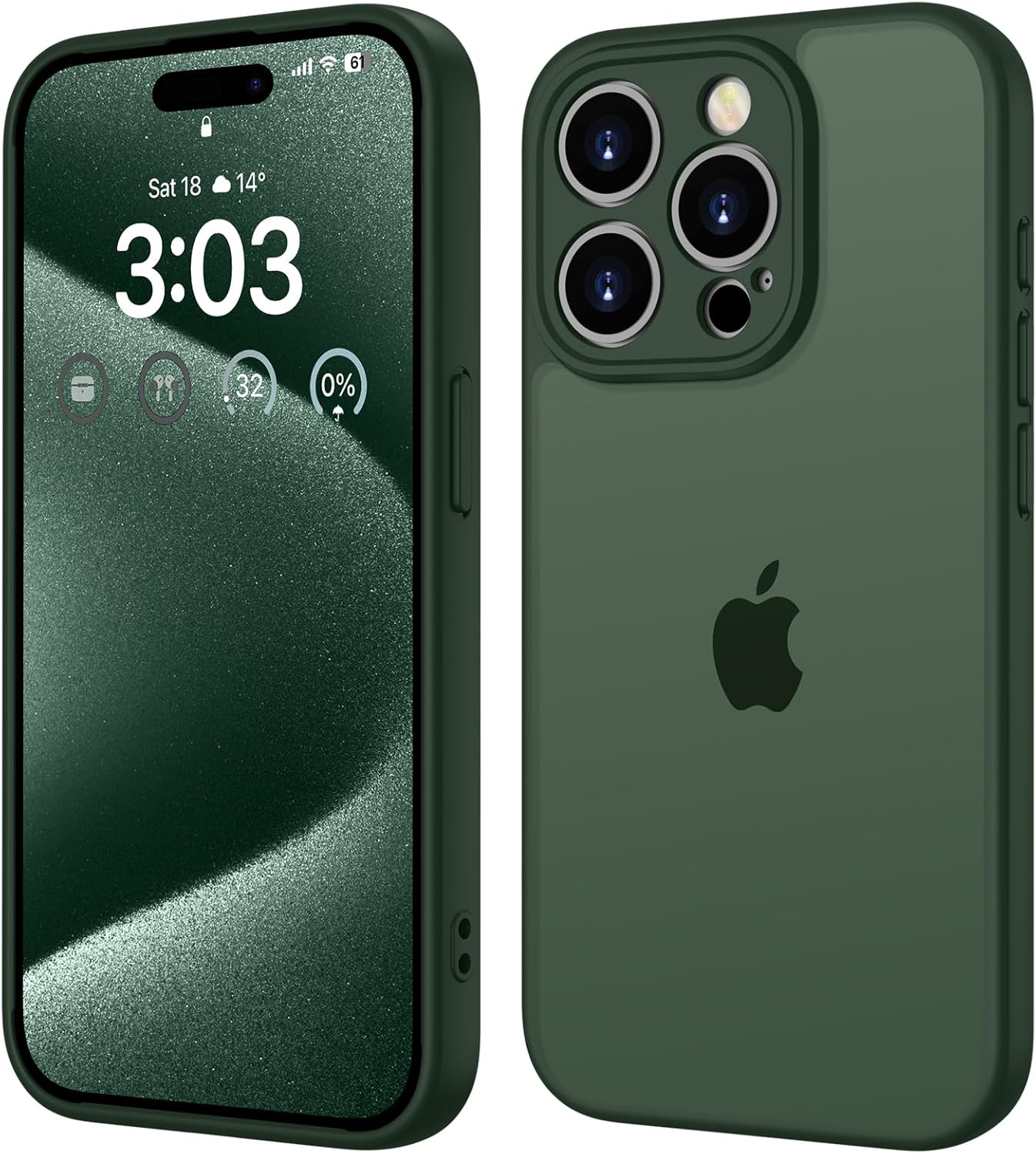 ORDA калъф за iPhone 15 Pro, 6.1 инча, пълна защита на камерата, удароустойчив, устойчив на надраскване, прозрачен защитен калъф за гръб, матов калъф за мобилен телефон против пръстови отпечатъци за iPhone 15 Pro (зелен)