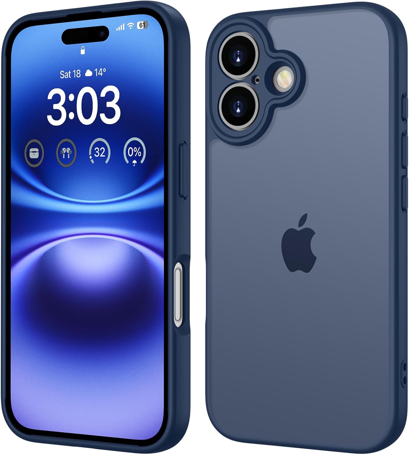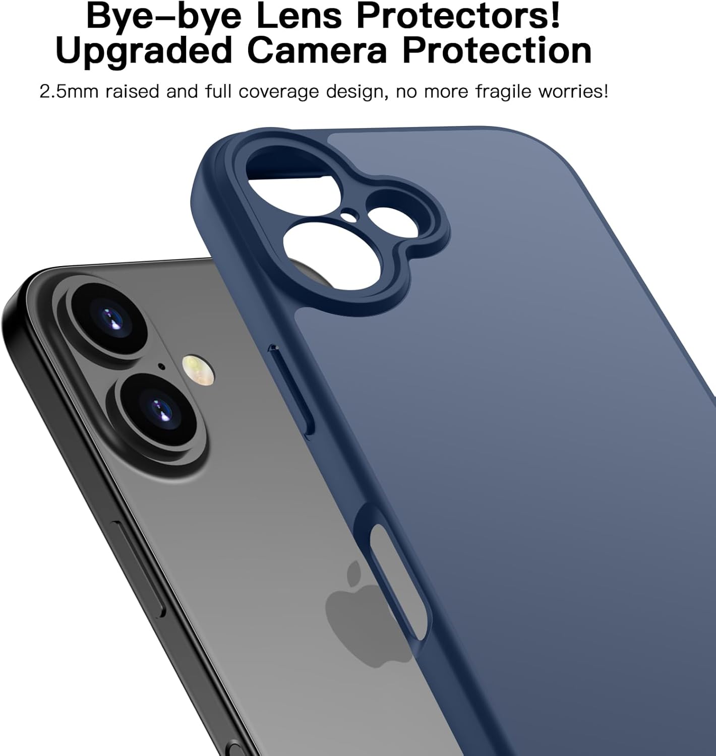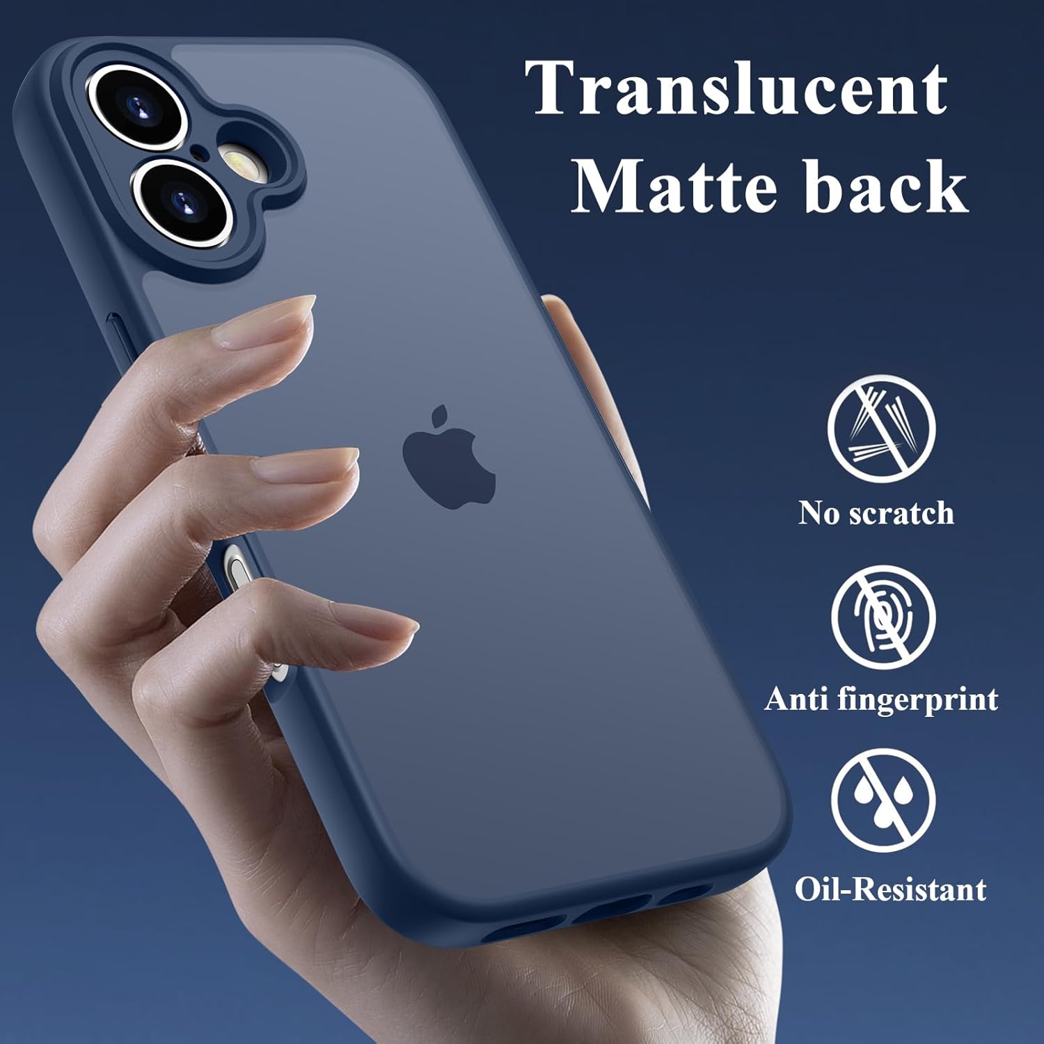 ORDA калъф за iPhone 16 6.1 инча, пълна защита на камерата, удароустойчив, устойчив на надраскване, прозрачен защитен калъф за гръб, калъф за мобилен телефон против пръстови отпечатъци за iPhone 16 (тъмносин)