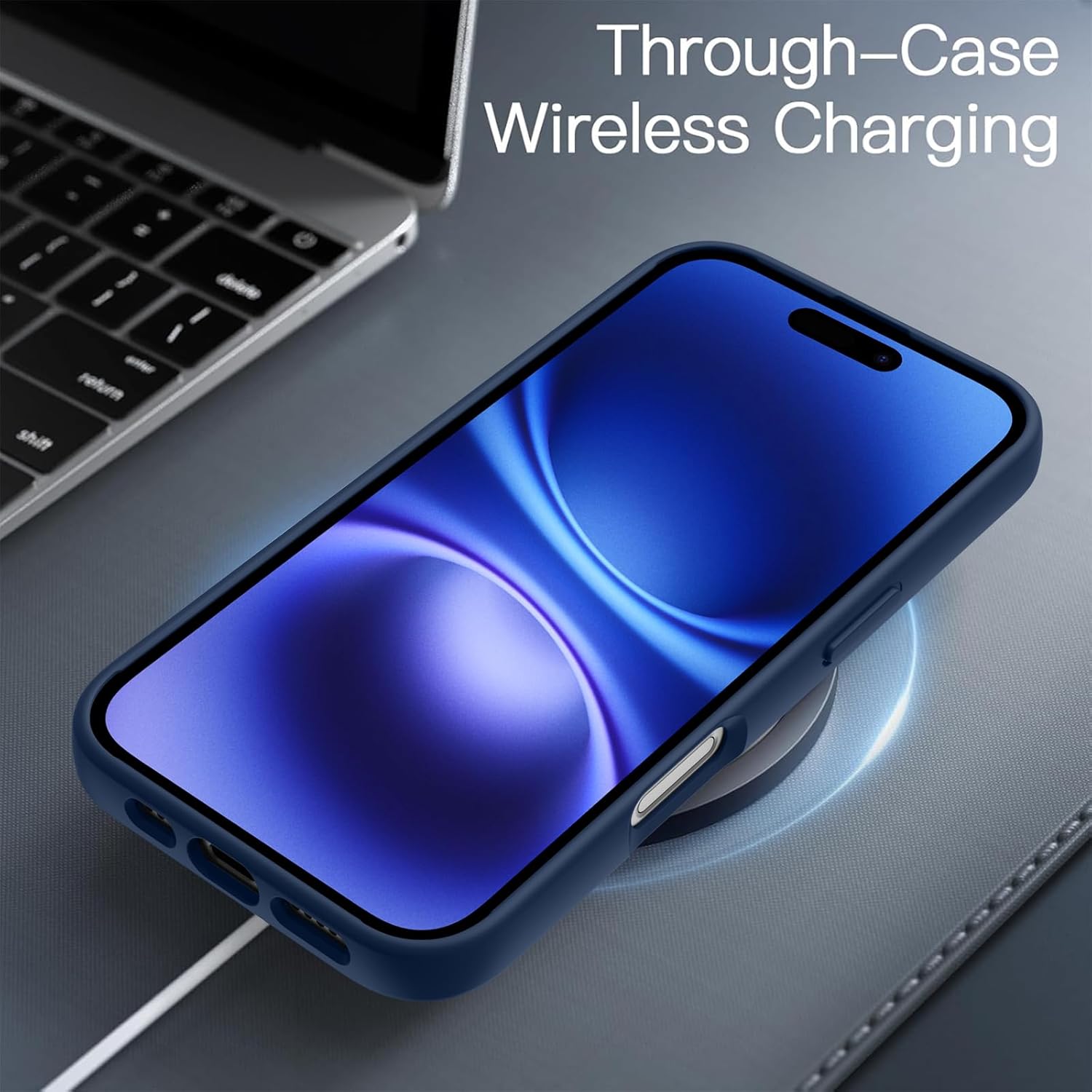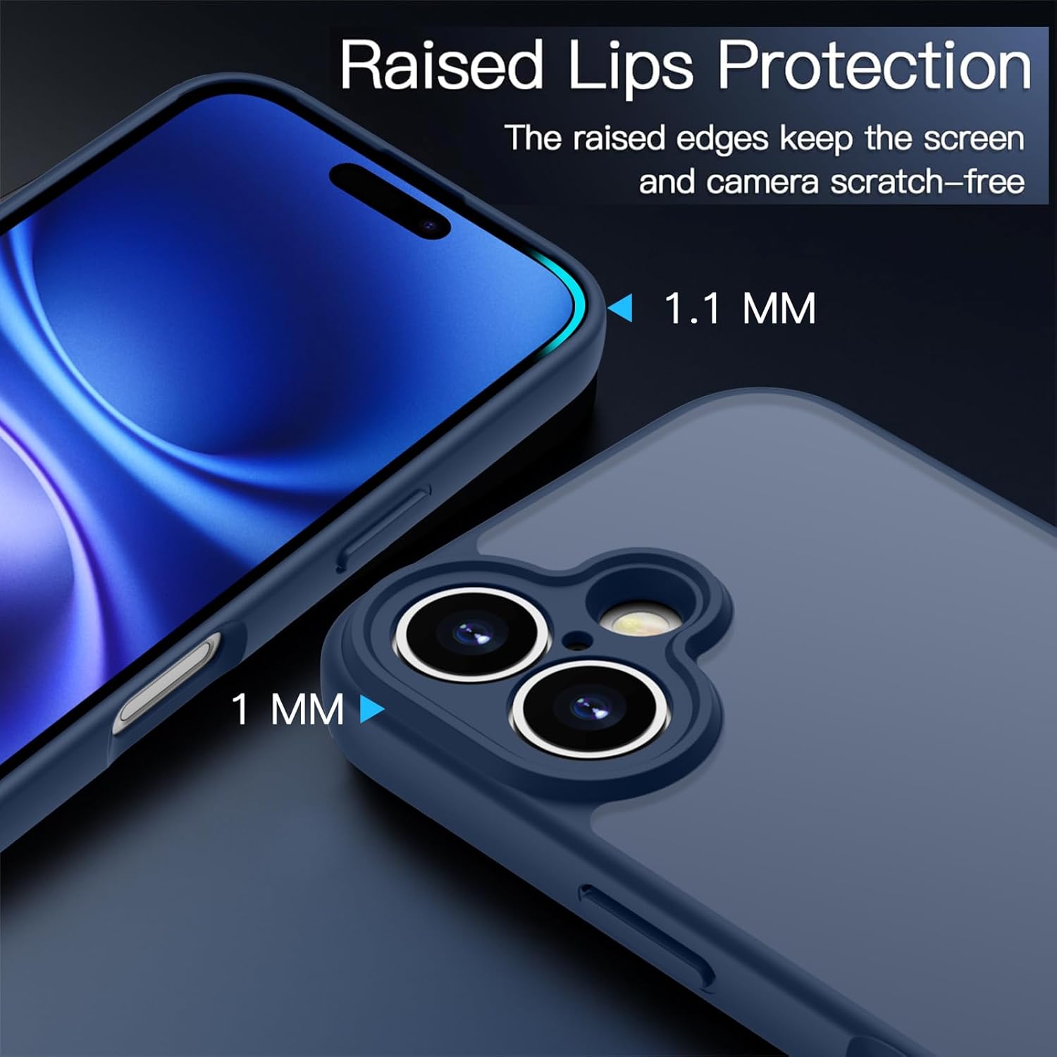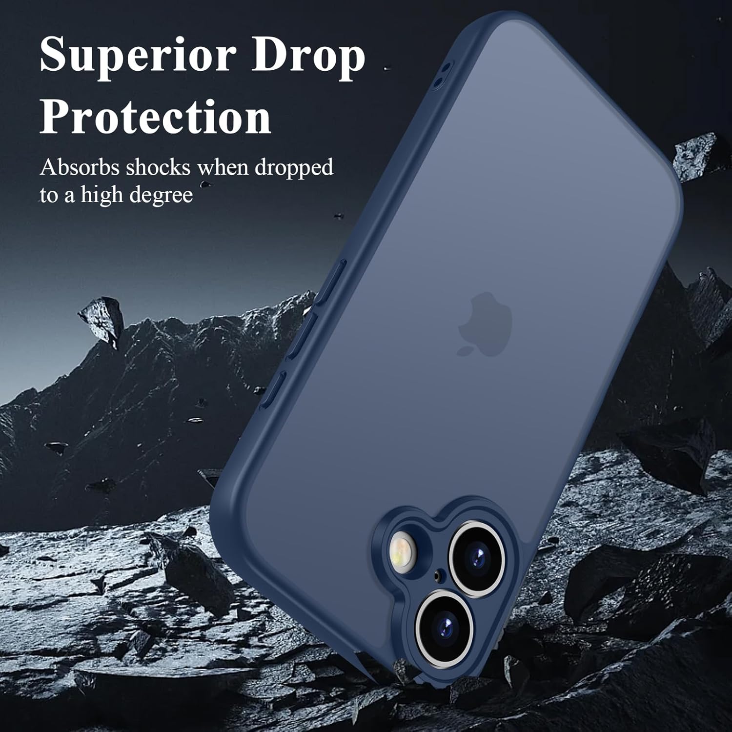 ORDA калъф за iPhone 16 6.1 инча, пълна защита на камерата, удароустойчив, устойчив на надраскване, прозрачен защитен калъф за гръб, калъф за мобилен телефон против пръстови отпечатъци за iPhone 16 (тъмносин)