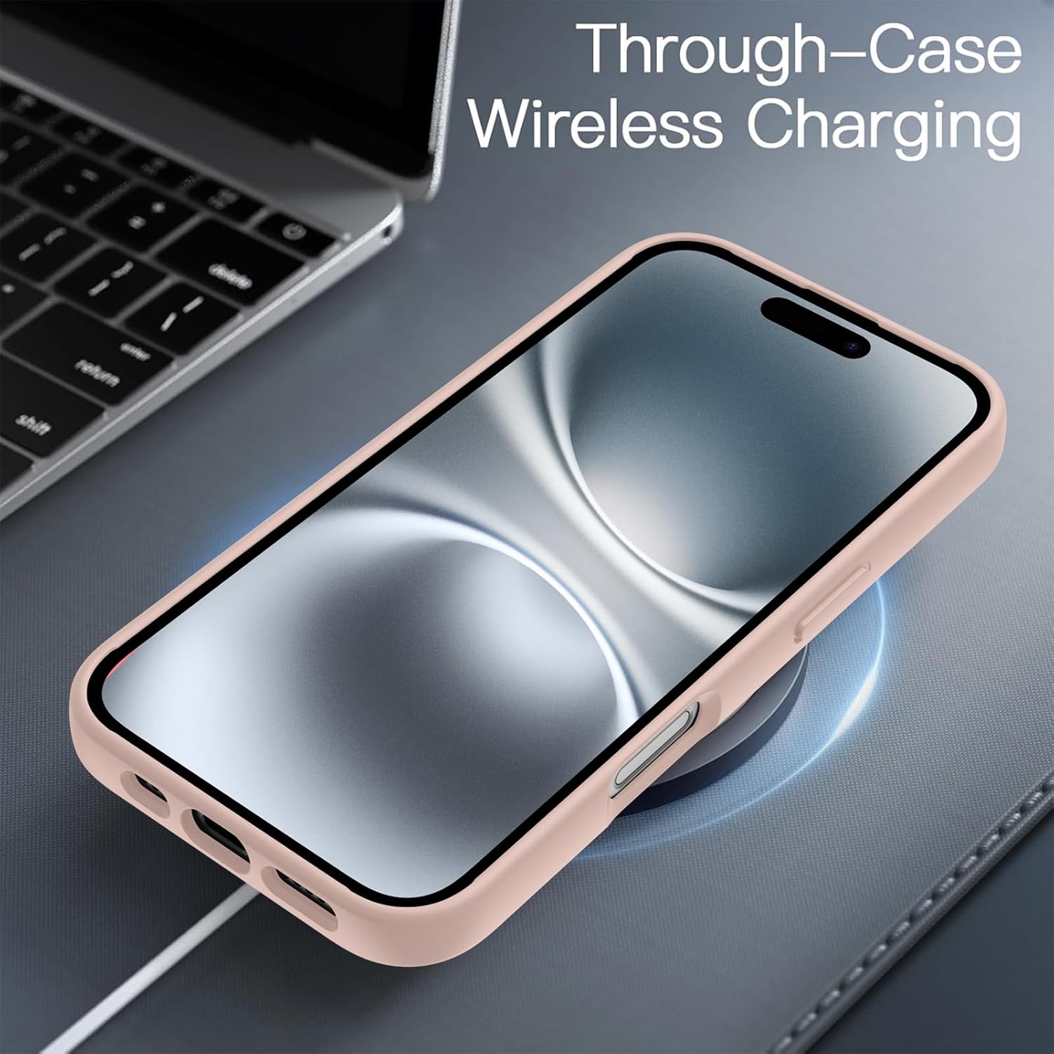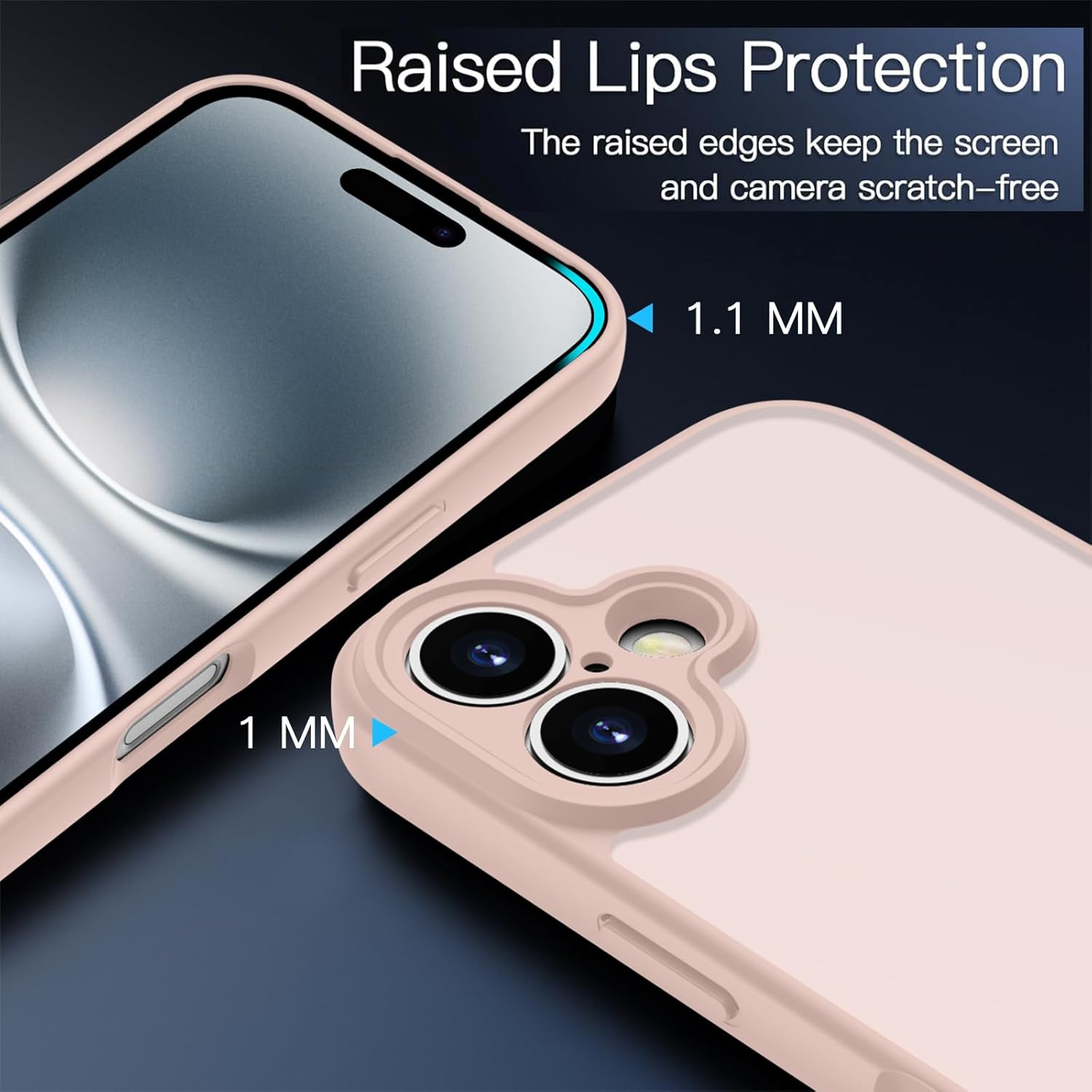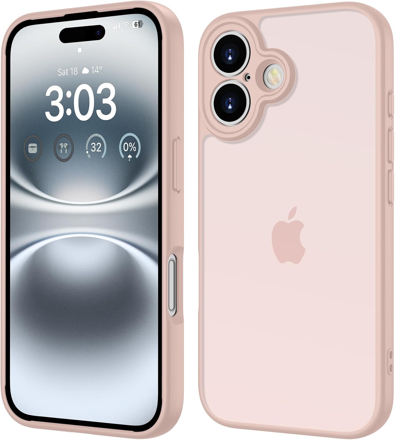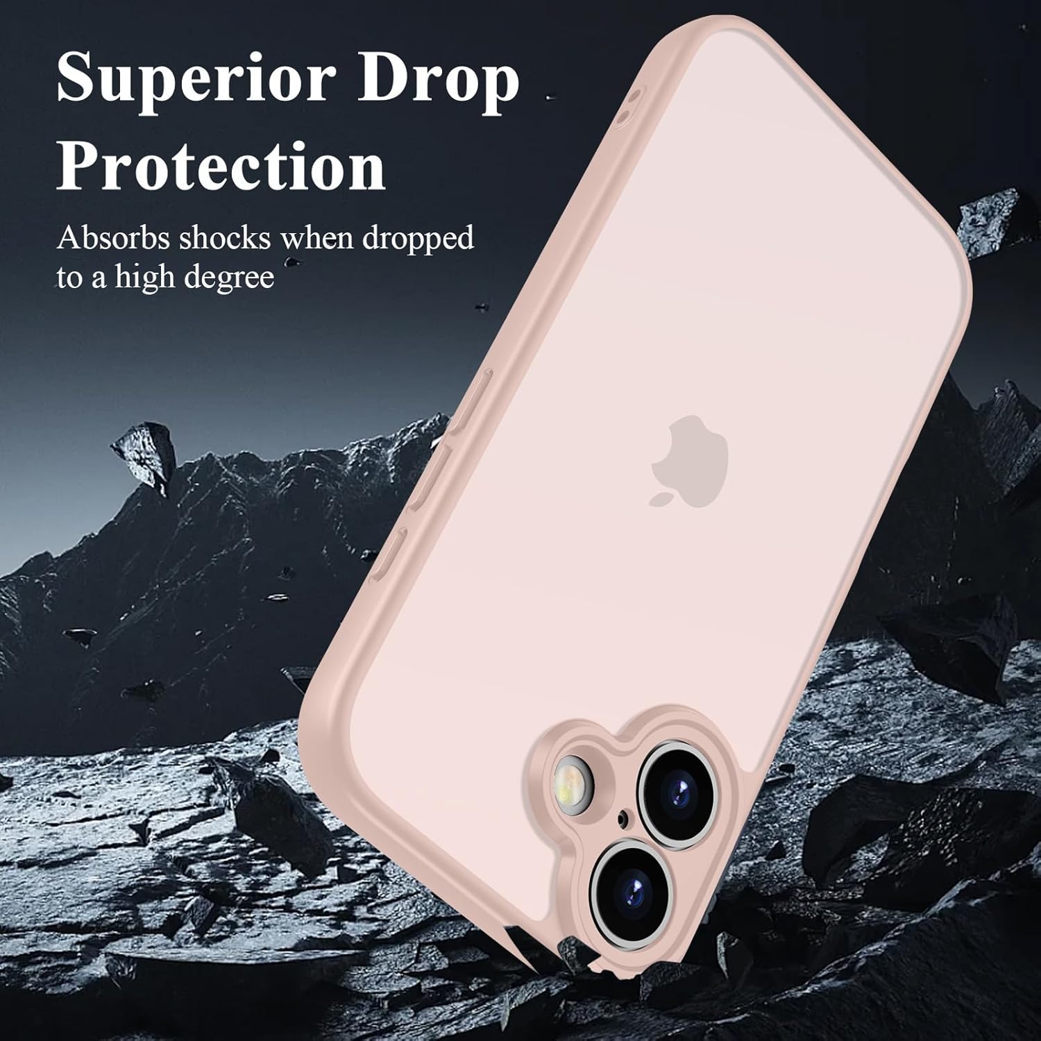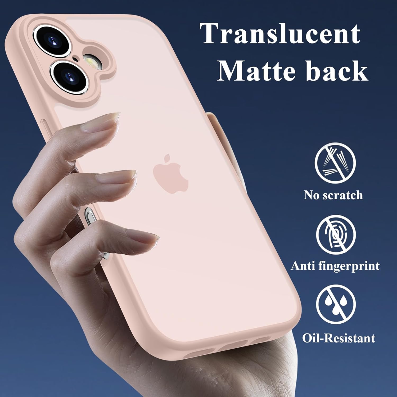 ORDA калъф за iPhone 16 6.1 инча, пълна защита на камерата, удароустойчив, устойчив на надраскване, прозрачен защитен калъф за гръб, матов калъф за мобилен телефон против пръстови отпечатъци за iPhone 16 (розов)