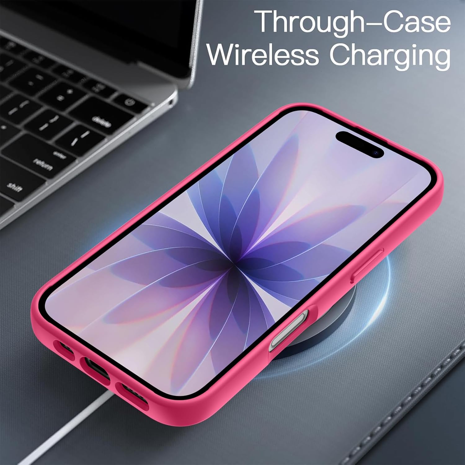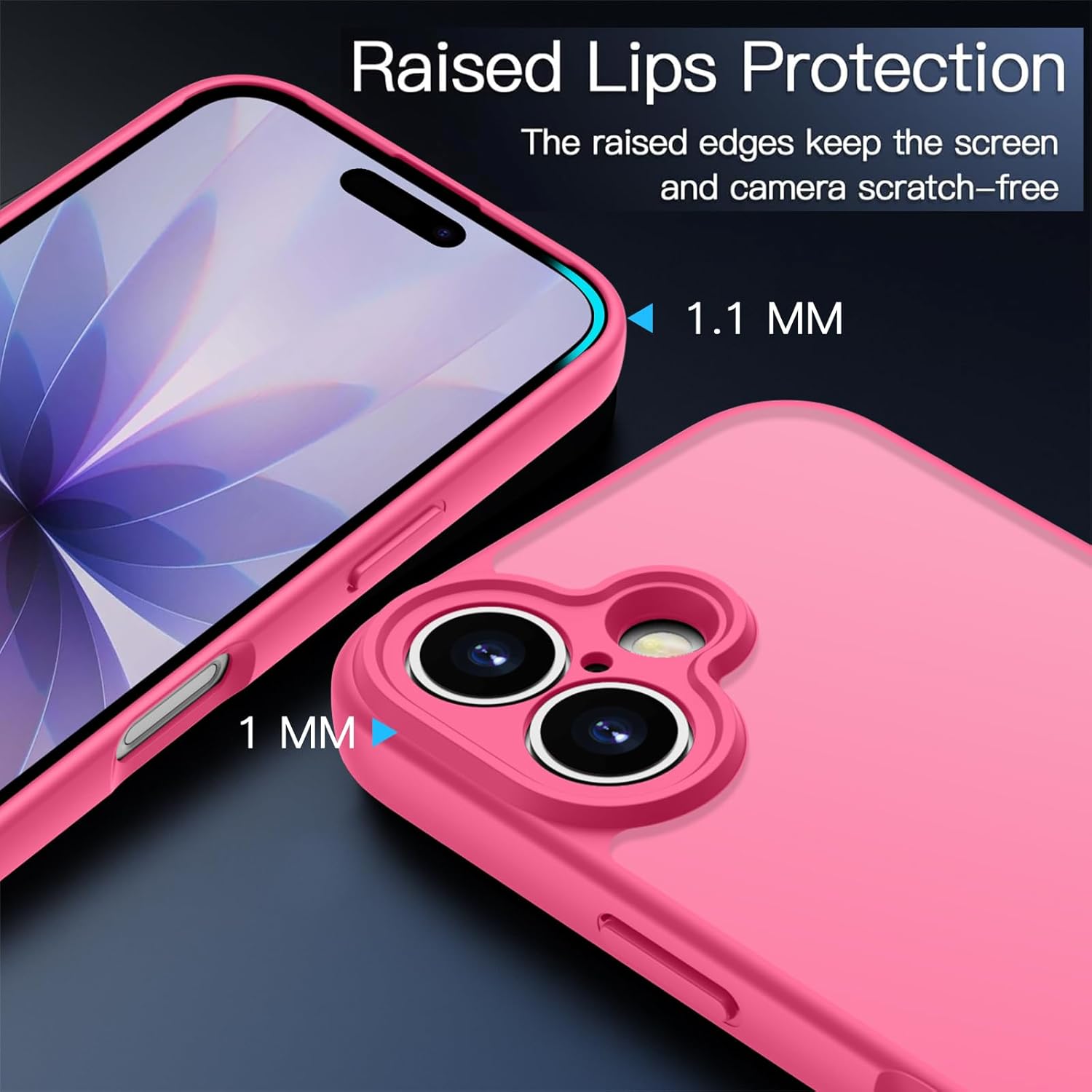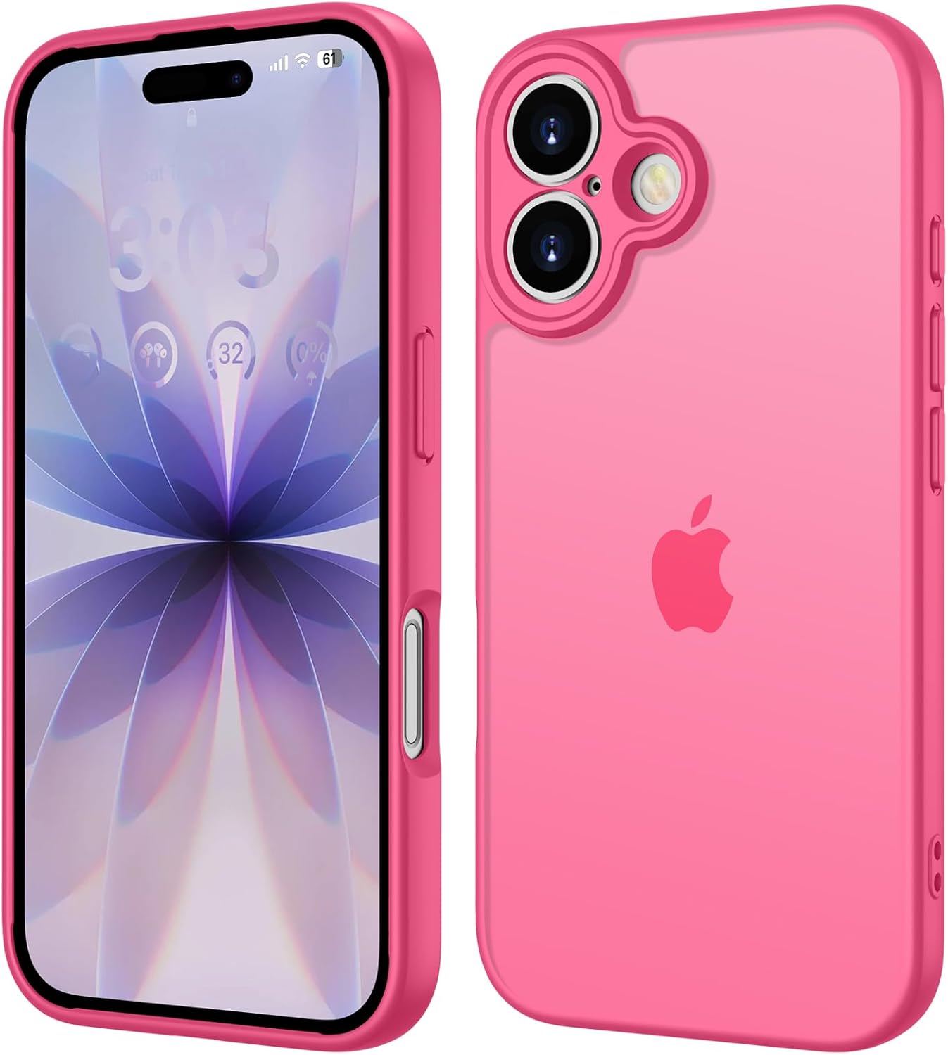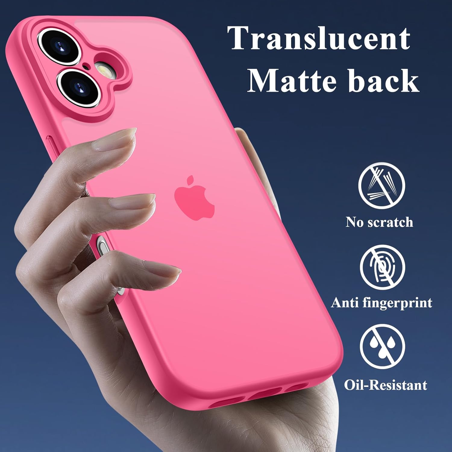 ORDA калъф за iPhone 17 6.3 инча, пълна защита на камерата, удароустойчив, устойчив на надраскване, прозрачен защитен калъф за гръб, матов калъф за мобилен телефон против пръстови отпечатъци за iPhone 17 (ярко розов)