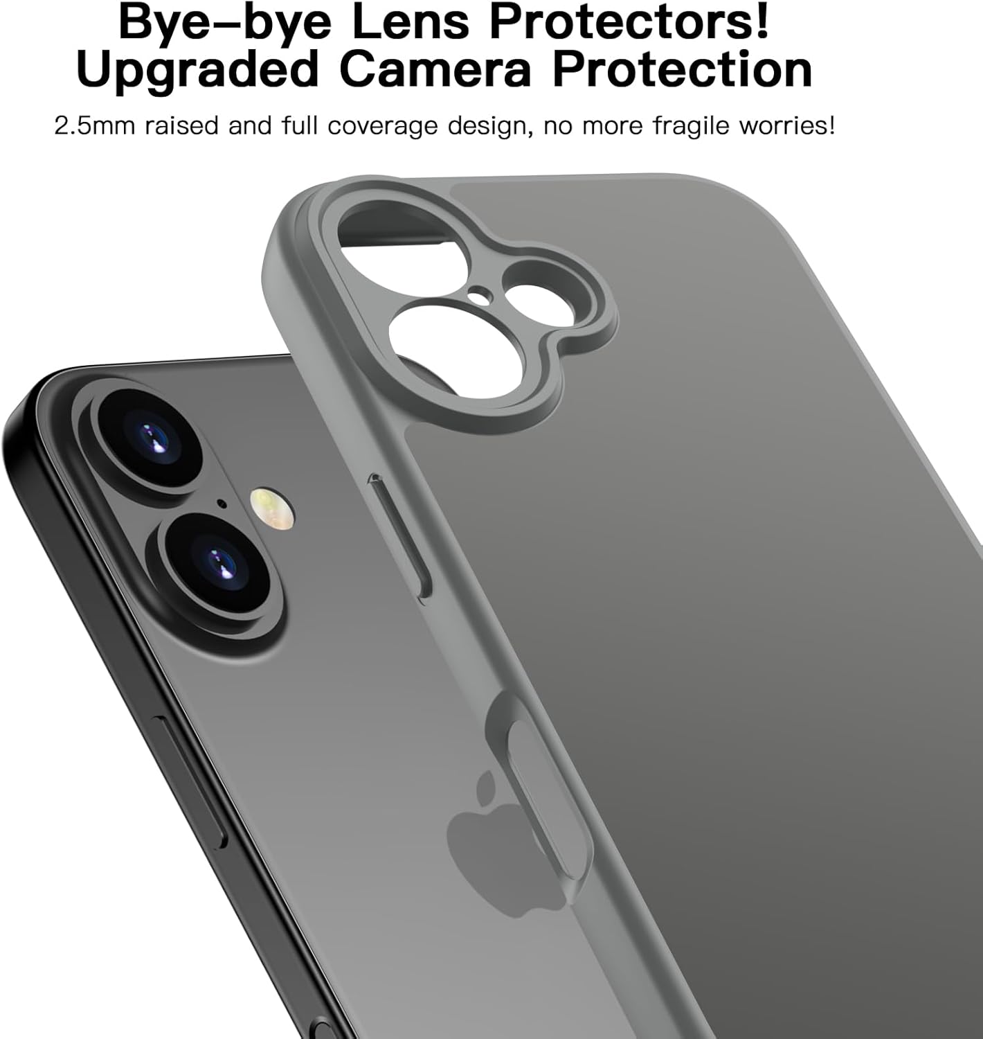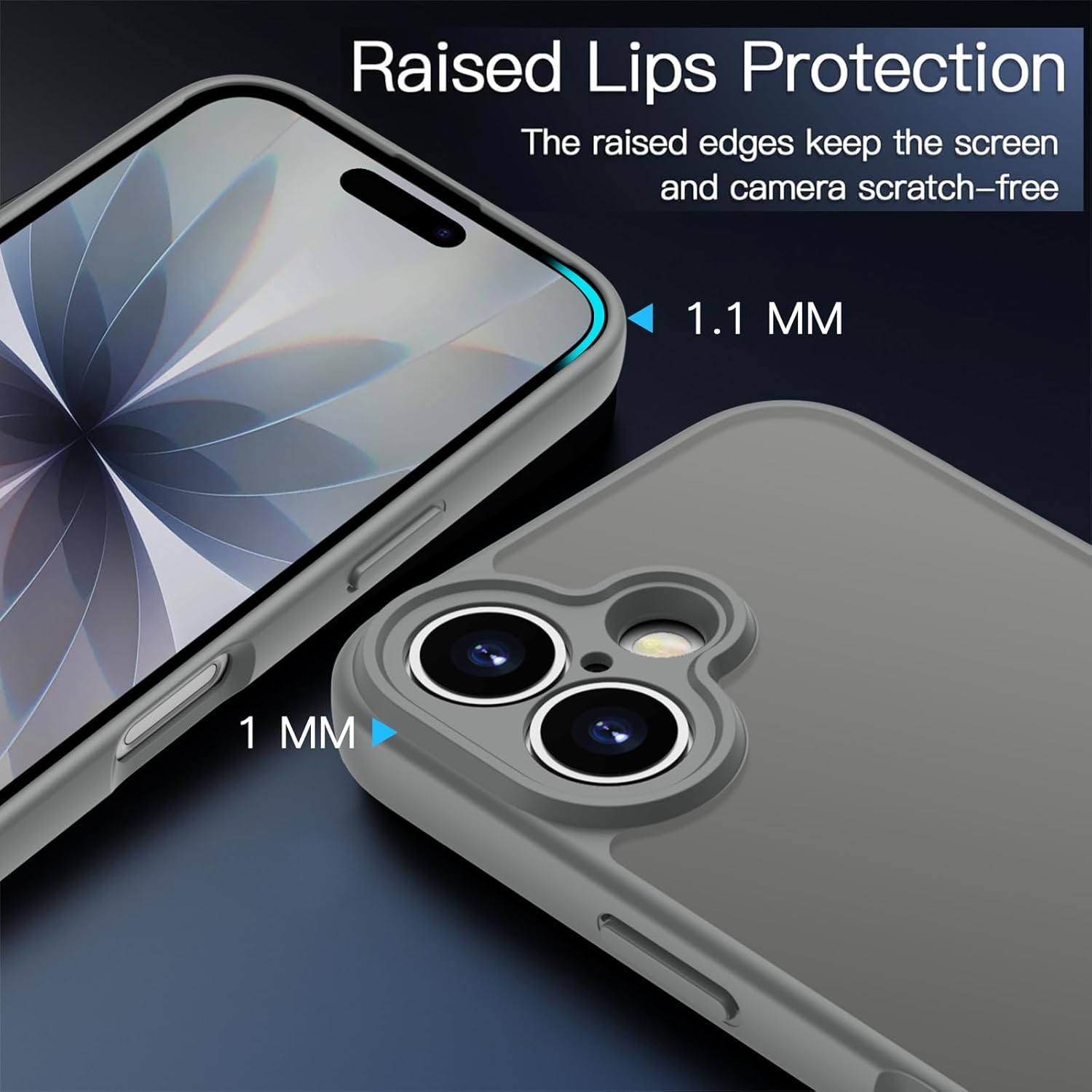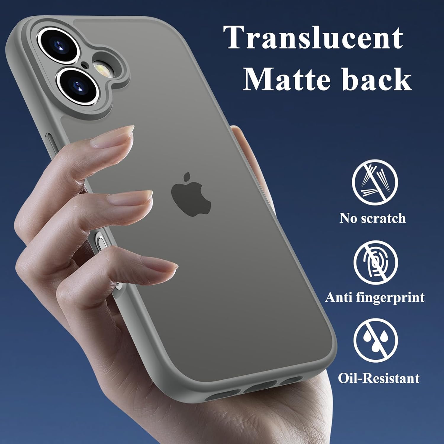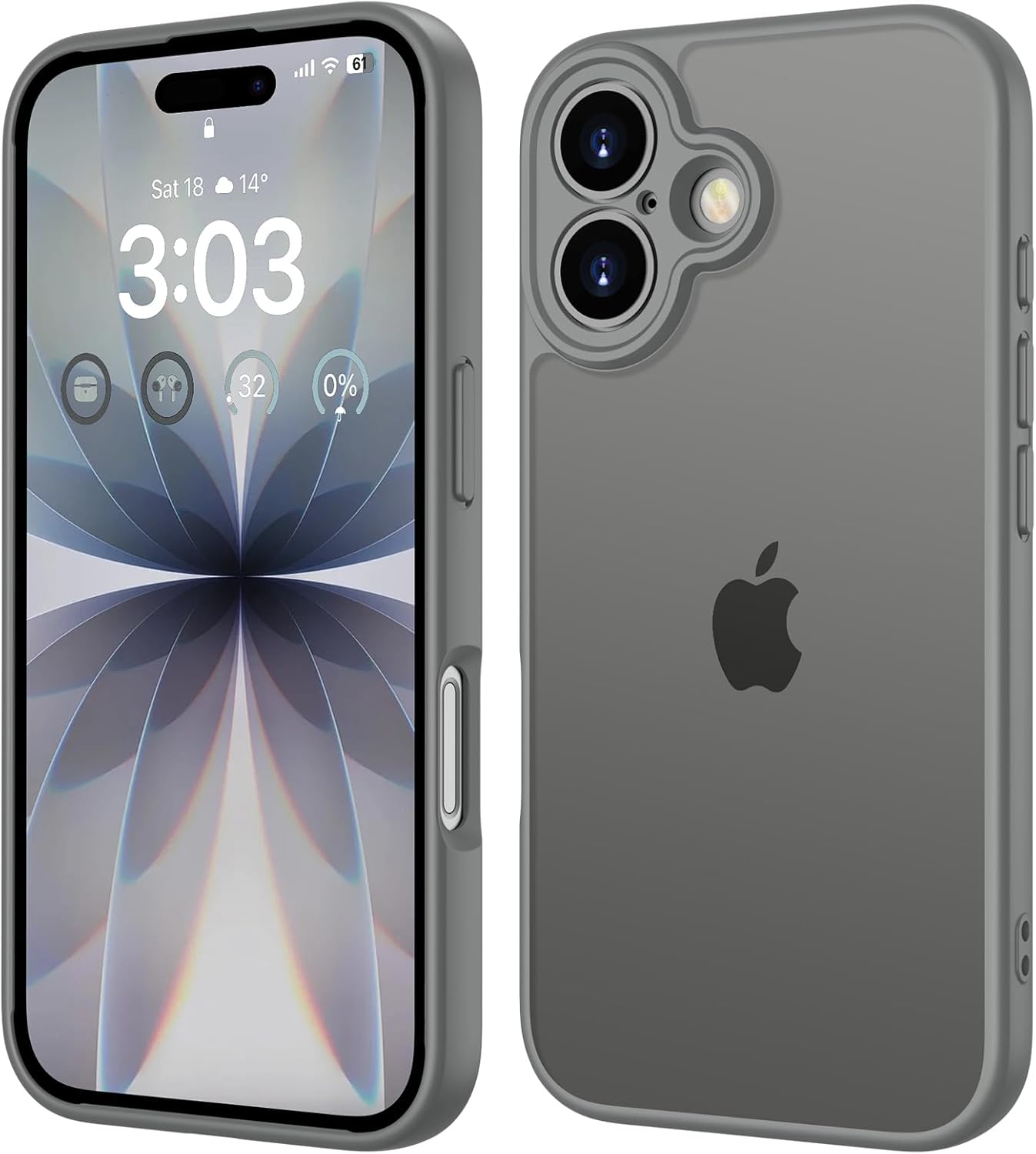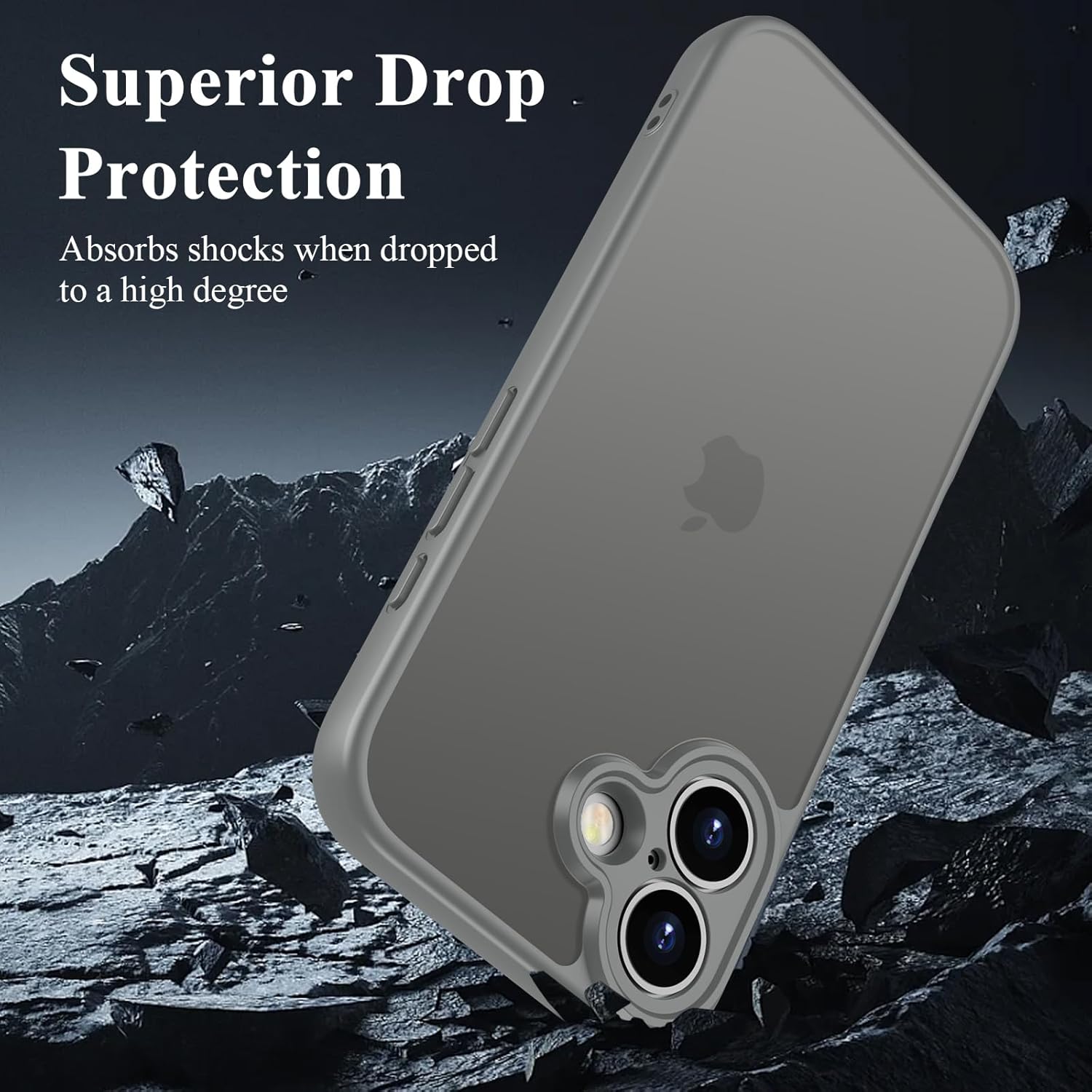 ORDA калъф за iPhone 17 6.3 инча, пълна защита на камерата, удароустойчив, устойчив на надраскване, прозрачен защитен калъф за гръб, матов калъф за мобилен телефон против пръстови отпечатъци за iPhone 17 (сив)