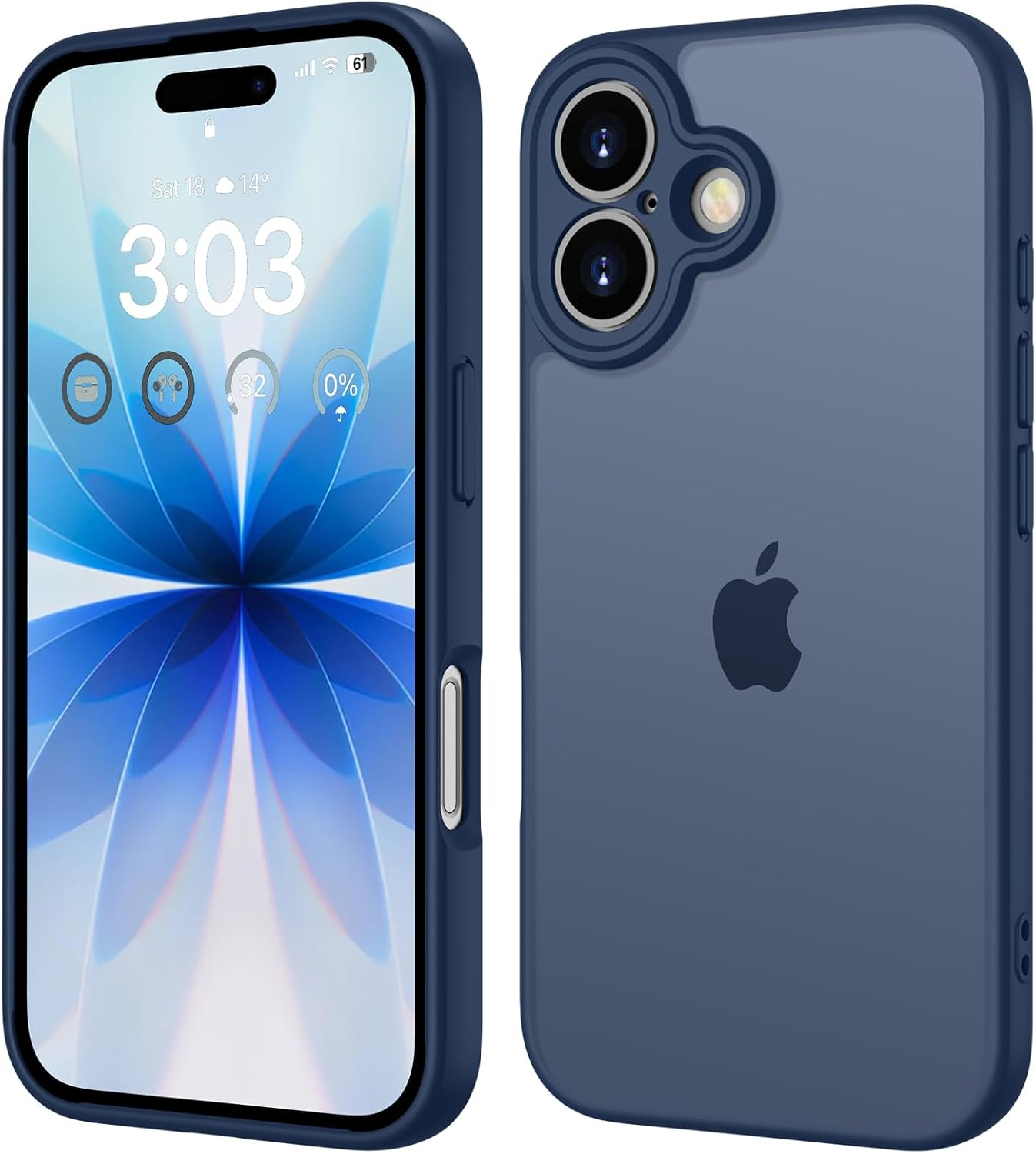 ORDA калъф за iPhone 17 6.3 инча, пълна защита на камерата, удароустойчив, устойчив на надраскване, прозрачен защитен калъф за гръб, матов калъф за мобилен телефон против пръстови отпечатъци за iPhone 17 (тъмносин)