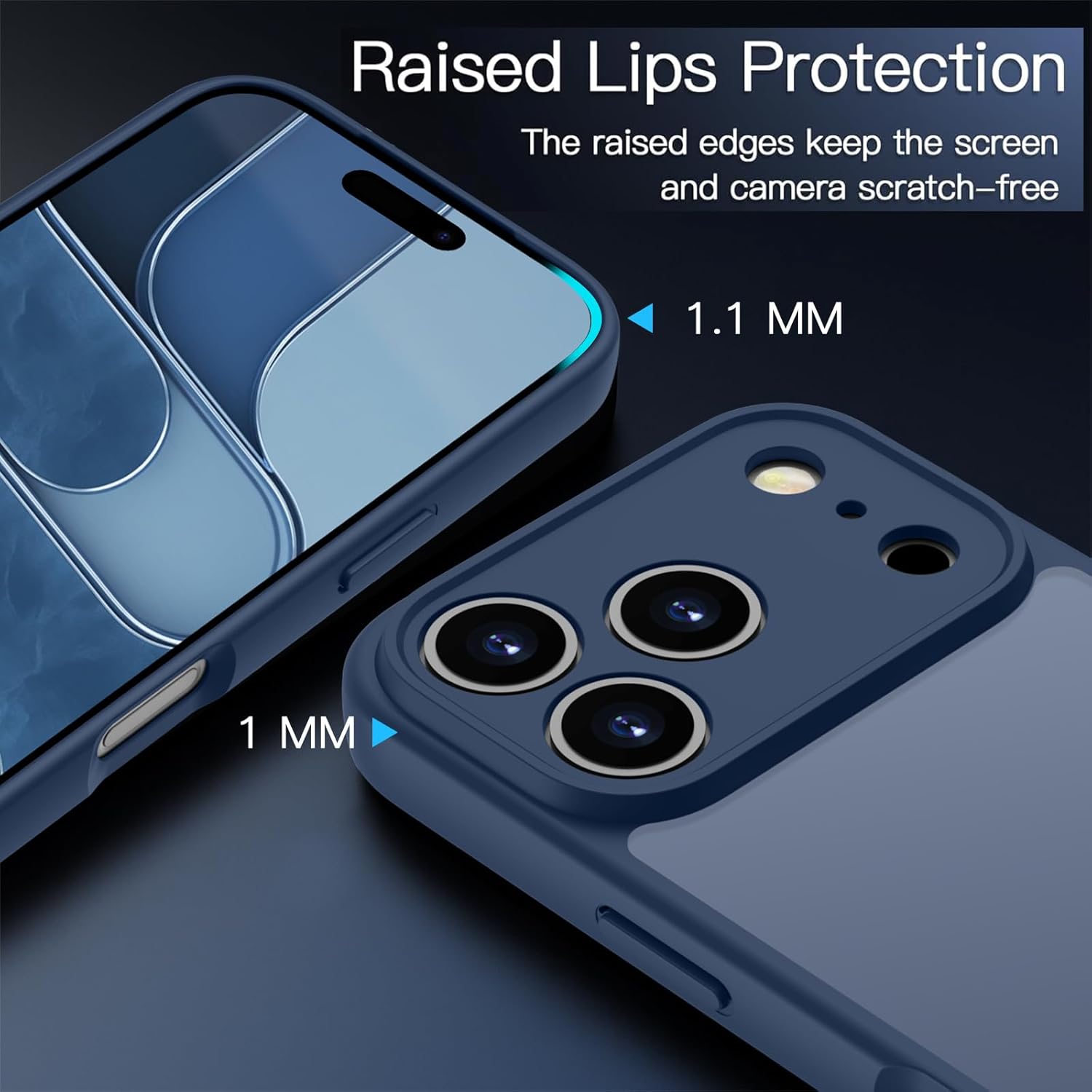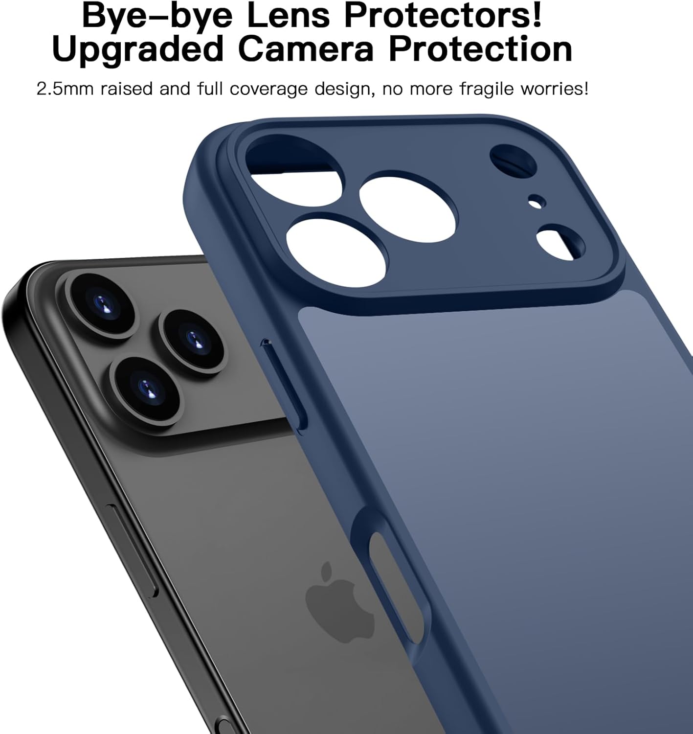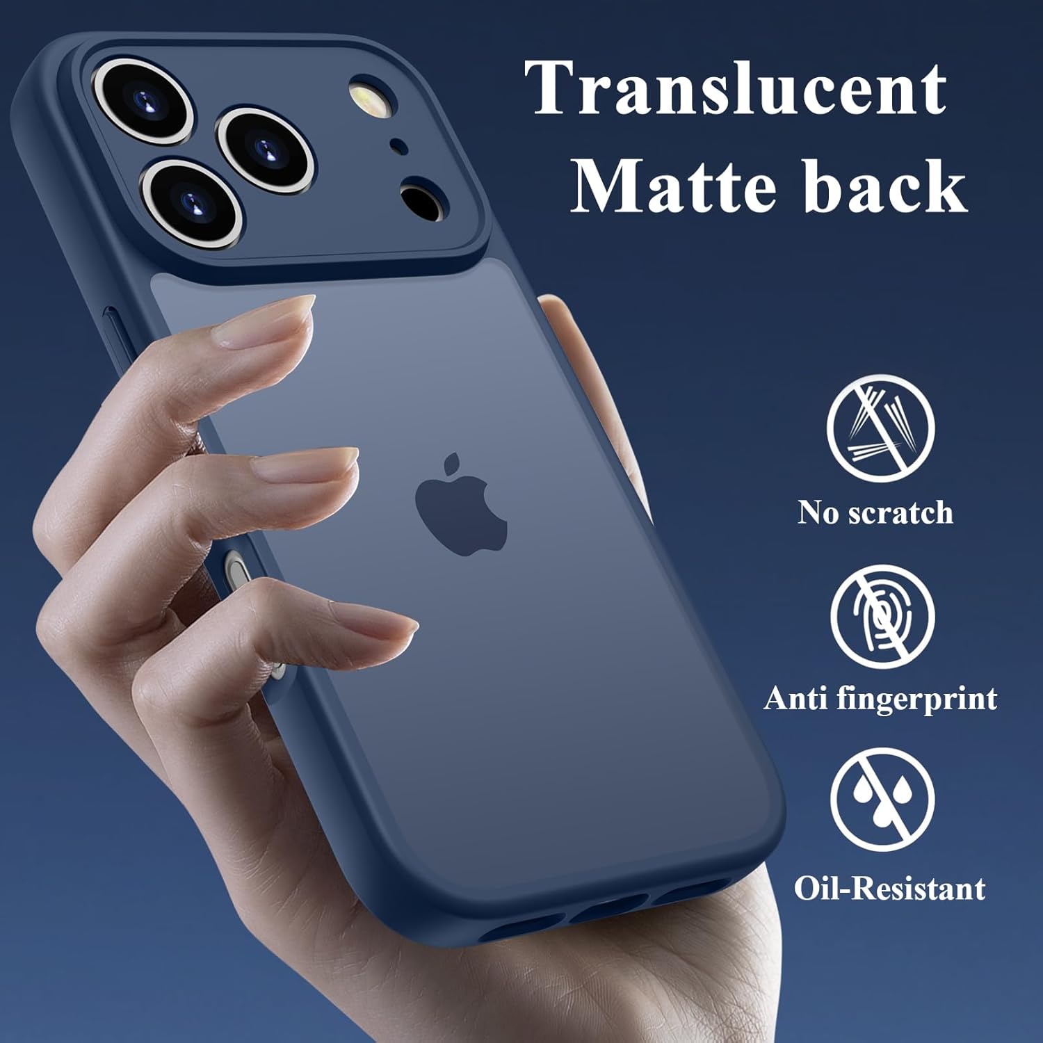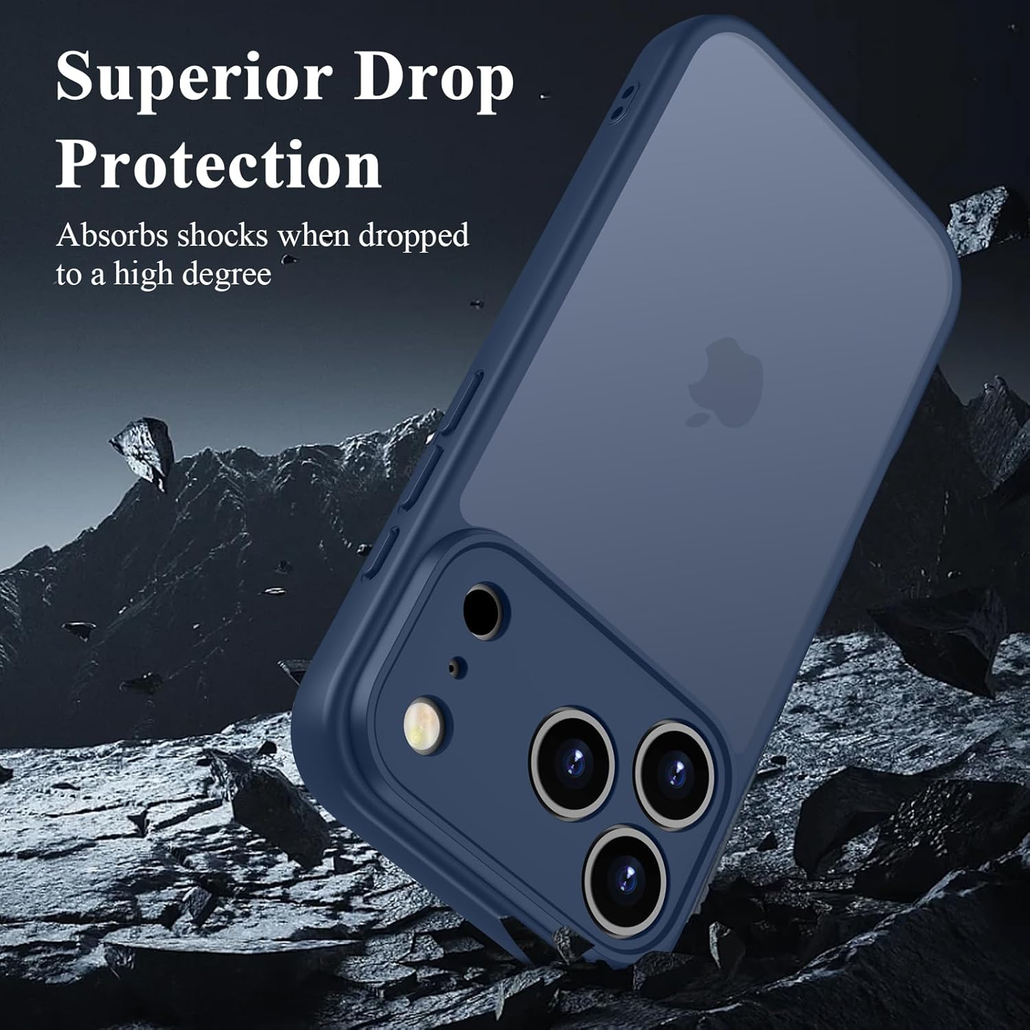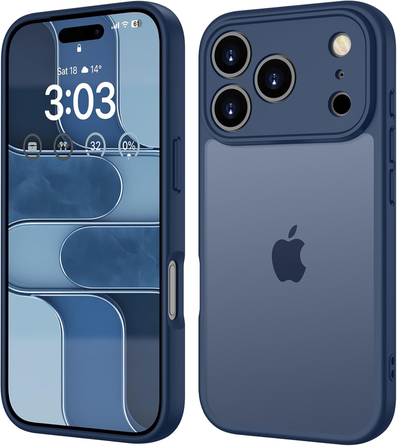 ORDA калъф за iPhone 17 Pro, 6.3 инча, пълна защита на камерата, удароустойчив, устойчив на надраскване, прозрачен защитен калъф за гръб, калъф за мобилен телефон против пръстови отпечатъци за iPhone 17 Pro (тъмносин)