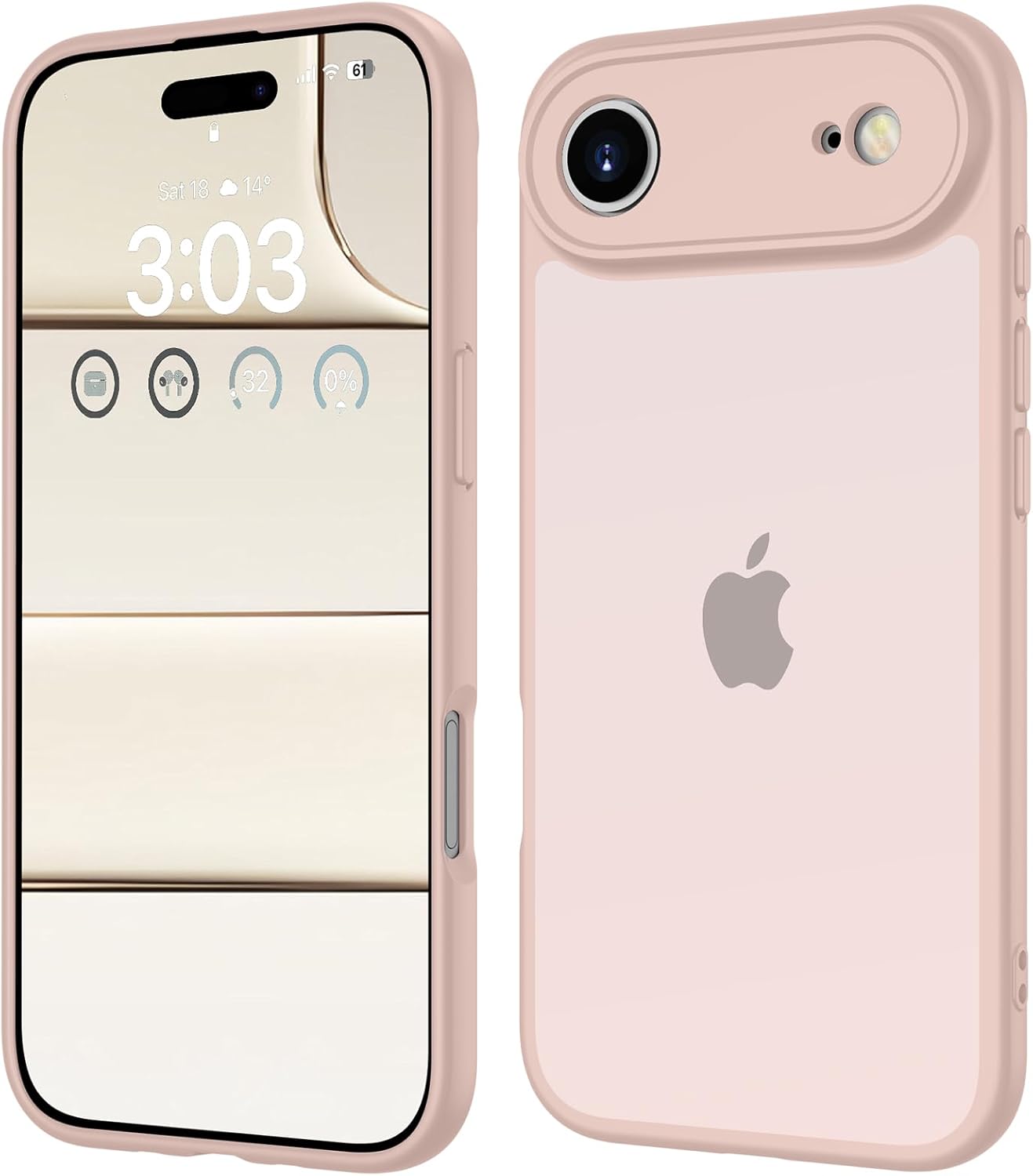ORDA калъф за iPhone Air 6.5 инча, пълна защита на камерата, удароустойчив, устойчив на надраскване, прозрачен защитен калъф за гръб, калъф за мобилен телефон против пръстови отпечатъци за iPhone 17 Air (розов)