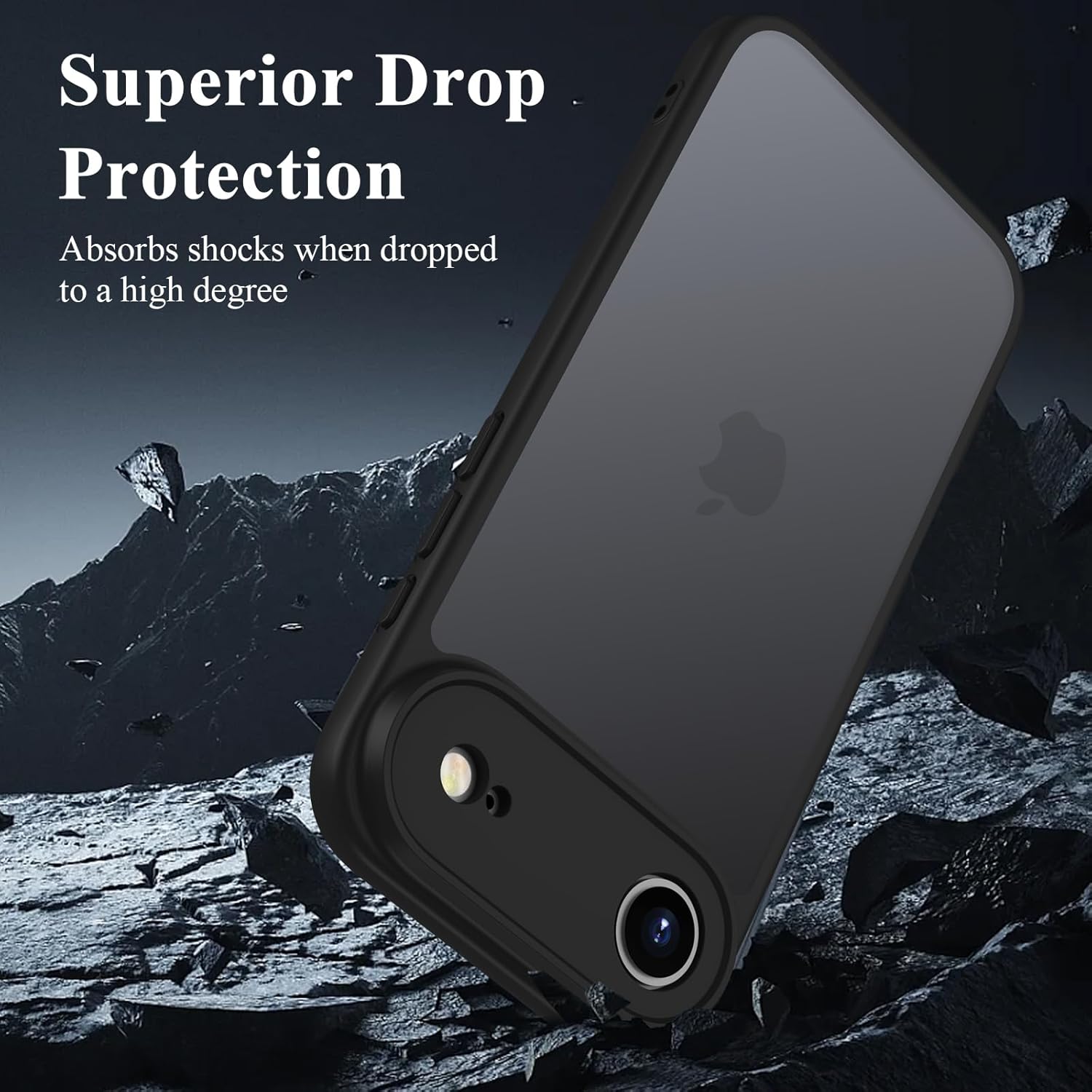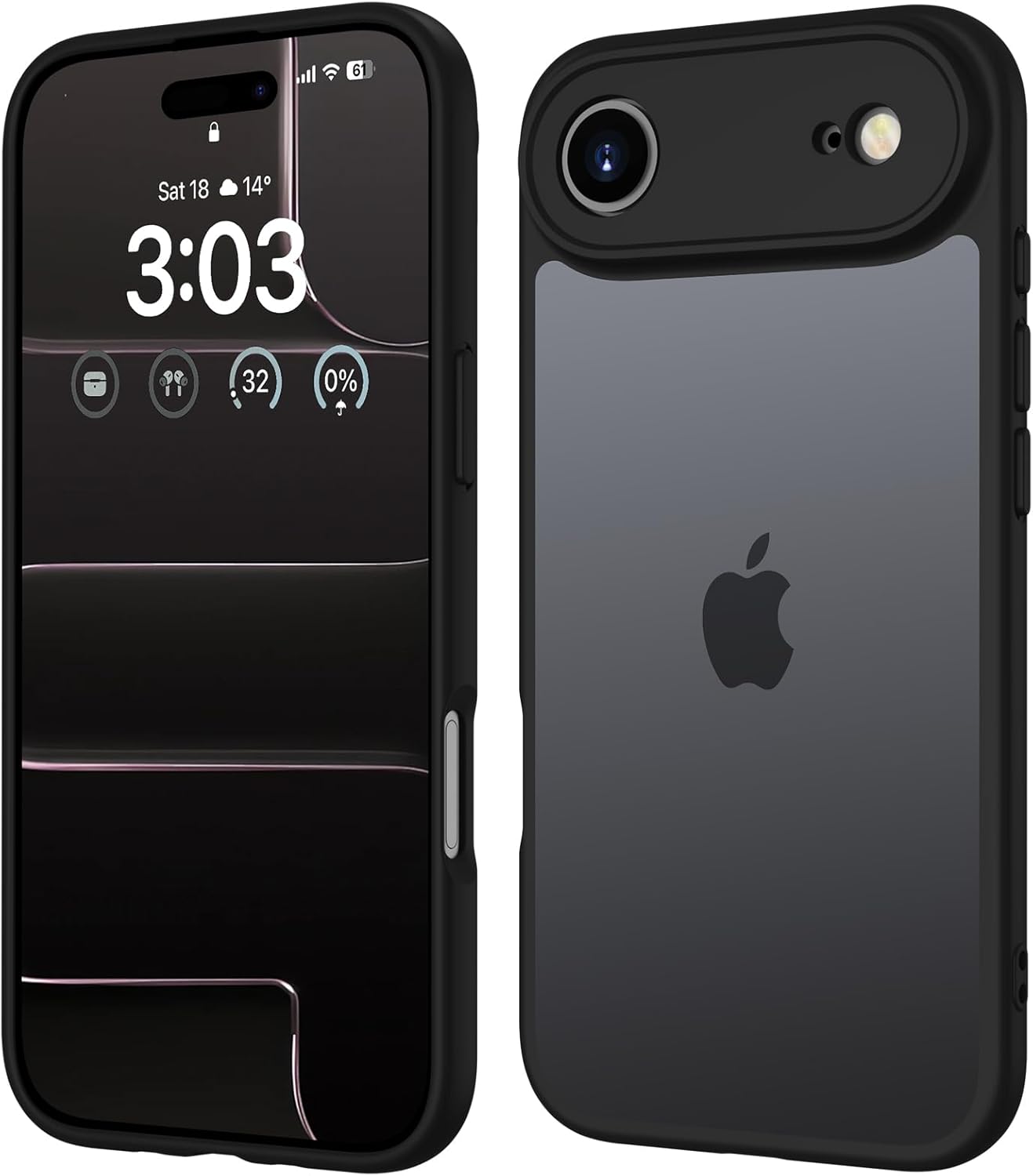 ORDA калъф за iPhone Air 6.5 инча, пълна защита на камерата, удароустойчив, устойчив на надраскване, прозрачен защитен калъф за гръб, матов калъф за мобилен телефон против пръстови отпечатъци за iPhone 17 Air (черен)