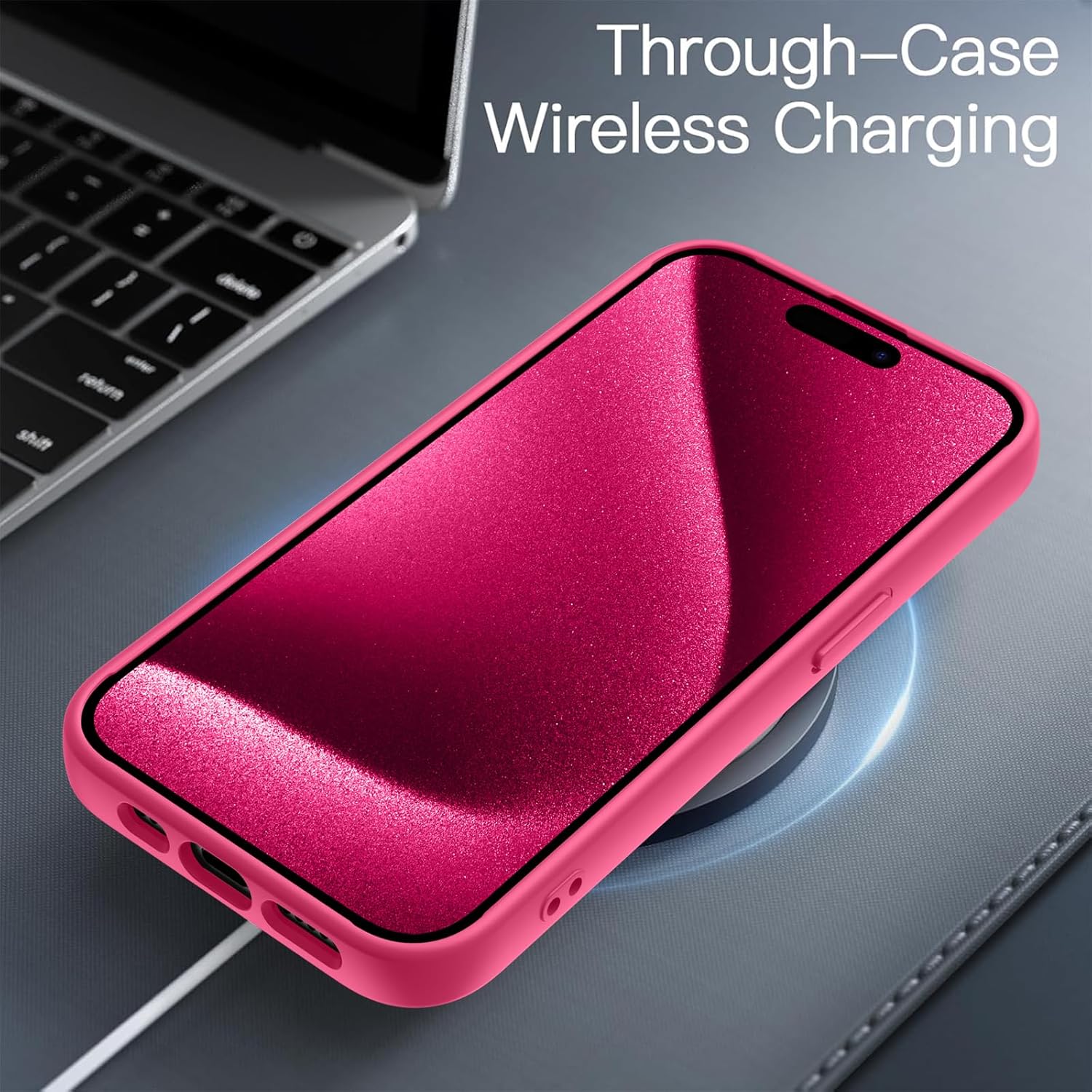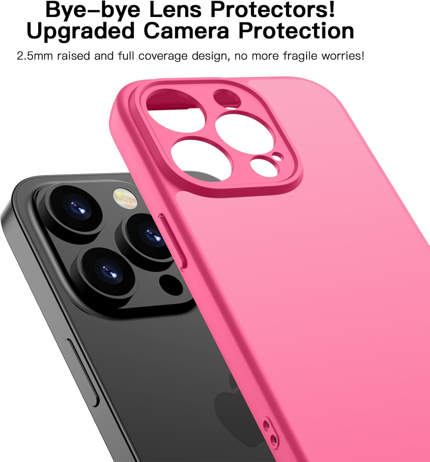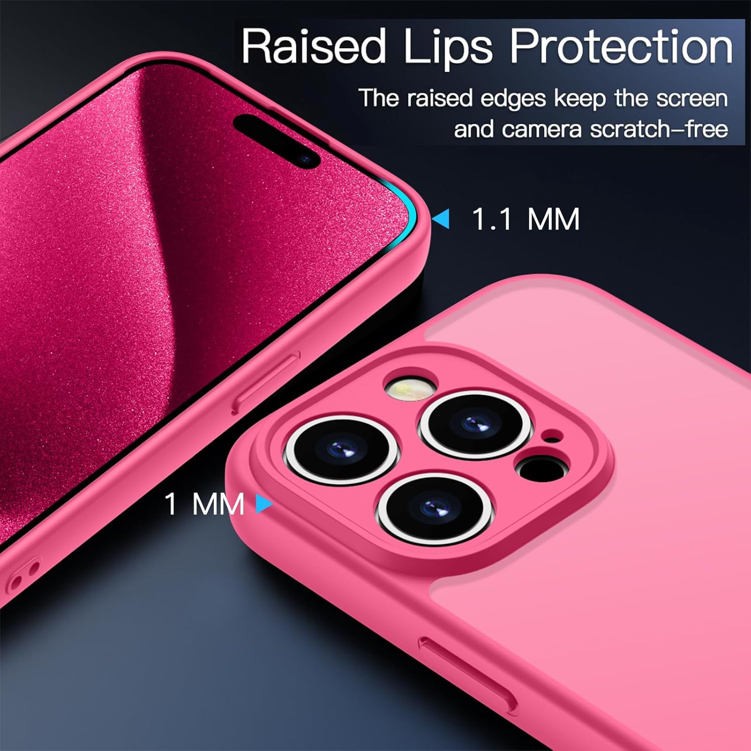 ORDA Кейс за iPhone 15 Pro, 6.1 инча, пълна защита на камерата, удароустойчив, устойчив на надраскване, прозрачен защитен калъф за гръб, матов калъф за мобилен телефон против пръстови отпечатъци за iPhone 15 Pro (ярко розов)