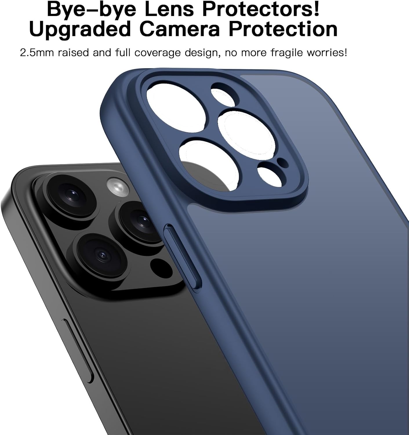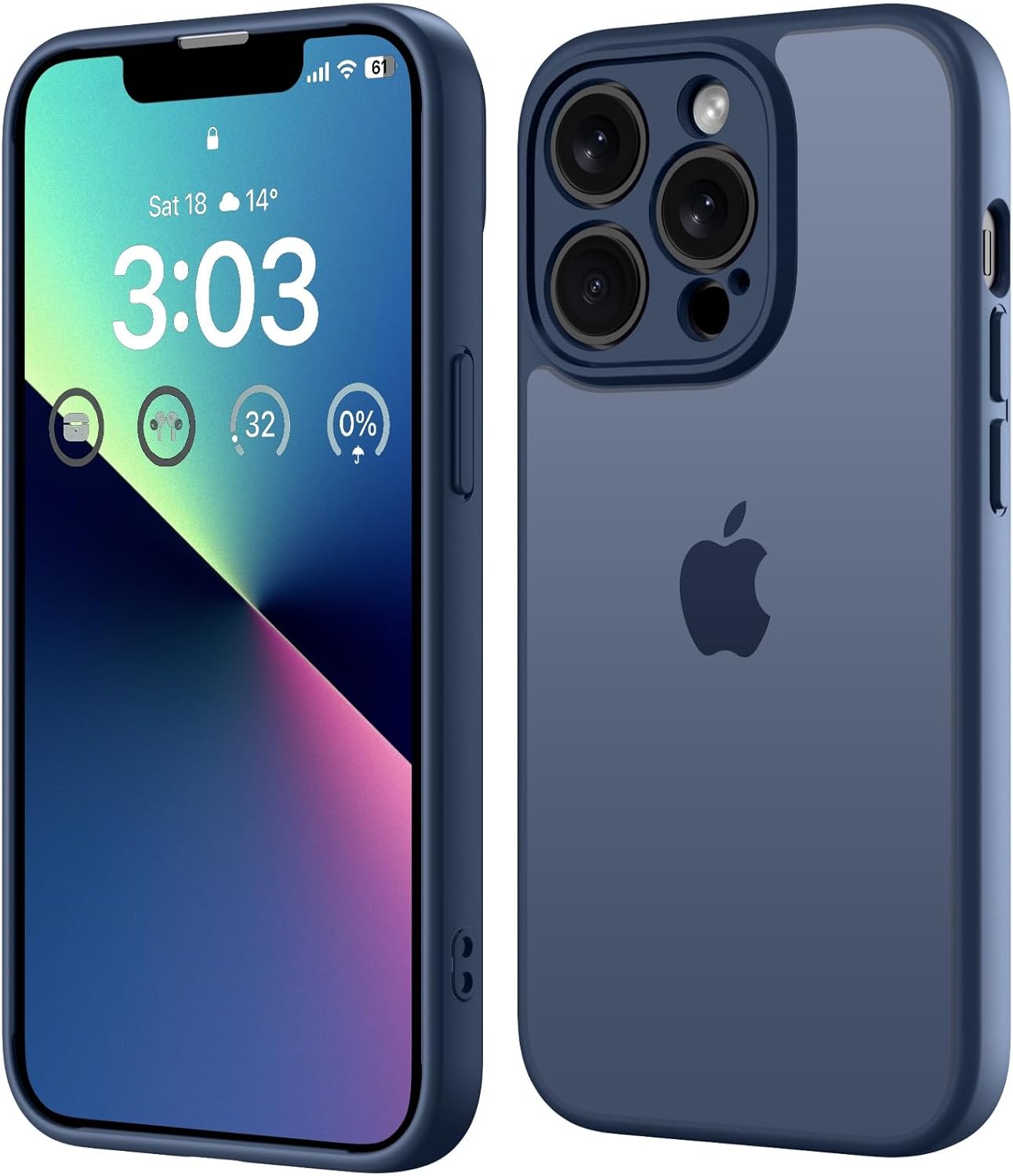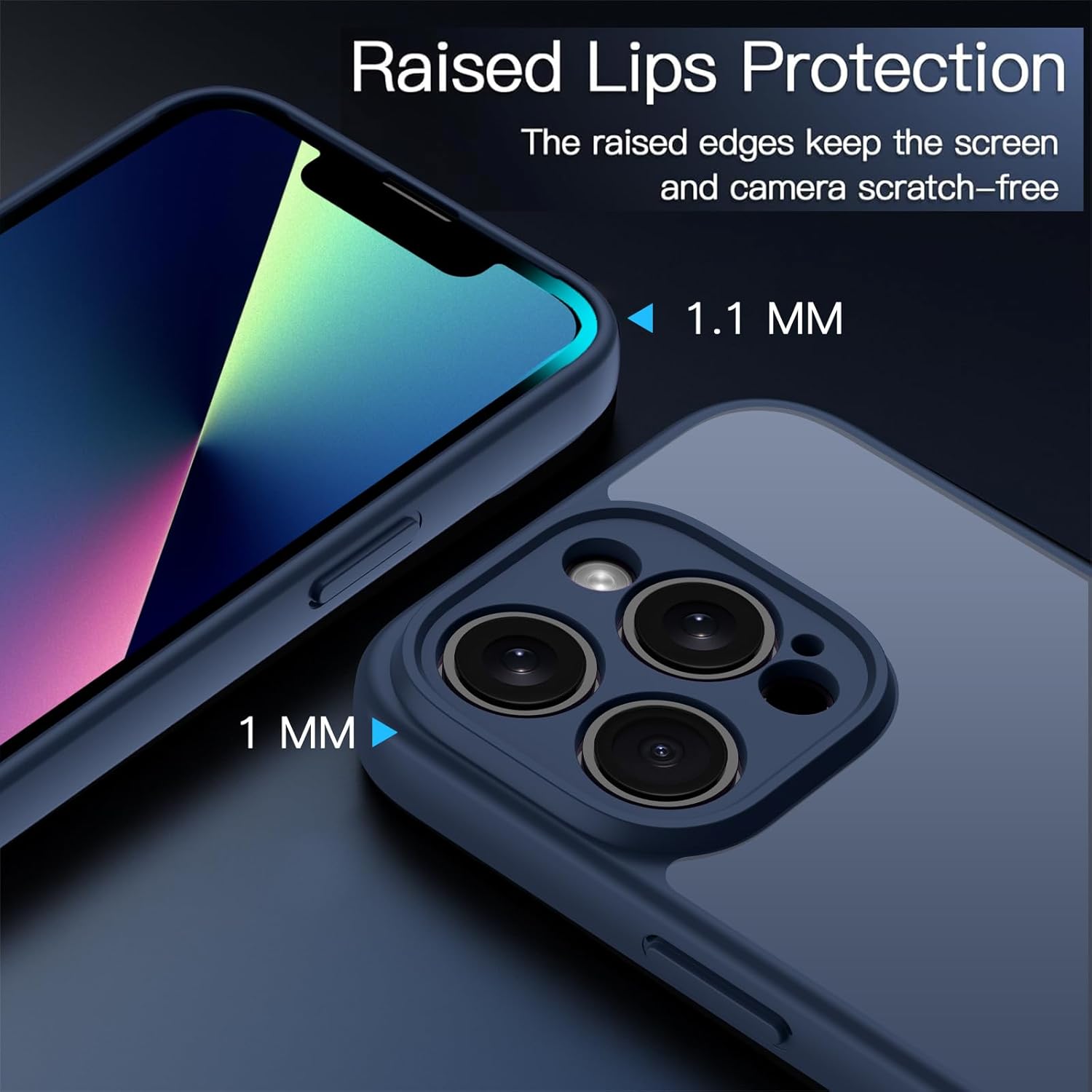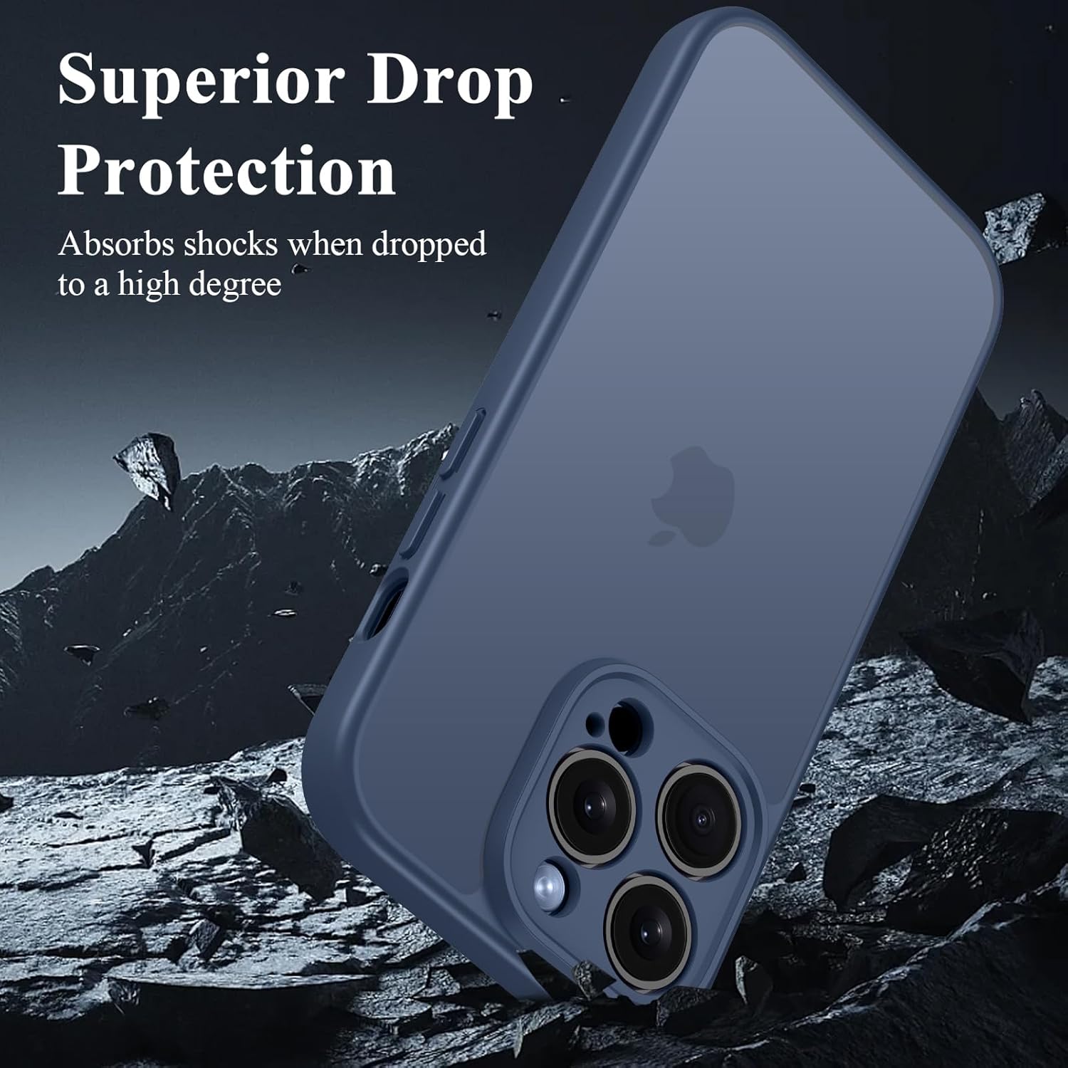 ORDA Матов калъф за iPhone 13 Pro Max 6.7 инча, пълна защита на камерата, удароустойчив, устойчив на надраскване, прозрачен защитен калъф, прозрачен защитен калъф за гръб против пръстови отпечатъци (тъмносин)