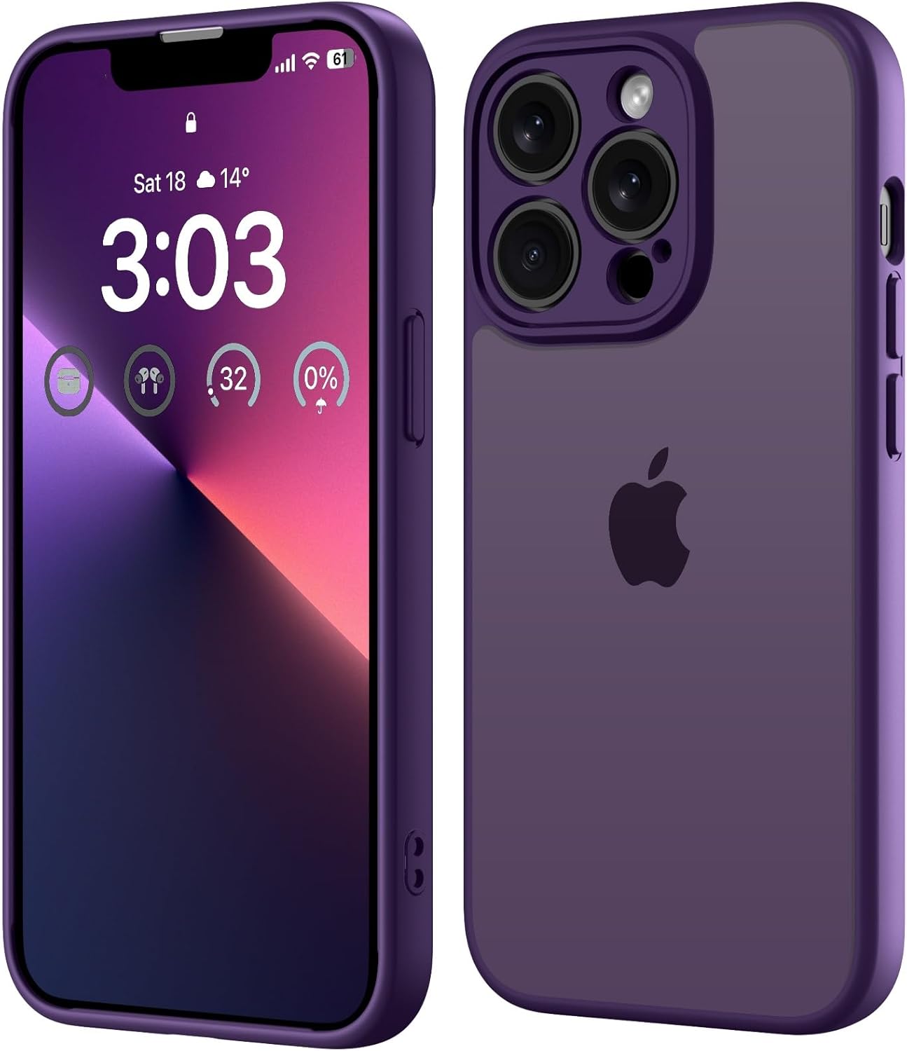 ORDA Матов Кейс за iPhone 13 Pro Max 6.7 инча, Пълна защита на камерата, Удароустойчив, Устойчив на надраскване, Прозрачен защитен Кейс, Прозрачен защитен Кейс на гърба против пръстови отпечатъци (Тъмно лилав)