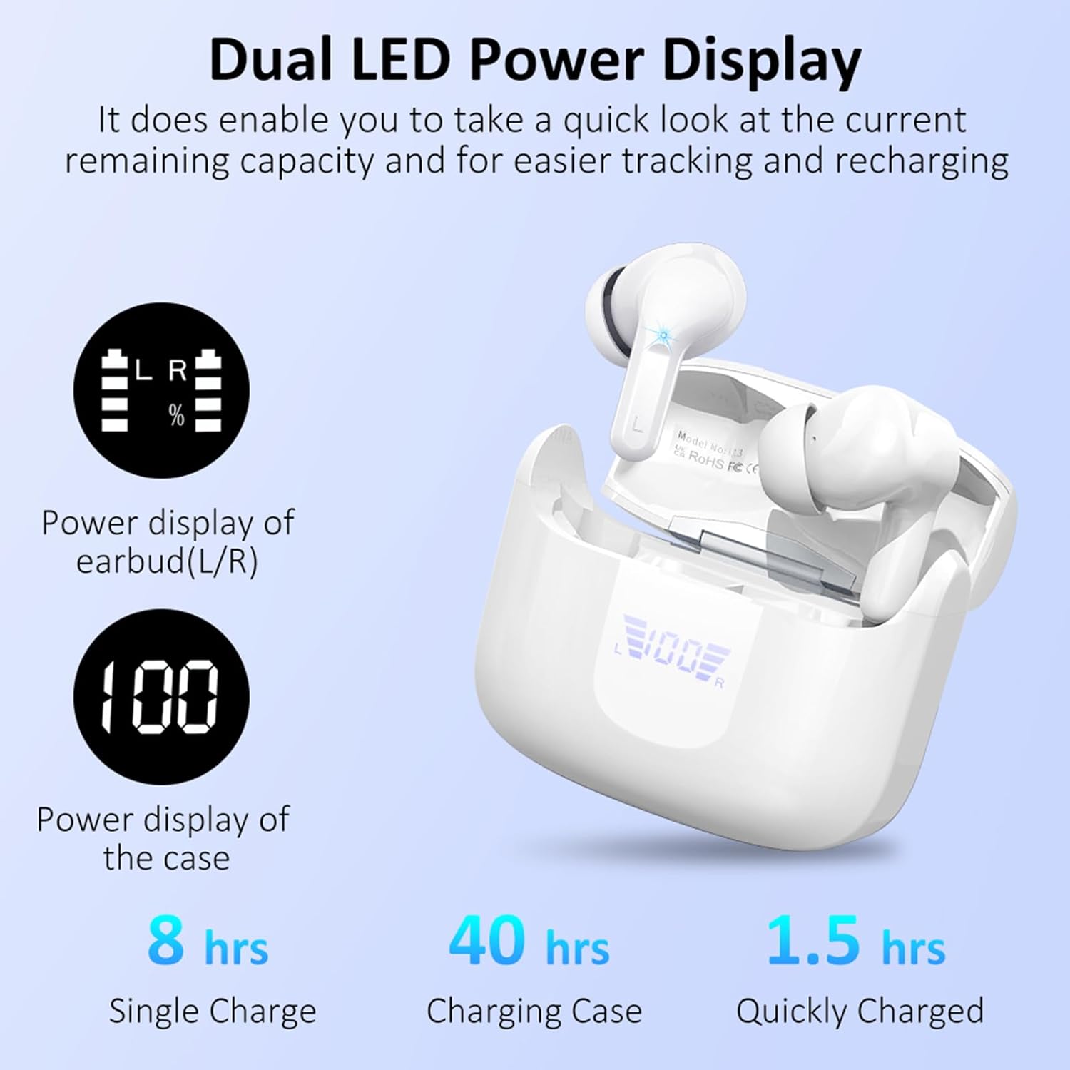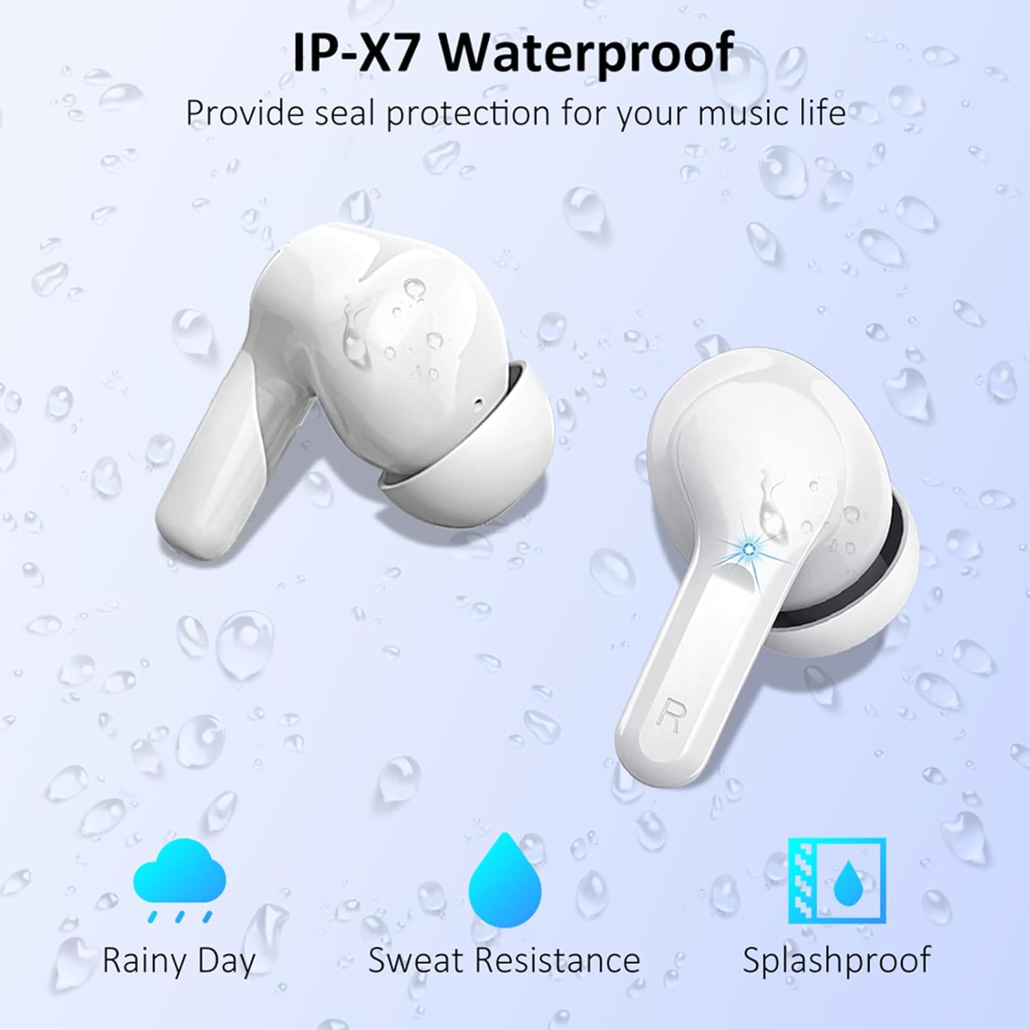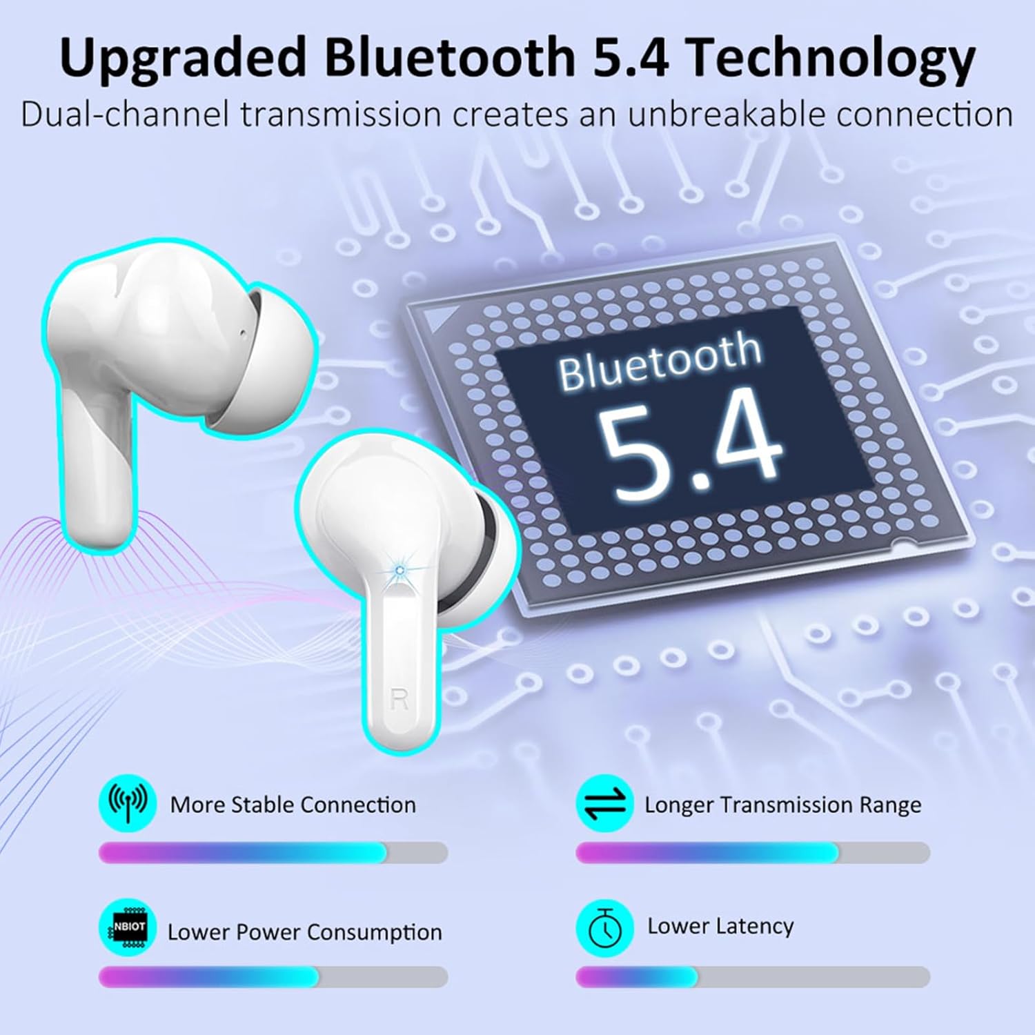 Ordtop Безжични Bluetooth 5.4 слушалки, 50 часа 3D стерео Bluetooth слушалки, 4 ENC микрофон за шумопотискане, безжични слушалки с дълбок бас, IP-X7 водоустойчиви USB-C слушалки за уши, спортни и фитнес зали