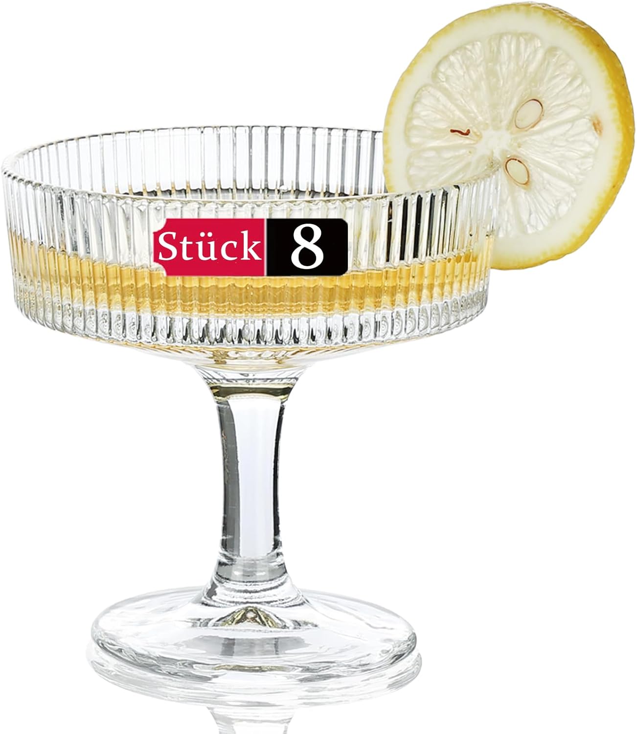 • 【Професионален комплект от 8 части】Винтидж чаши за коктейли 207 мл | Височина 10,9 см × Ширина 10,7 см | Идеални за еспресо мартини, старомодно кафе и уиски