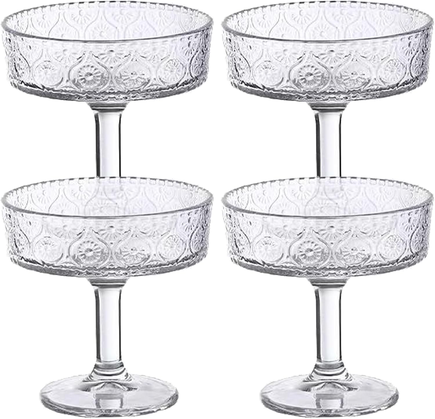 Оребрени чаши тип купе, комплект от 4 | Чаши за мартини | Винтидж чаши за коктейли, 20 cl