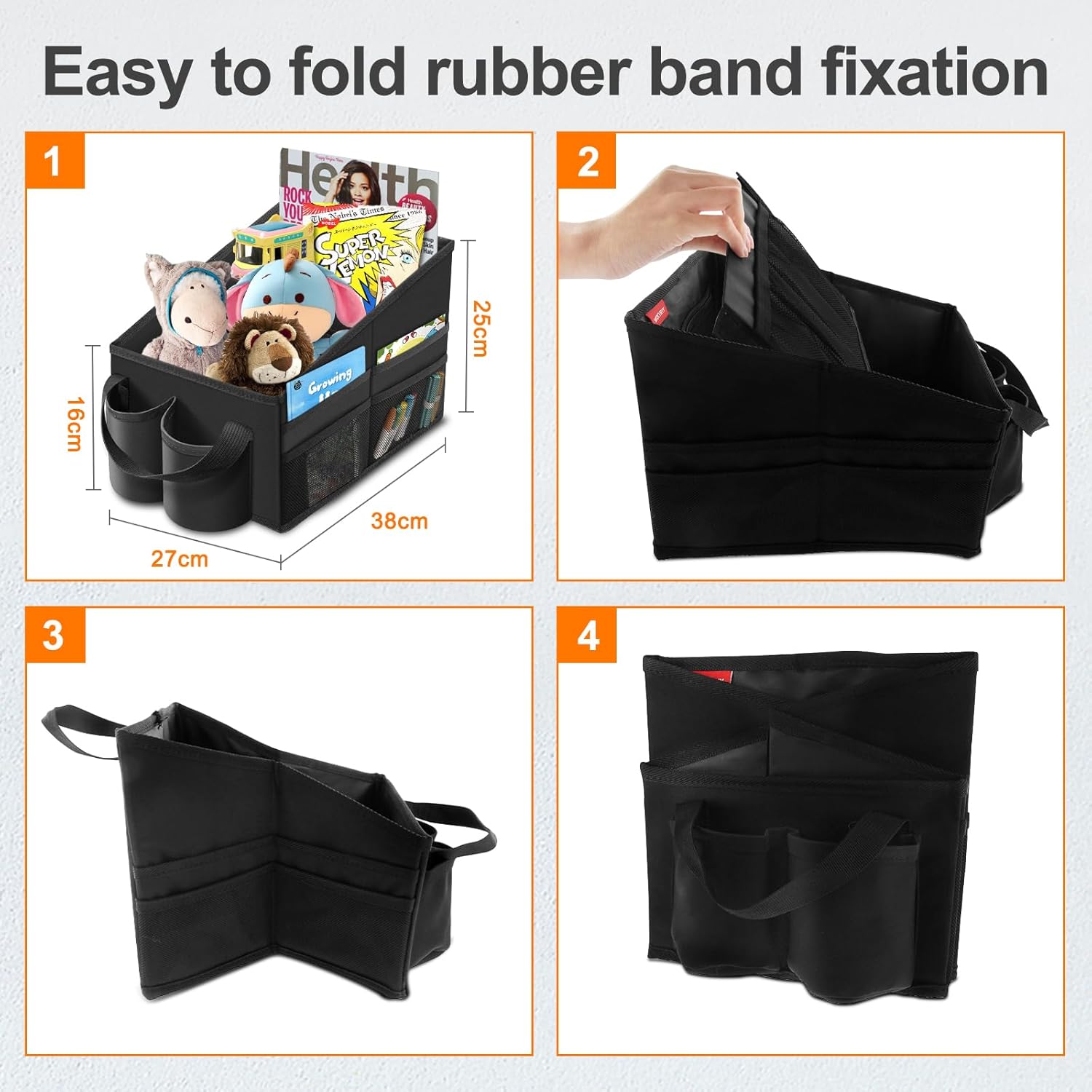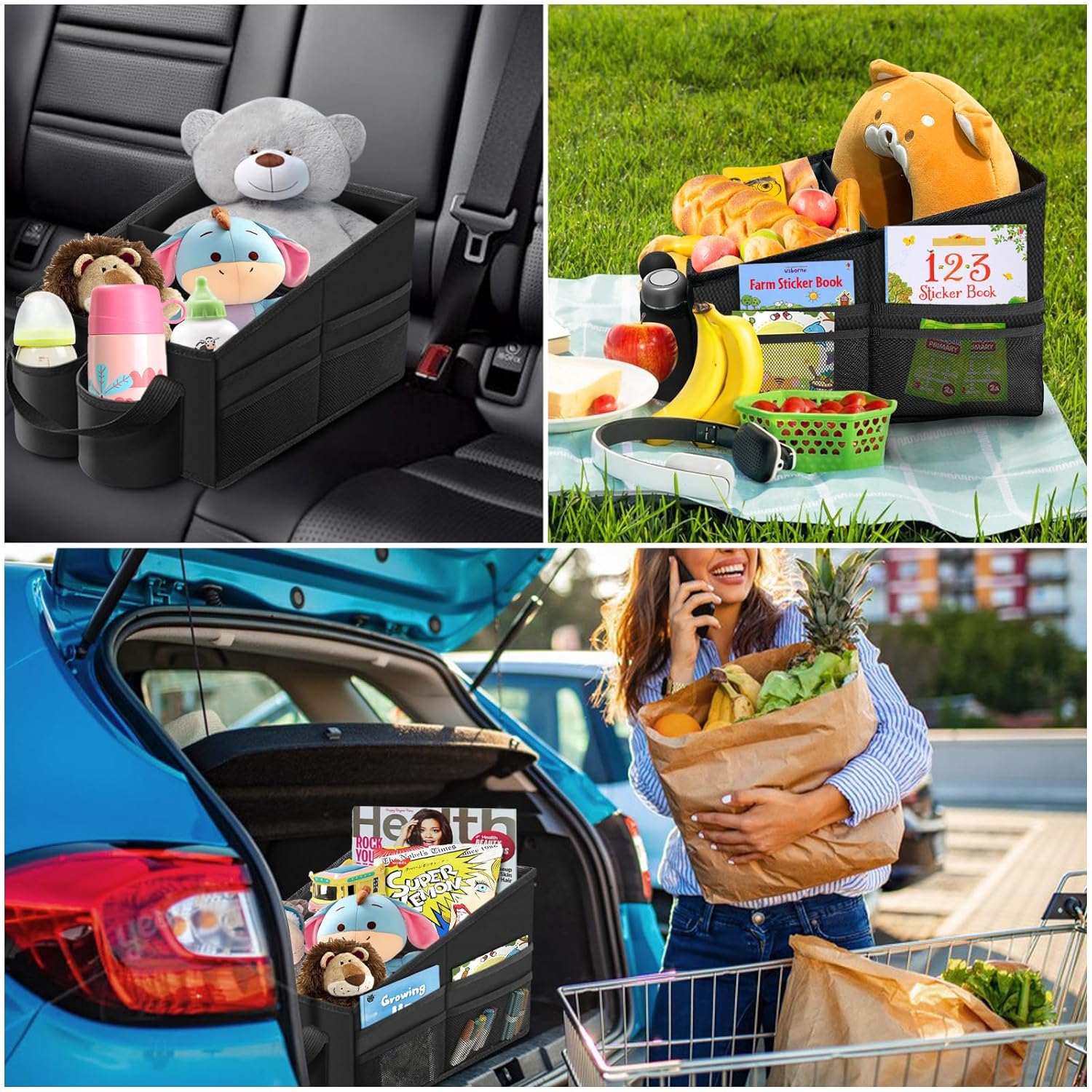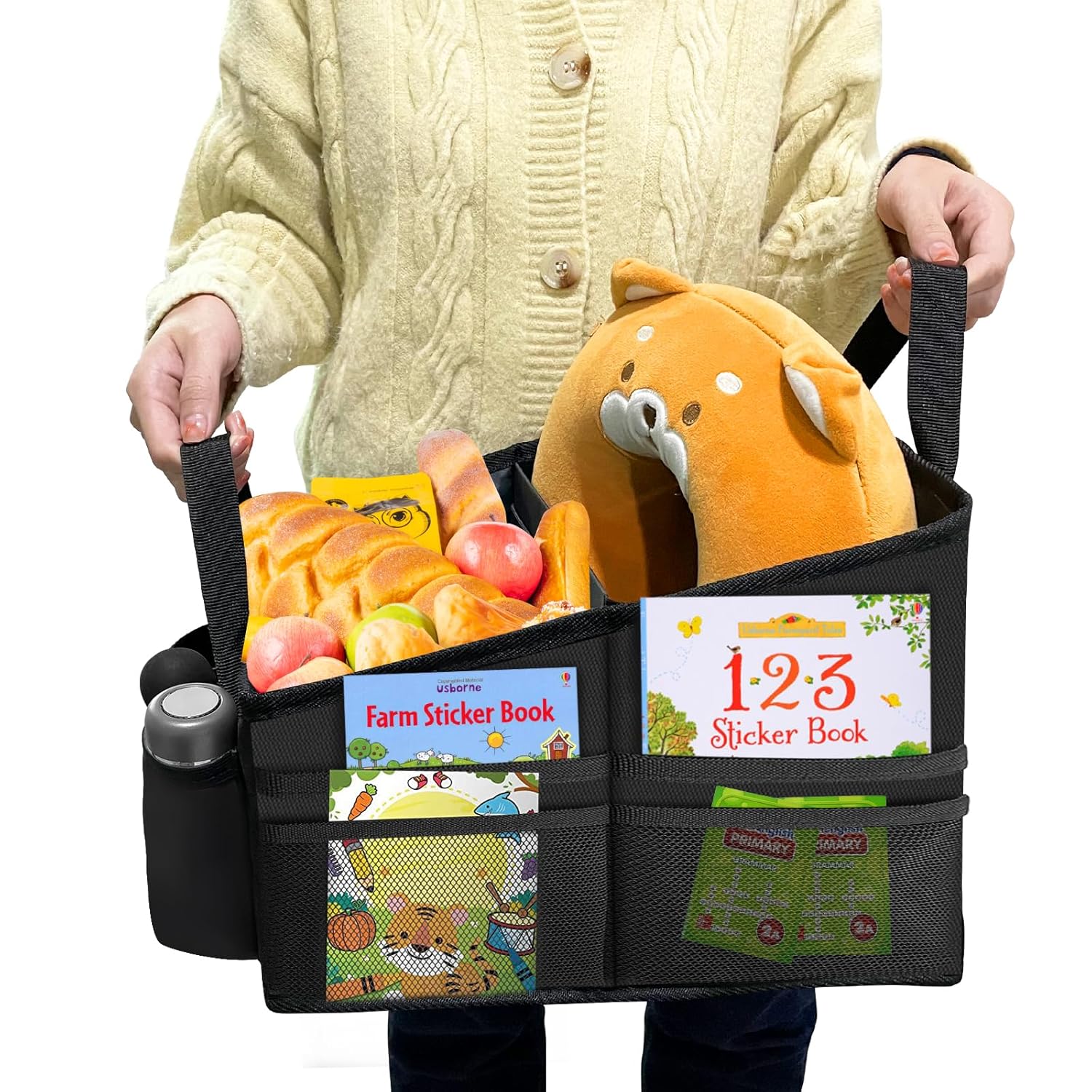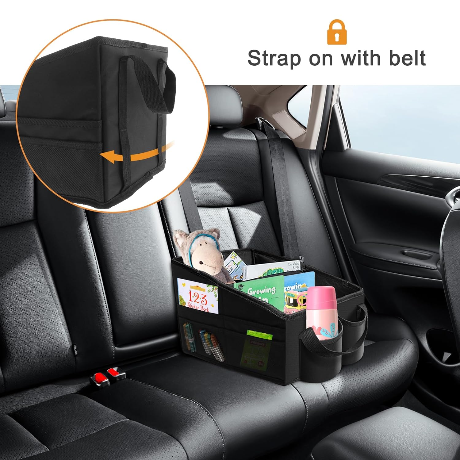 - This car organiser is also suitable for mounting in the middle of the back seat of your car or on the side near the child seat and can be used to store children's items such as baby items, toys, snacks, cups, bottles, tissues, nappies, etc. This makes it easy to find what you are looking for.