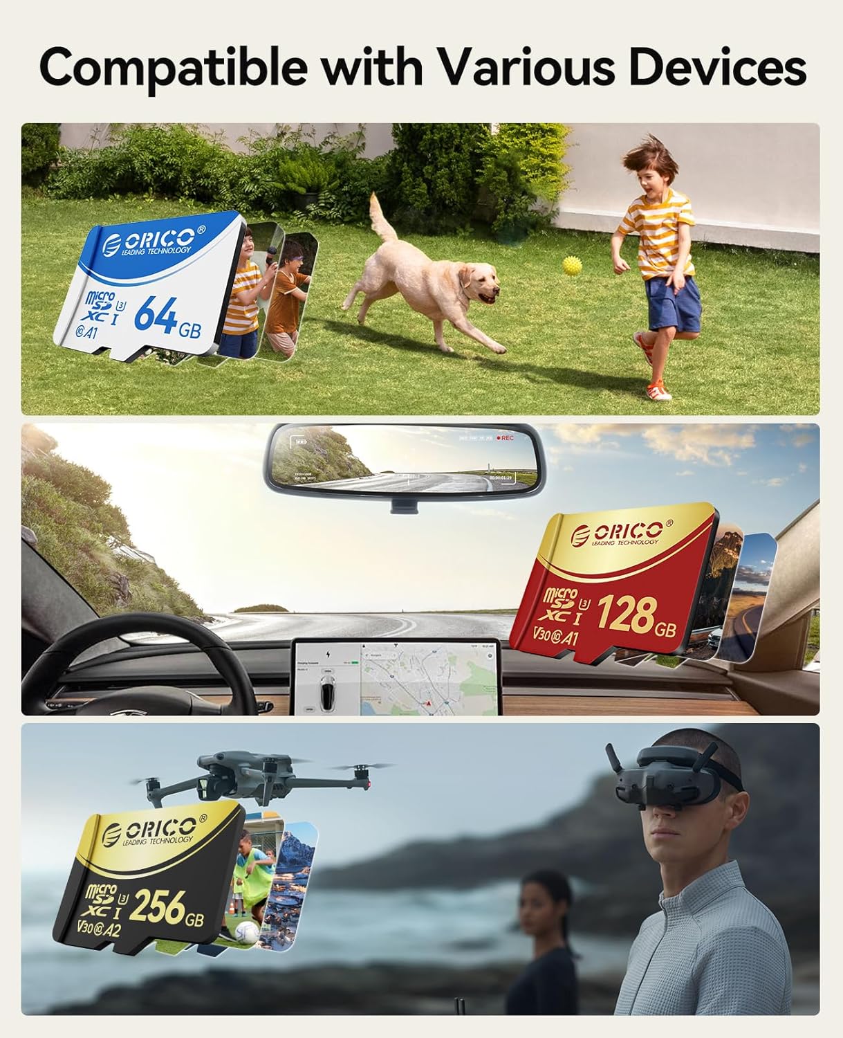 ORICO F3 128GB microSDXC UHS-I карта памет 100MB/s 4K UHD запис U3 Class10 V30 A1 Micro SD за екшън камера за видеорегистратор TF карта