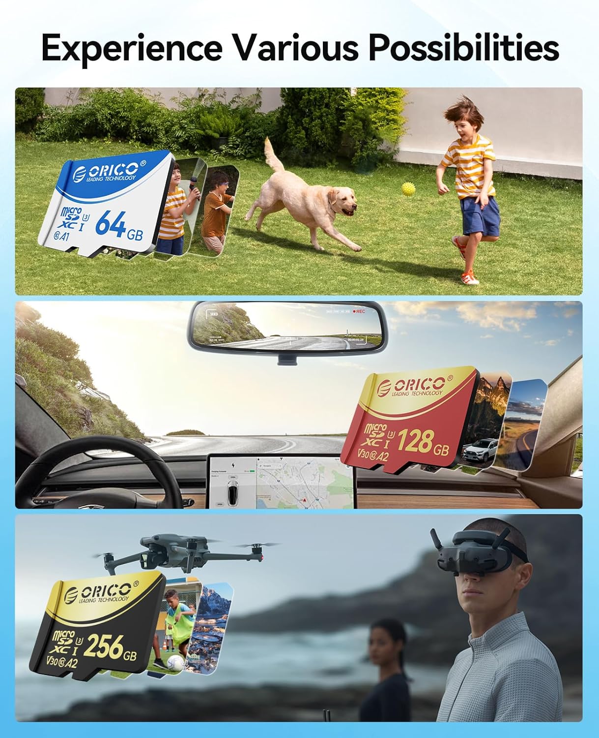 • ИДЕАЛНА ЗА ПРИКЛЮЧЕНСКИ СПОРТОВЕ Нашата Micro SD карта е специално разработена за екшън камери, което я прави идеална за заснемане на моменти с високо натоварване по време на дейности като ски, спускане с колело и колоездене.