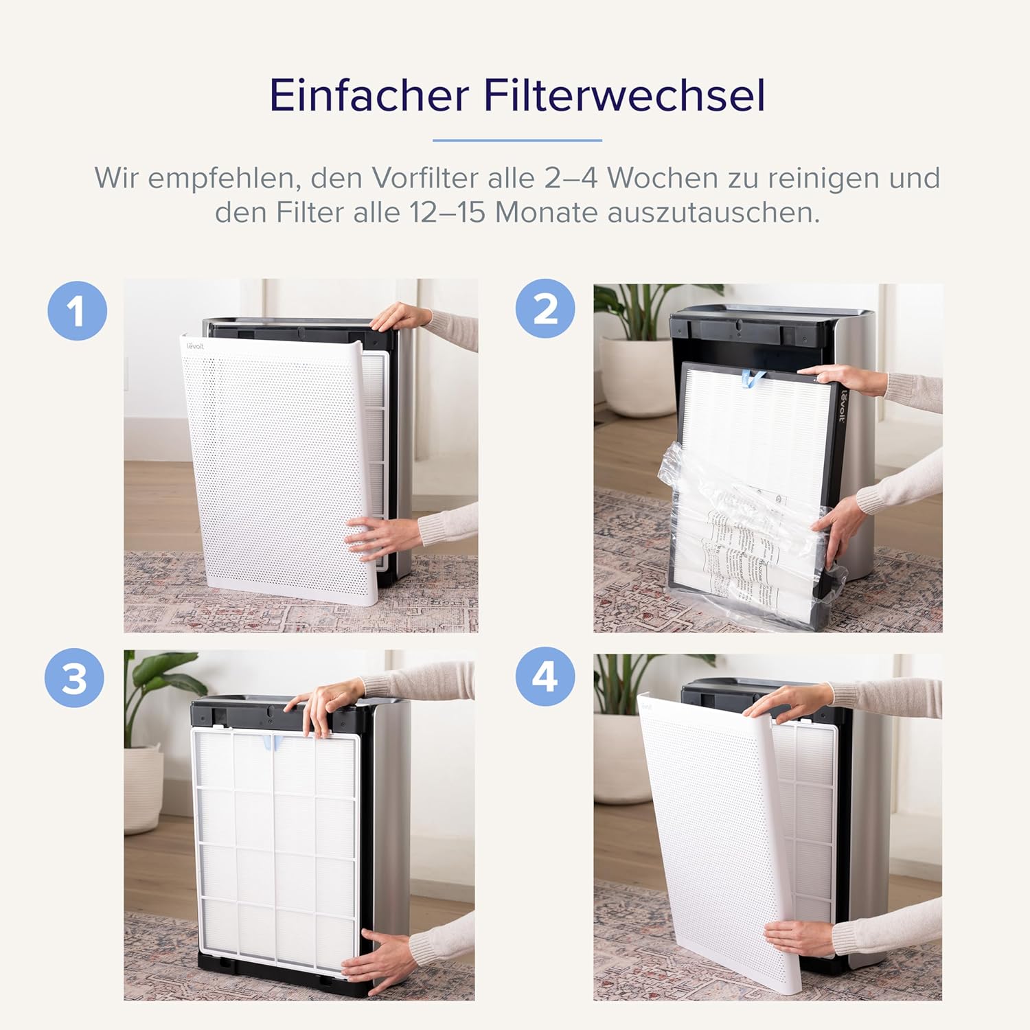 • Забележка: Само използването на официални резервни филтри Levoit LV-400S-RF може да поддържа производителността на вашия пречиствател на въздух. Резервните филтри от други продавачи са несъвместими с пречиствателите на въздух Levoit и могат да причинят повреда на устройството.