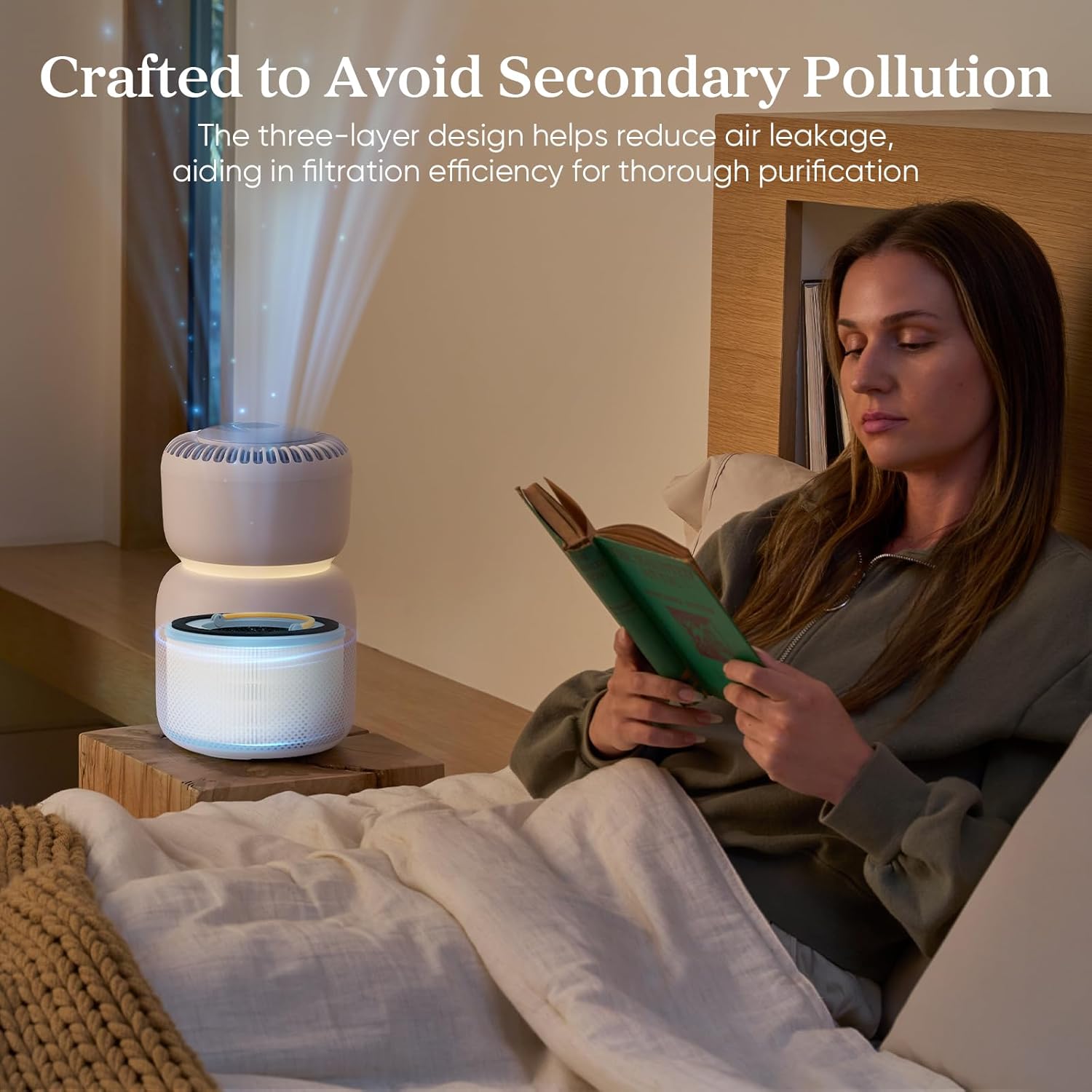 • 3 нива на филтрация: Състои се от фин предфилтър, H13 HEPA филтър и филтър с активен въглен. Премахва 99,97% прах, полени, дим, миризми и косми от домашни любимци. Филтрира също частици с размер до 0,3 микрона и филтрира замърсяването на въздуха от PM 2,5. Идеален за страдащи от алергии, астматици, собственици на домашни любимци, пушачи и деца.