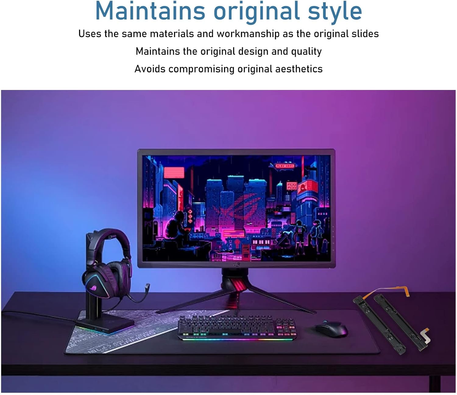 5. Оригинален дизайн Плъзгащата релса на игровия контролер използва същия материал и процес като оригиналната плъзгаща релса, запазвайки оригиналния дизайн и качество и не засягайки оригиналната естетика.