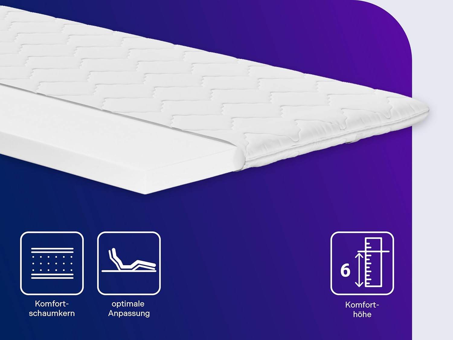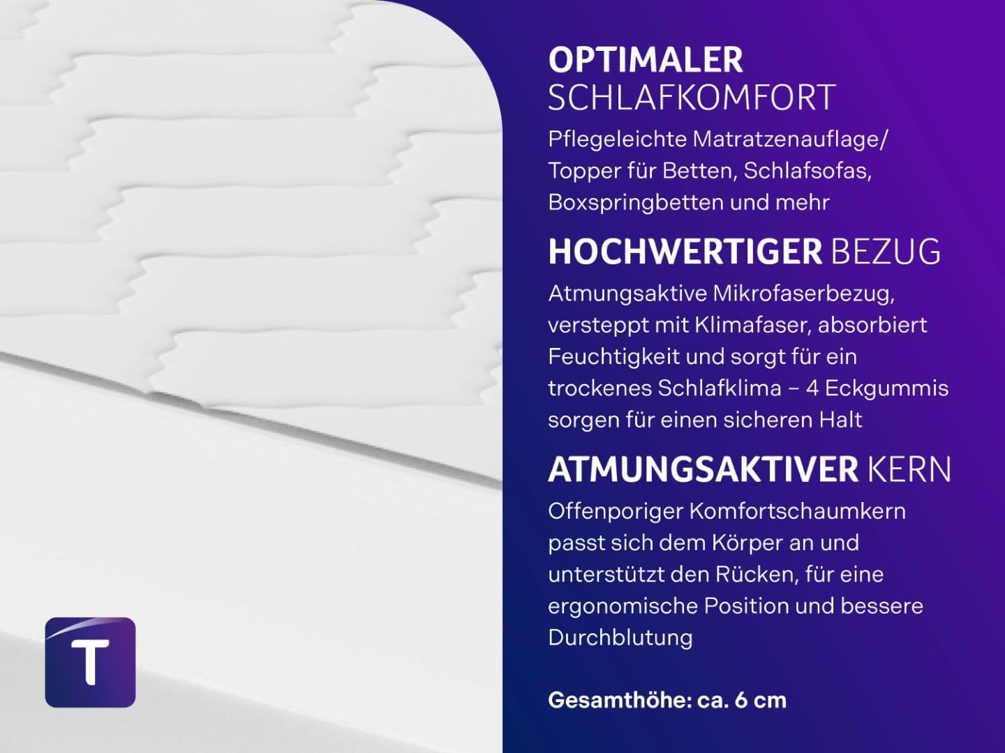• Оптимален комфорт при сън - лесен за поддръжка топ матрак/топер за легла, разтегателни дивани, легла с пружинни елементи и други - обща височина: приблизително 6 см.