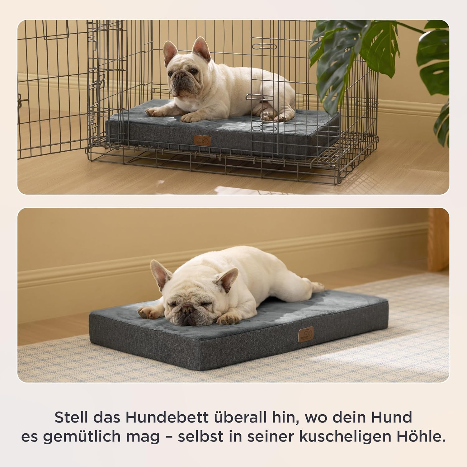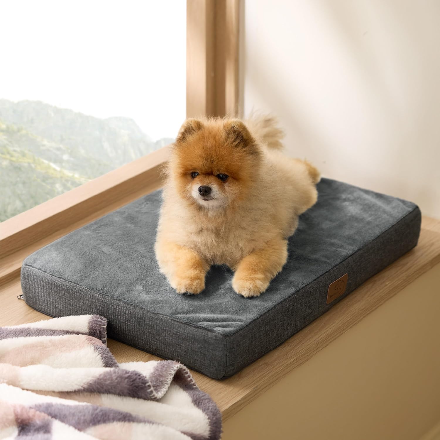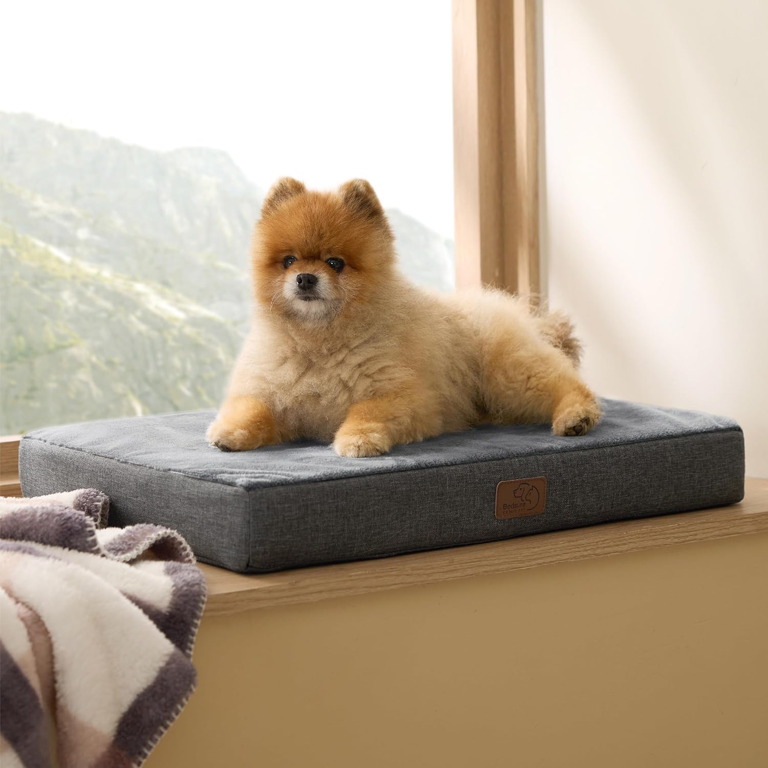 Ортопедична възглавница за кучета Bedsure, малко пухкаво легло за кучета, перащо се с мемори пяна, мека къщичка за кучета с размер 60 x 40 x 8 см, сива
