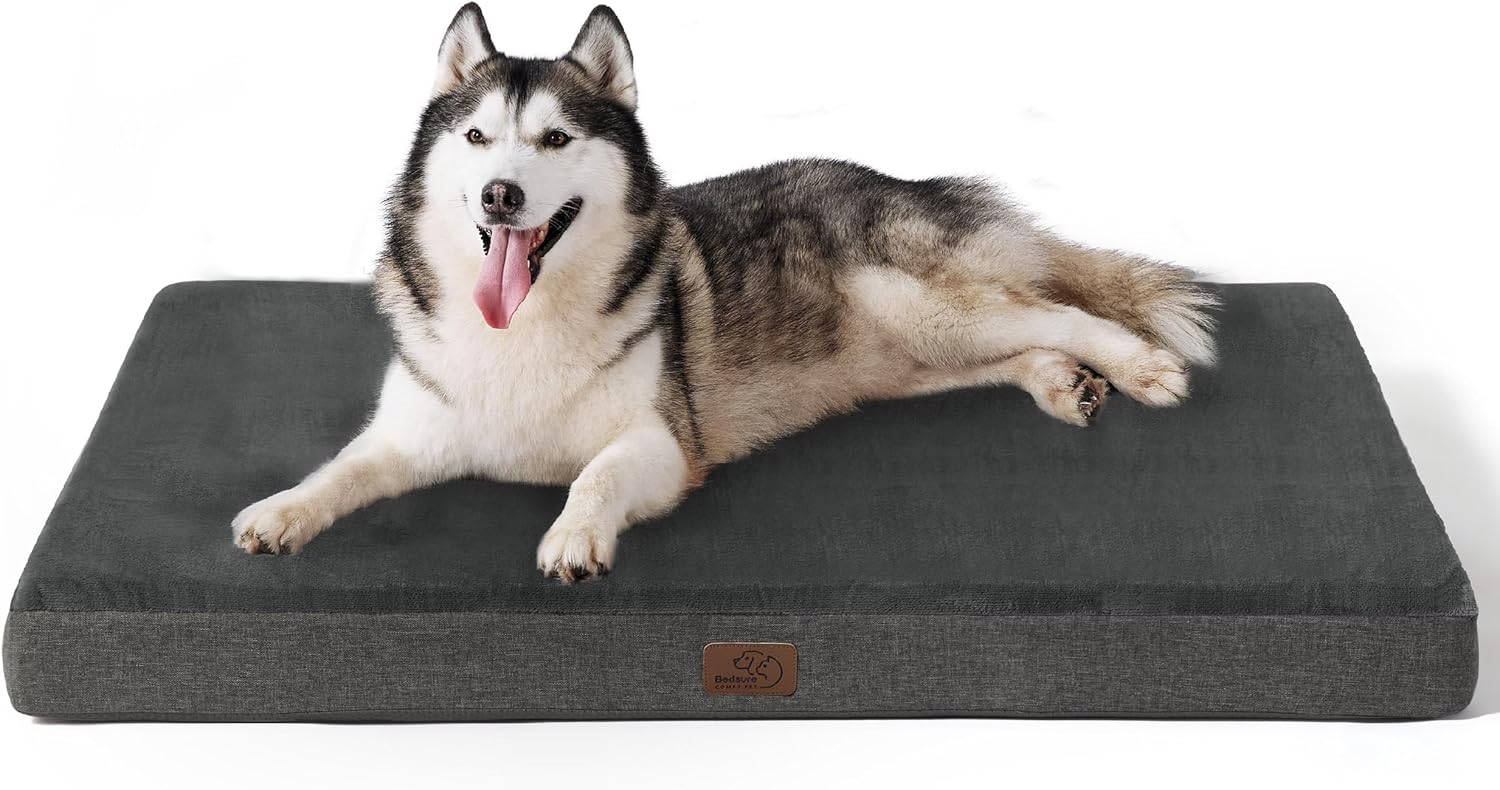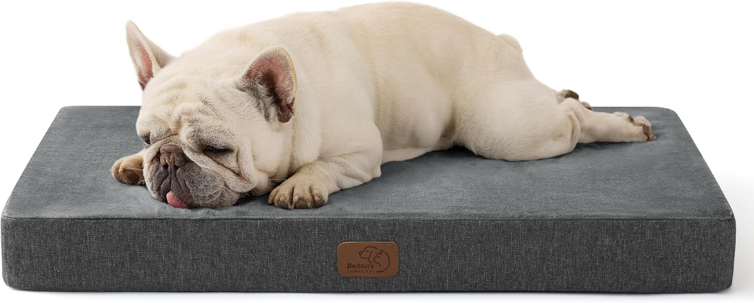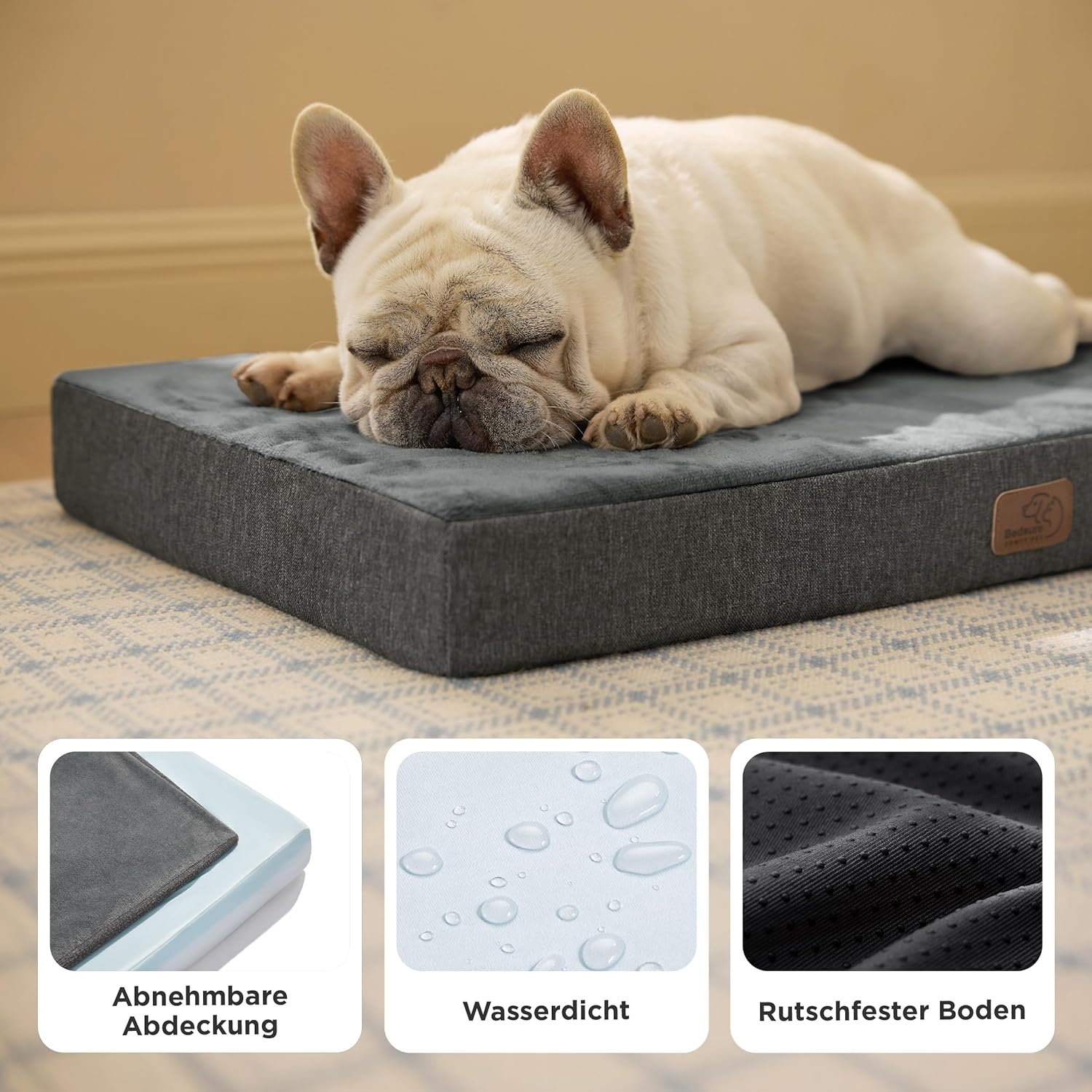 Ортопедична възглавница за кучета Bedsure, средно пухкаво легло за кучета, може да се пере с мемори пяна, пухкава къщичка за кучета с размер 70 x 45 x 8 см, сива