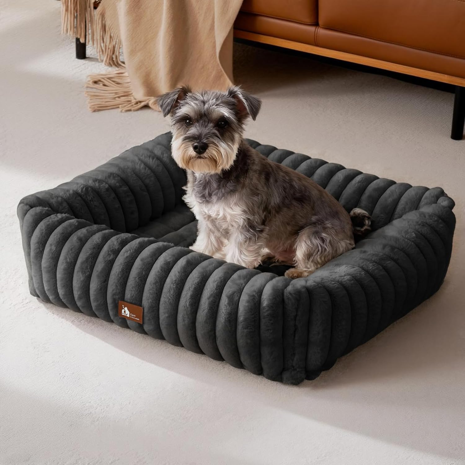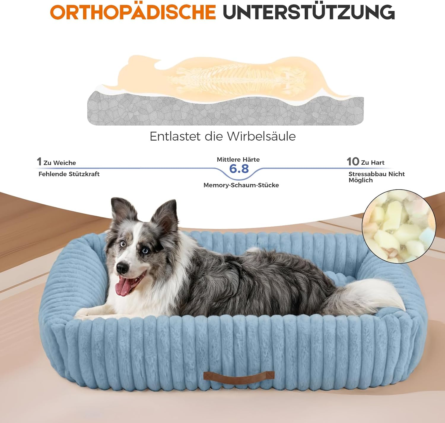 • ЧЕТИРИСТРАННА ВЪЗГЛАВНИЦА И СТАБИЛНОСТ Четирите странични възглавници и седалката на това кучешко легло са пълни с висококачествени парчета мемори пяна. Общото тегло е увеличено до 4,4 кг за перфектна стабилност. Поддържа главата и тялото, облекчава ставите, осигурява 360° сигурност, сякаш е в ръцете на майка.