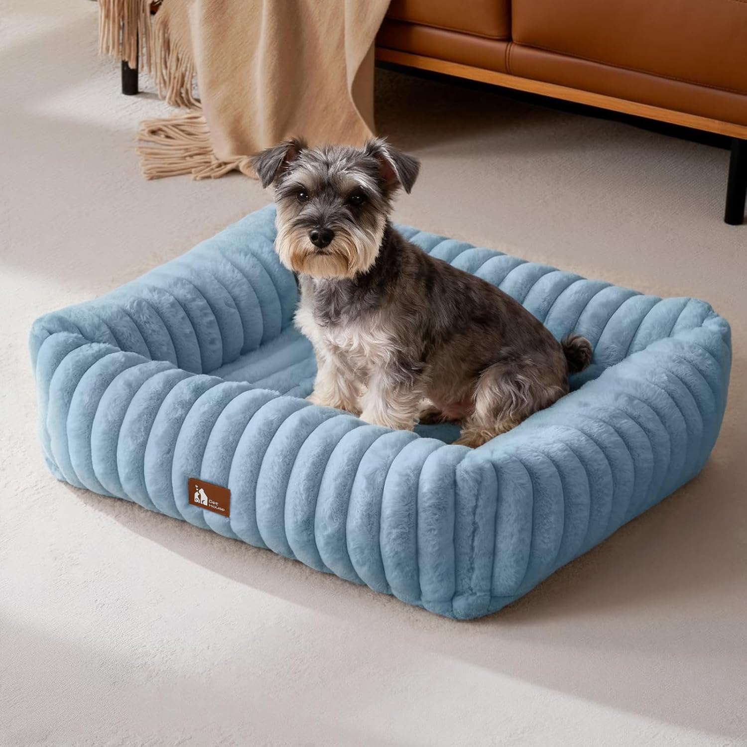 Ортопедично кадифено легло за кучета MP с висока възглавница, миещо се легло за кучета с неплъзгаща се долна страна (синьо, 76 x 61 x 20 см)