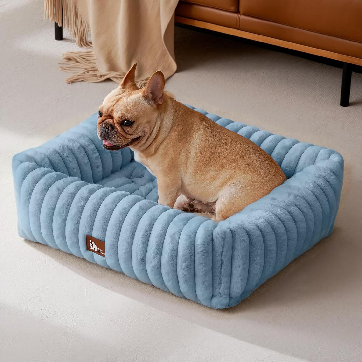 • ЛУКСОЗЕН МЕК МАТЕРИАЛ Мекият калъф на одеялото за кучешко легло е като пухкава истинска заешка кожа - запазва топлината и пухкавостта си. Кучетата обичат този пухкав комфорт - всяка почивка се превръща в удоволствие.