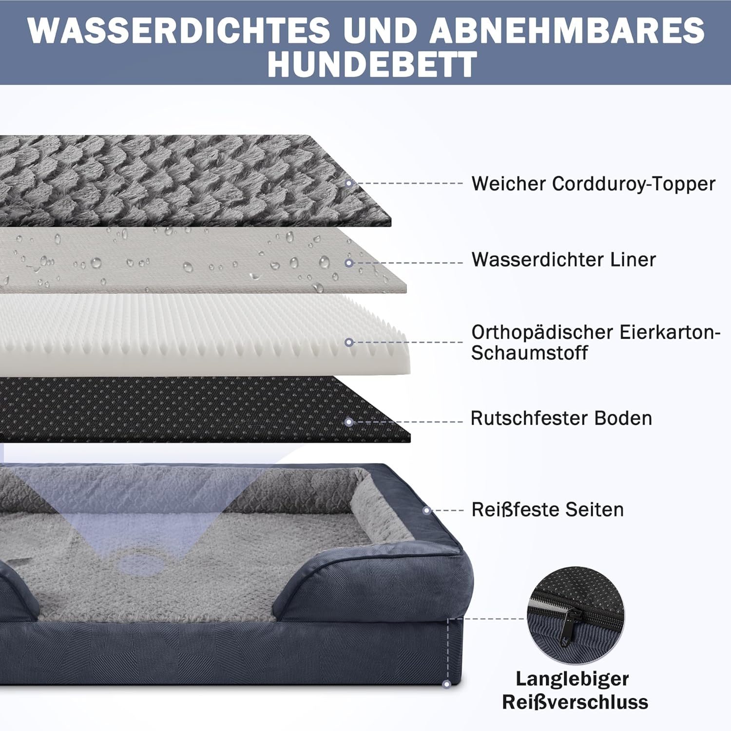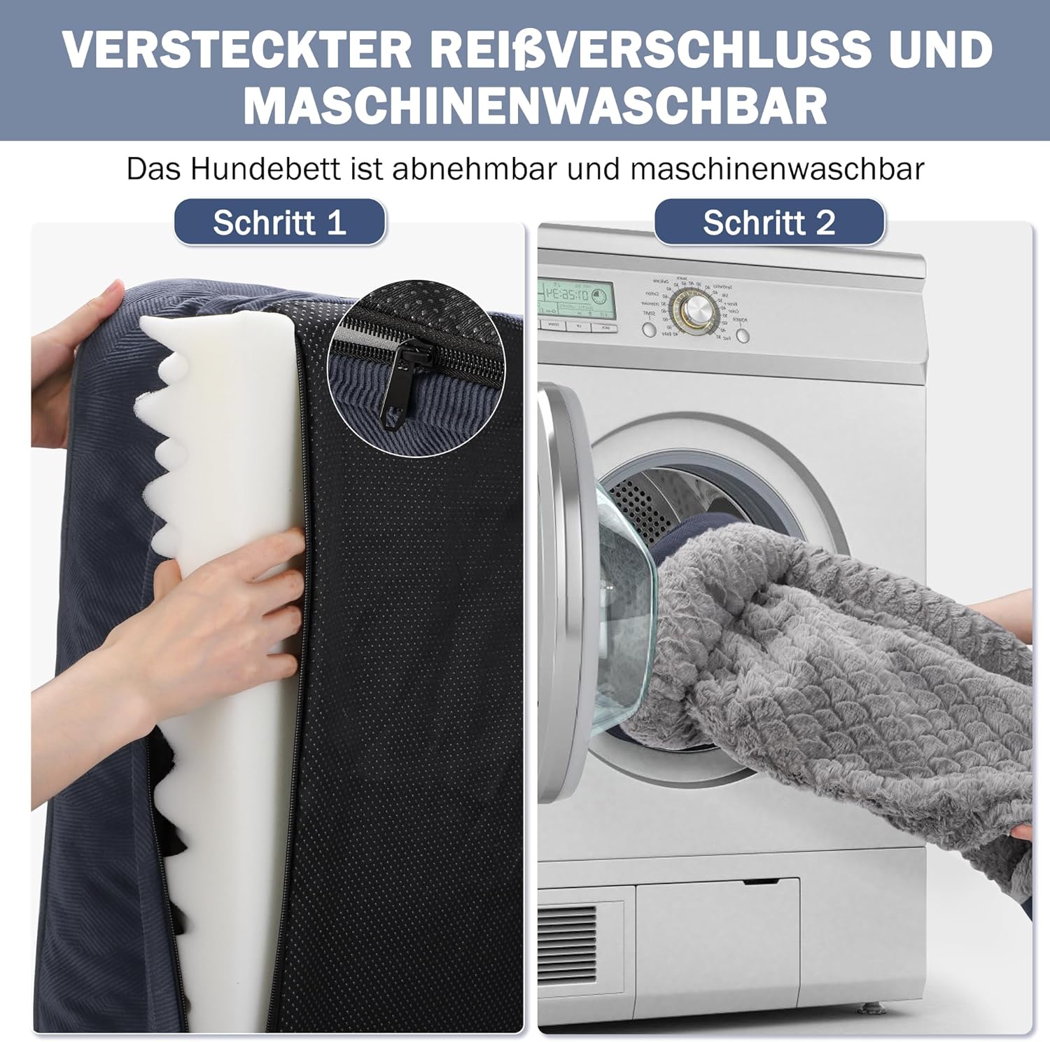• ВОДОУСТОЙЧИВО И ПЕРЕЩО СЕ КУЧЕШКО ЛЕГЛО Това кучешко легло има сваляем калъф с цип, който може да се пере в пералня. Просто го хвърлете в пералнята и е като ново. Водоустойчивото вътрешно покритие предпазва пяната от разливане, повреди от вода и инциденти и удължава експлоатационния живот.