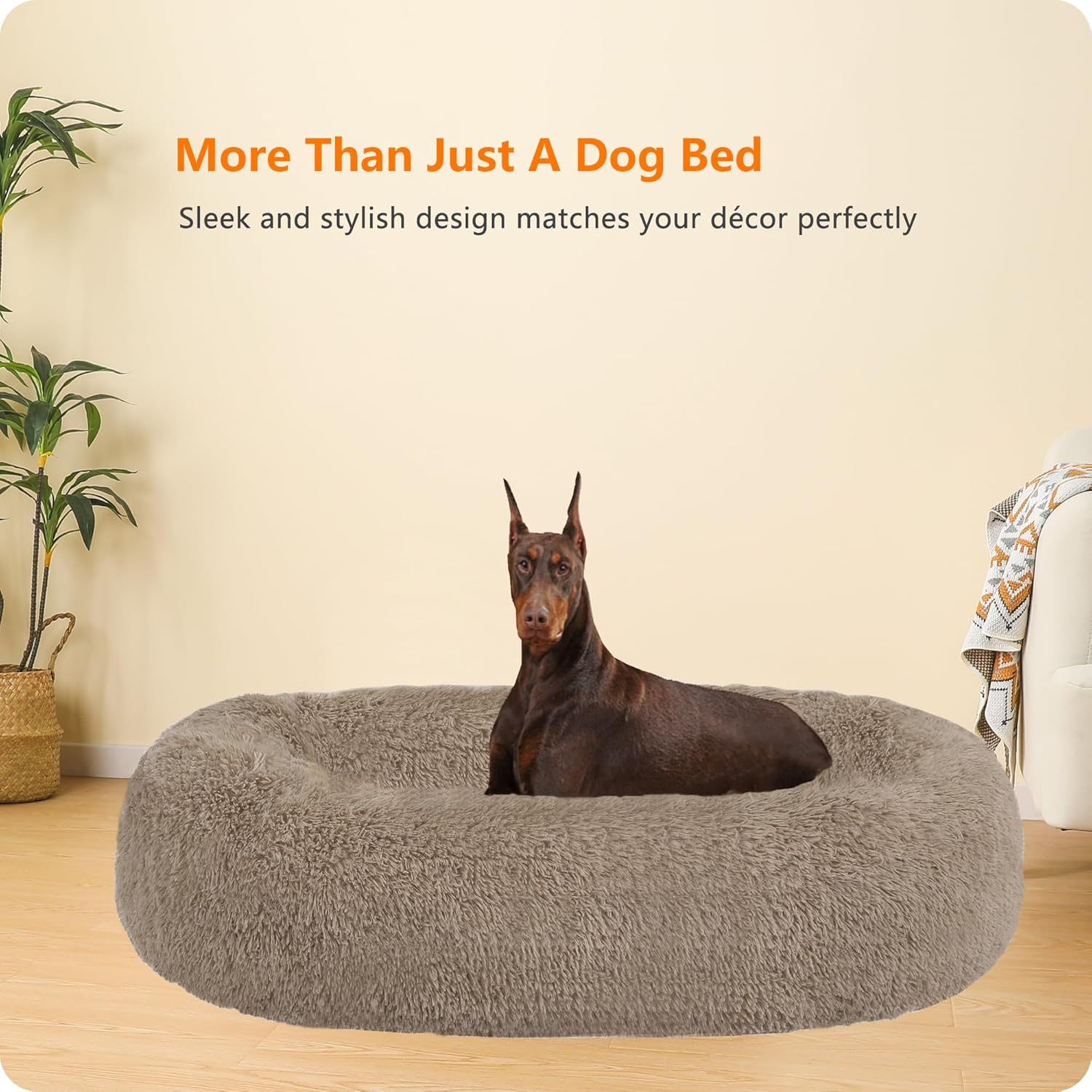 Ортопедично кучешко легло, кръгло кучешко легло, диван, котешко легло, поничка, пухкава кошница за кучета, пераща се, 120 см диаметър, камилокафяво