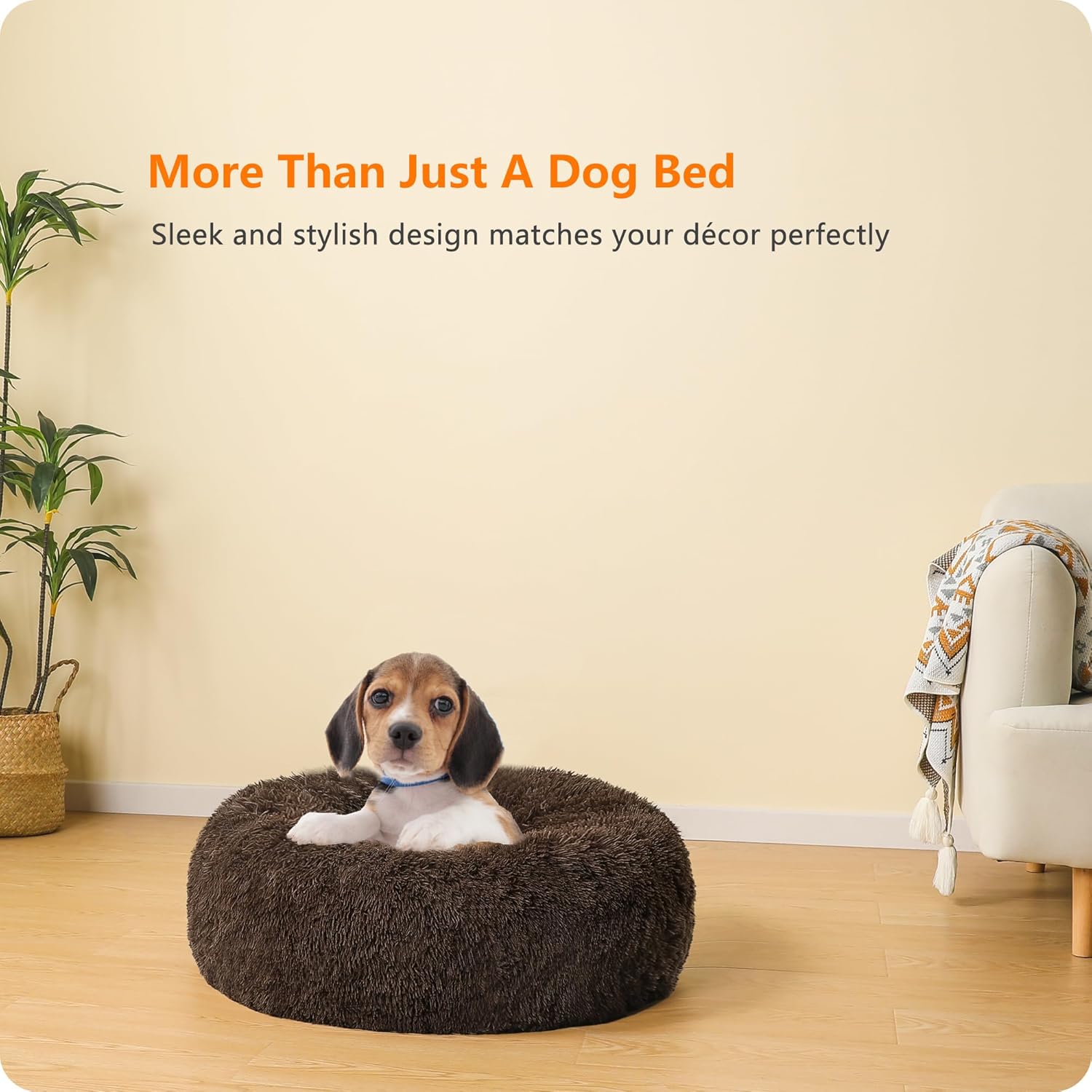 Ортопедично кучешко легло, кръгло кучешко легло, диван, котешко легло, поничка, пухкава кошница за кучета, пераща се, диаметър 60 см, кафяво