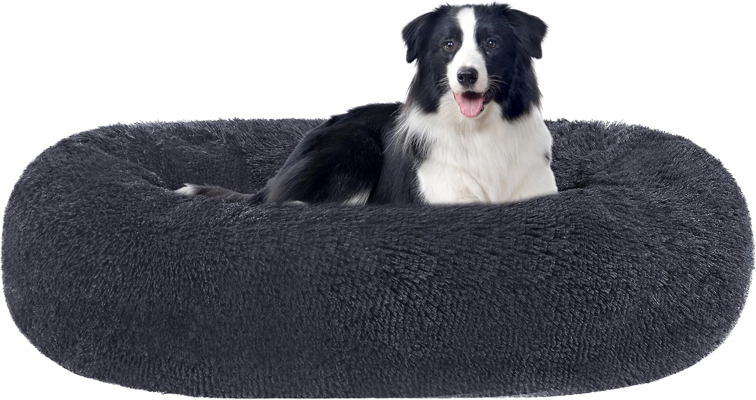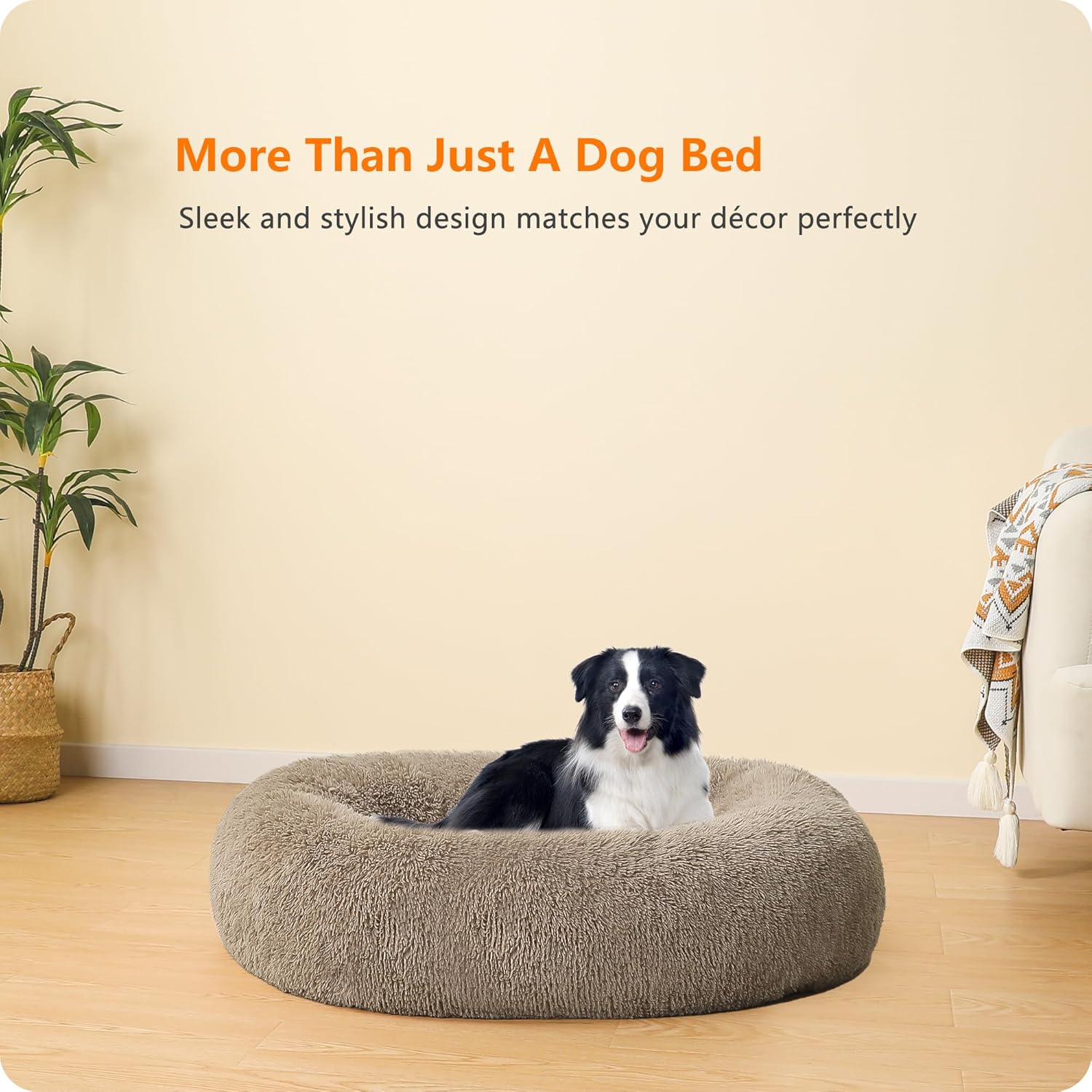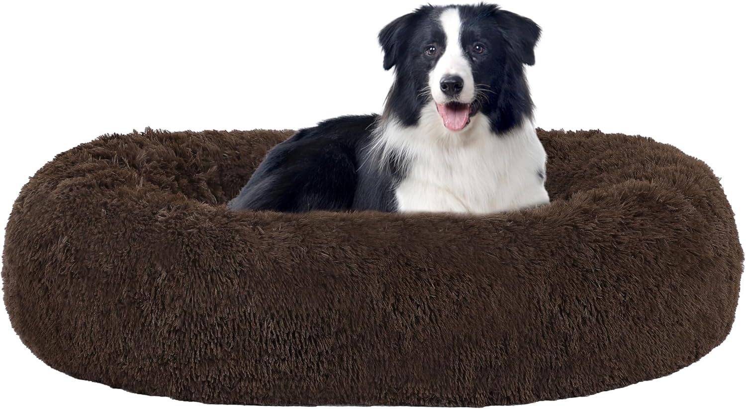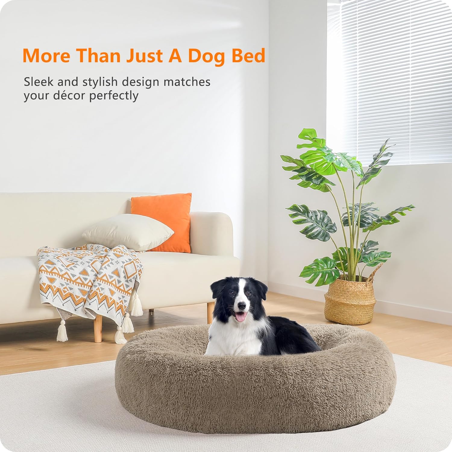 Ортопедично кучешко легло, кръгло кучешко легло, диван, котешко легло, поничка, пухкава кошница за кучета, пераща се, диаметър 90 см, камилокафяво