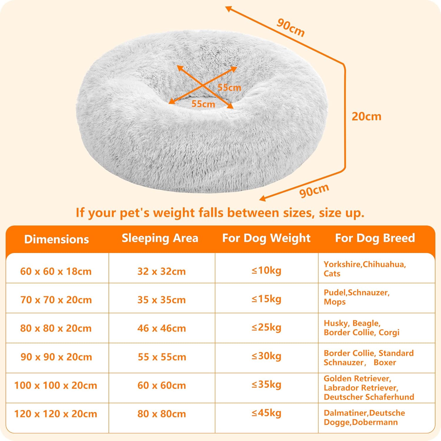 Ортопедично кучешко легло, кръгло кучешко легло, диван, котешко легло, поничка, пухкава кошница за кучета, пераща се, диаметър 90 см, светло сиво