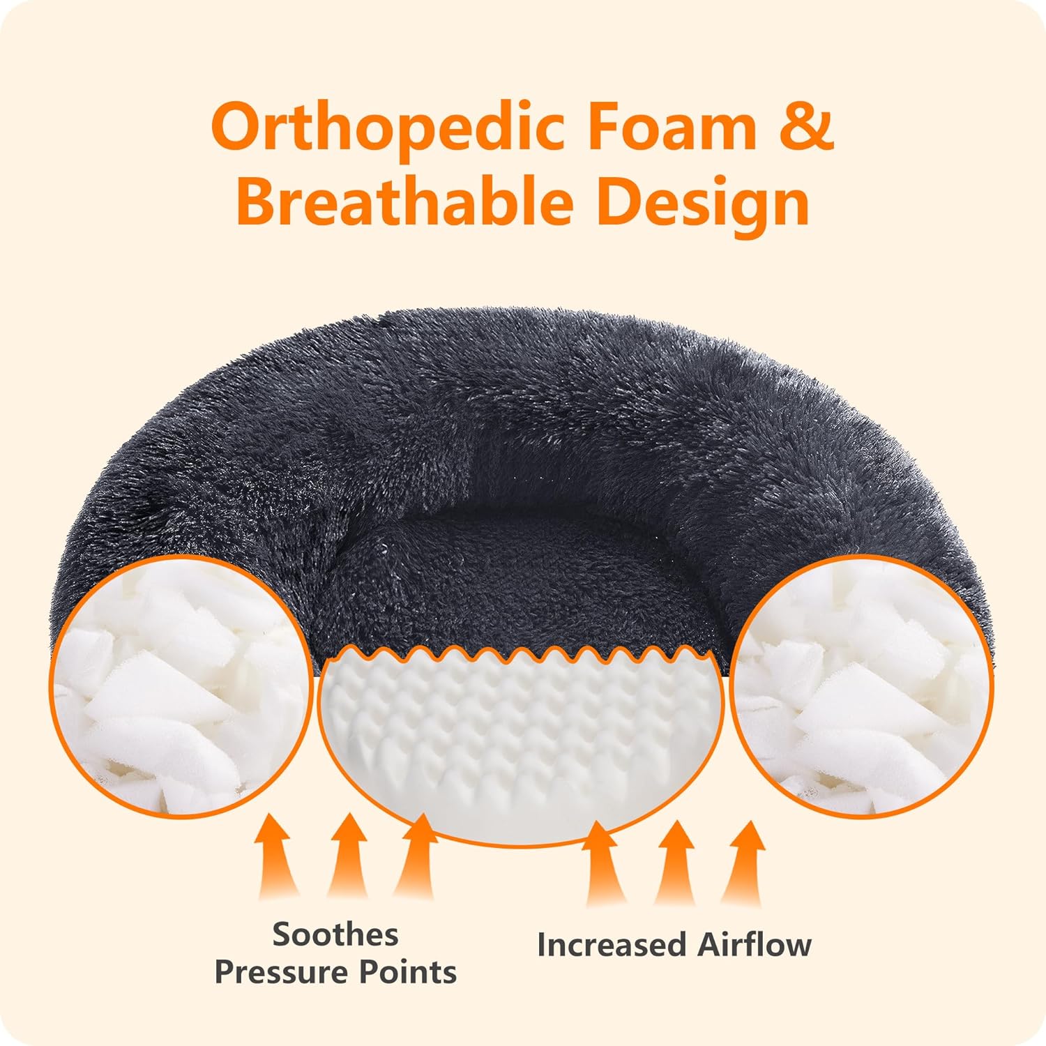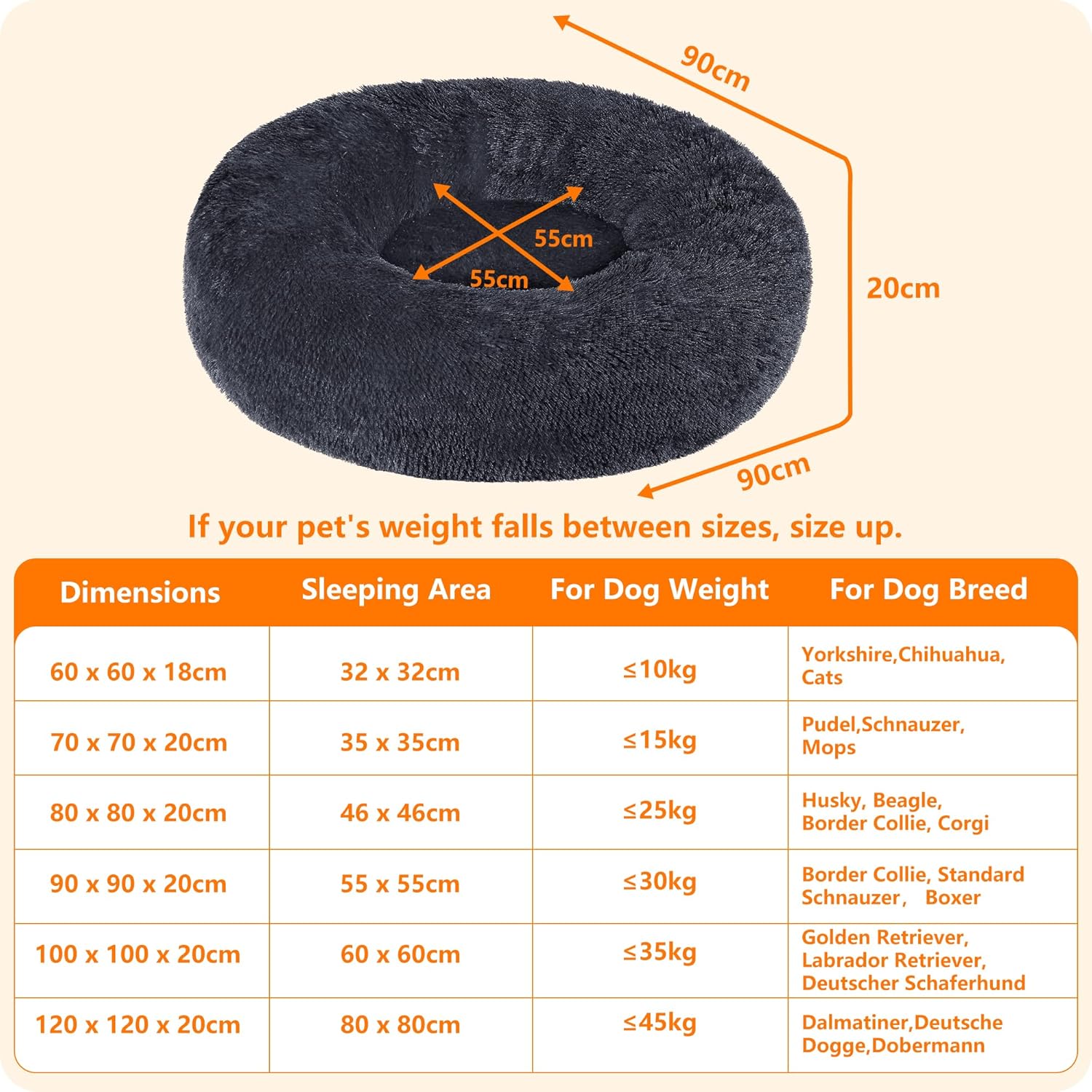 Ортопедично кучешко легло, кръгло кучешко легло, диван, котешко легло, поничка, пухкава кошница за кучета, пераща се, диаметър 90 см, тъмносиво