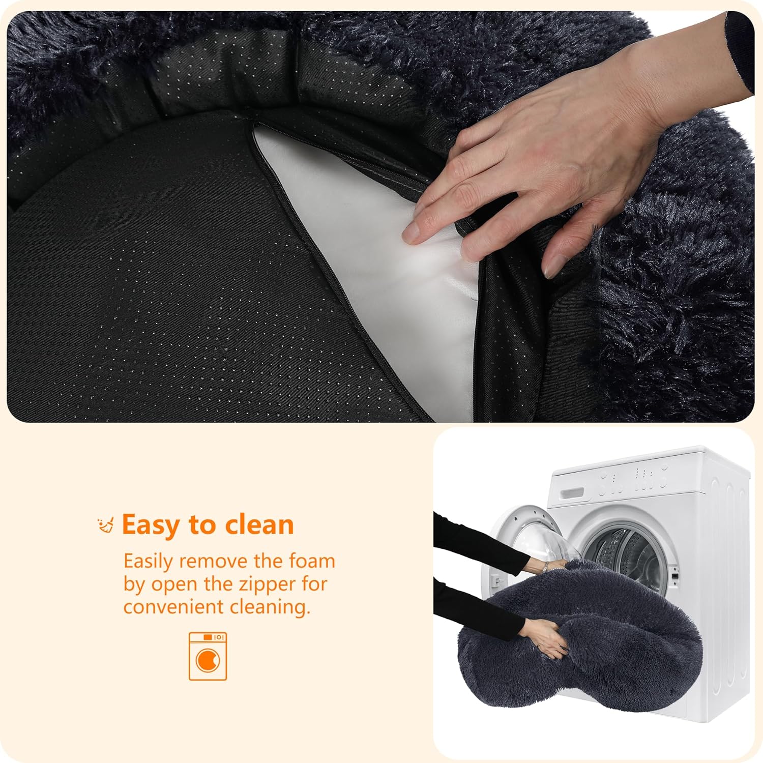 • Противоплъзгащ дизайн: Нашето кръгло легло за кучета е с красиви естествени цветове и здрави шевове в долната част. Дъното на удобното легло за домашни любимци е също водоустойчиво, устойчиво на петна и неплъзгащо се, осигурявайки чиста и суха защита за домашните любимци.
