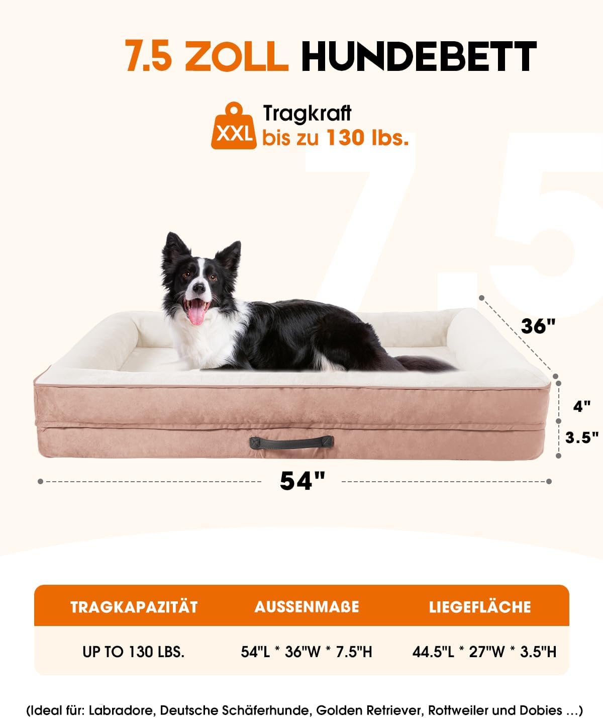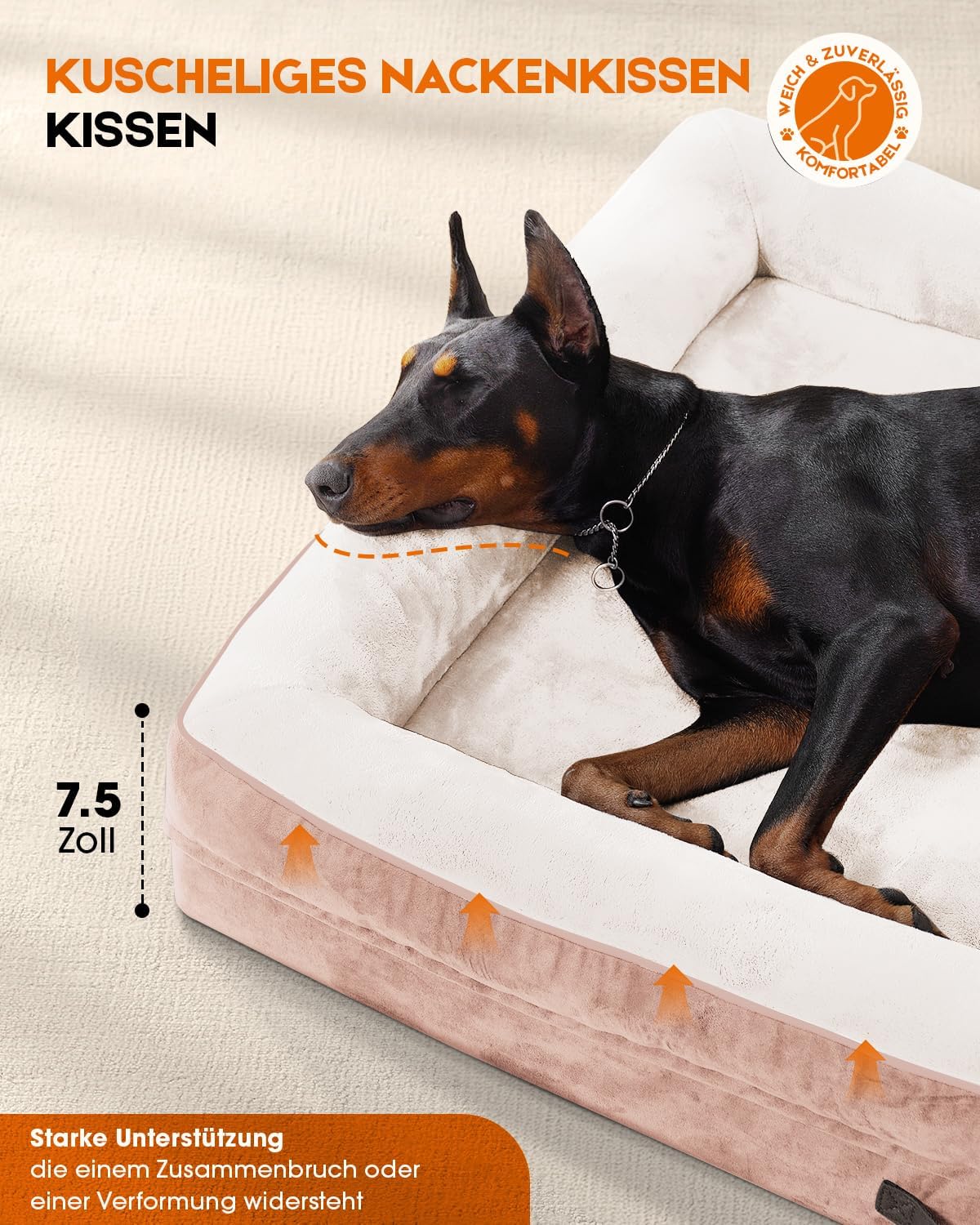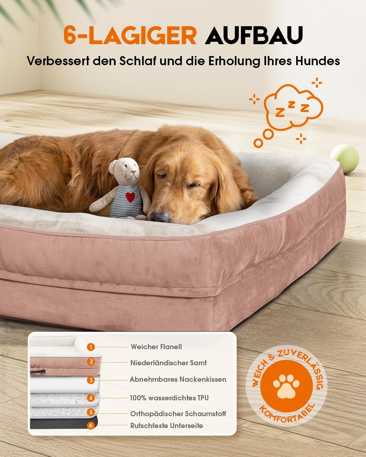Ортопедично кучешко легло XXL, кошница за кучета, която може да се пере, с яйцевидна пяна, водоустойчив диван за кучета с нехлъзгаща се долна страна и четиристранна възглавница (розово, 137 x 91 x 19 см)