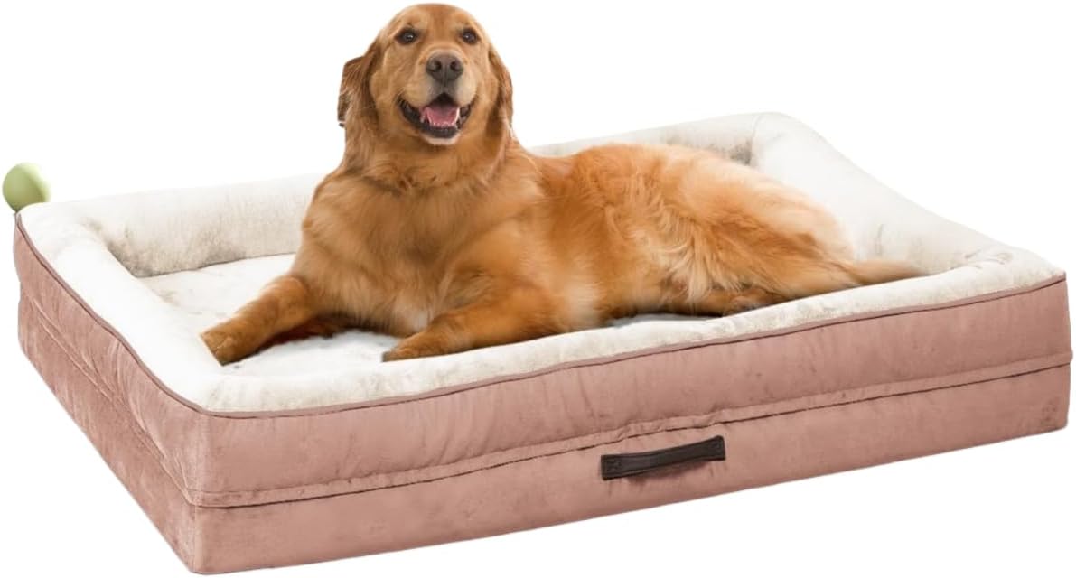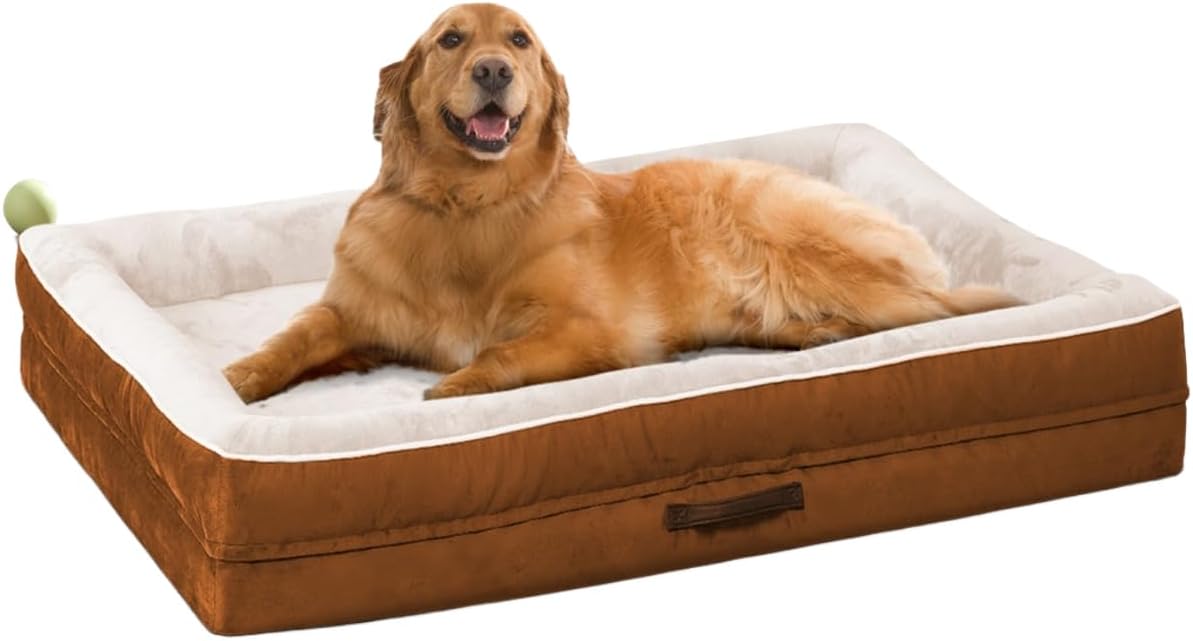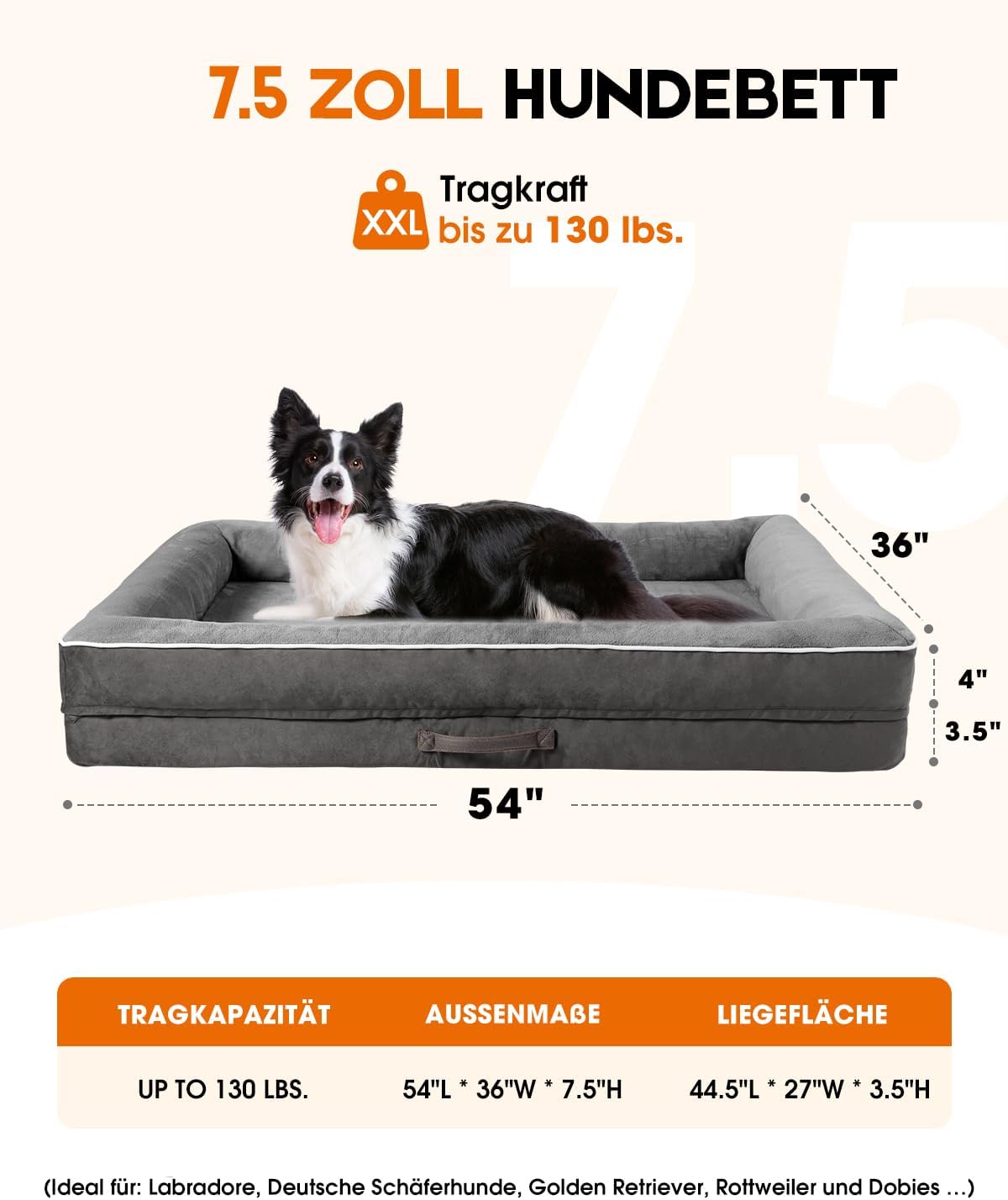 Ортопедично кучешко легло XXL, кошница за кучета, която може да се пере, с яйцевидна пяна, водоустойчив диван за кучета с нехлъзгаща се долна страна и четиристранна възглавница (сив, 137 x 91 x 19 см)